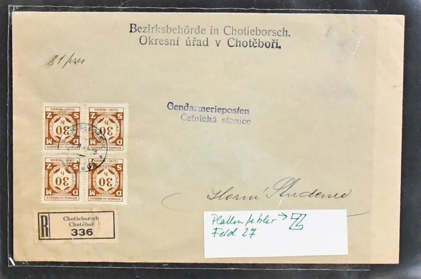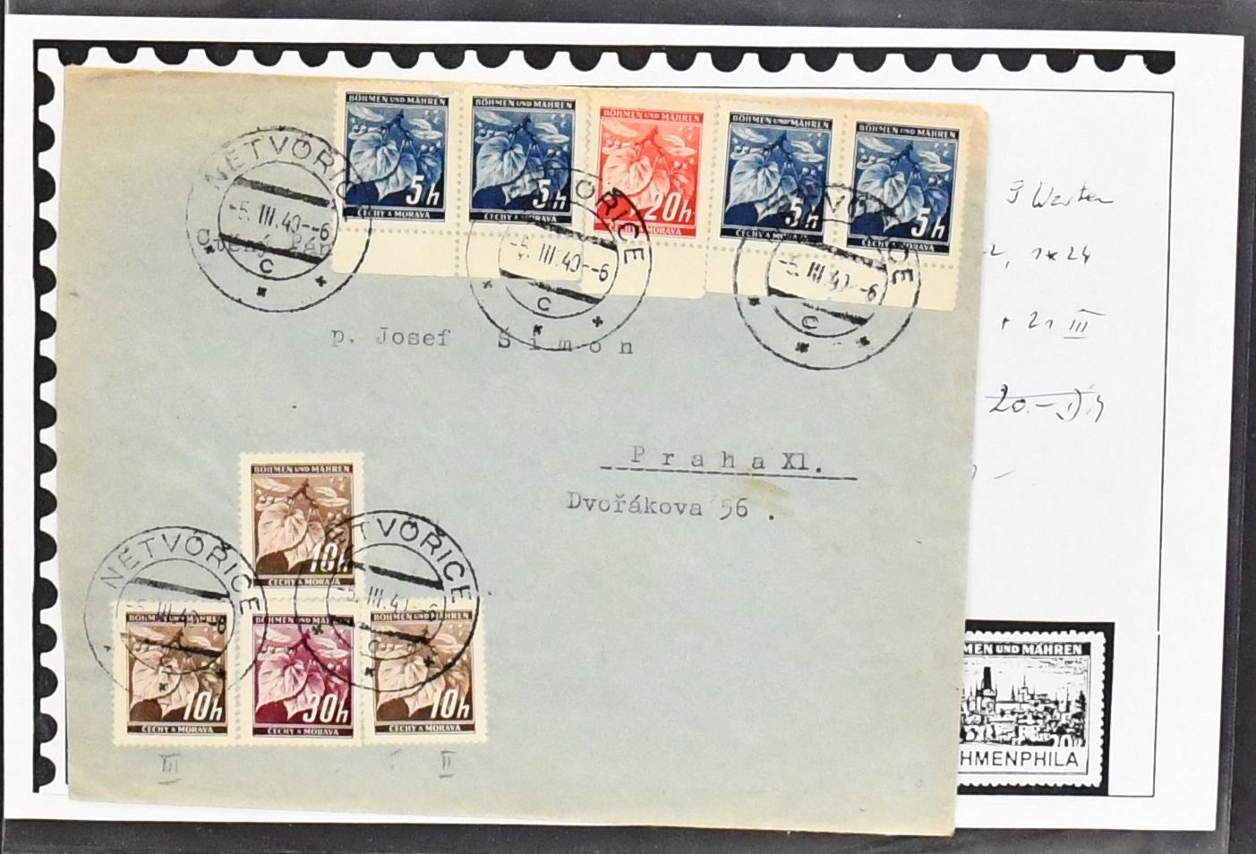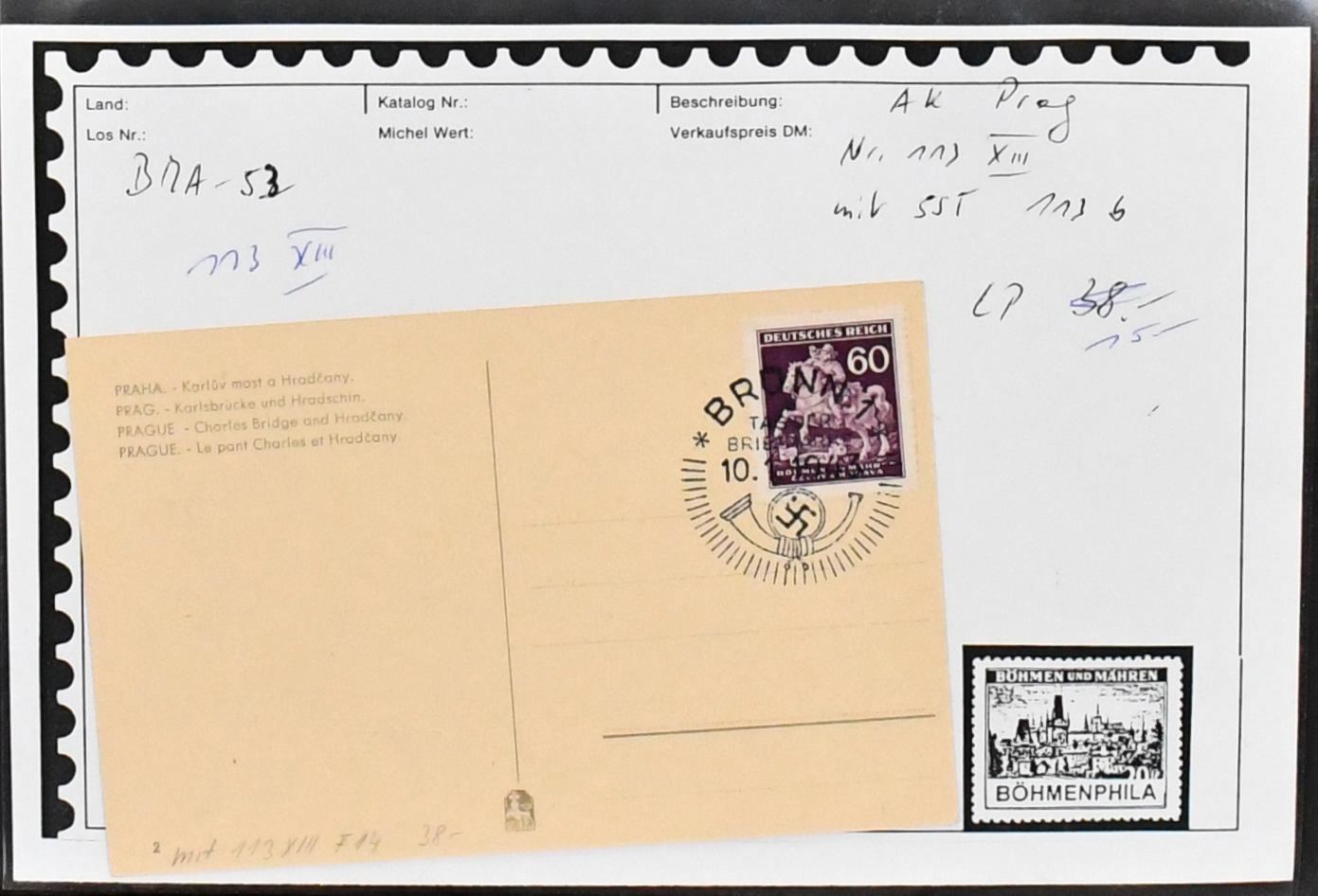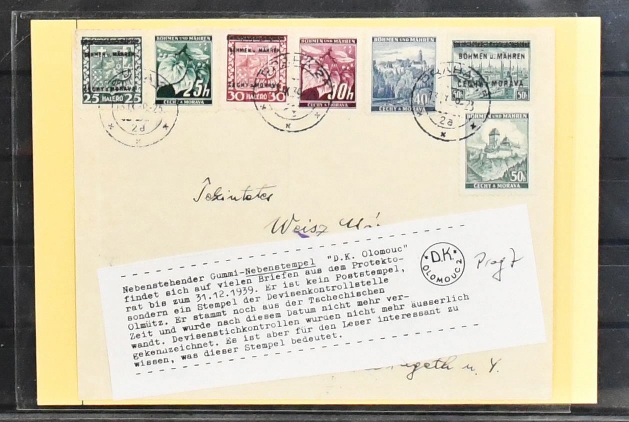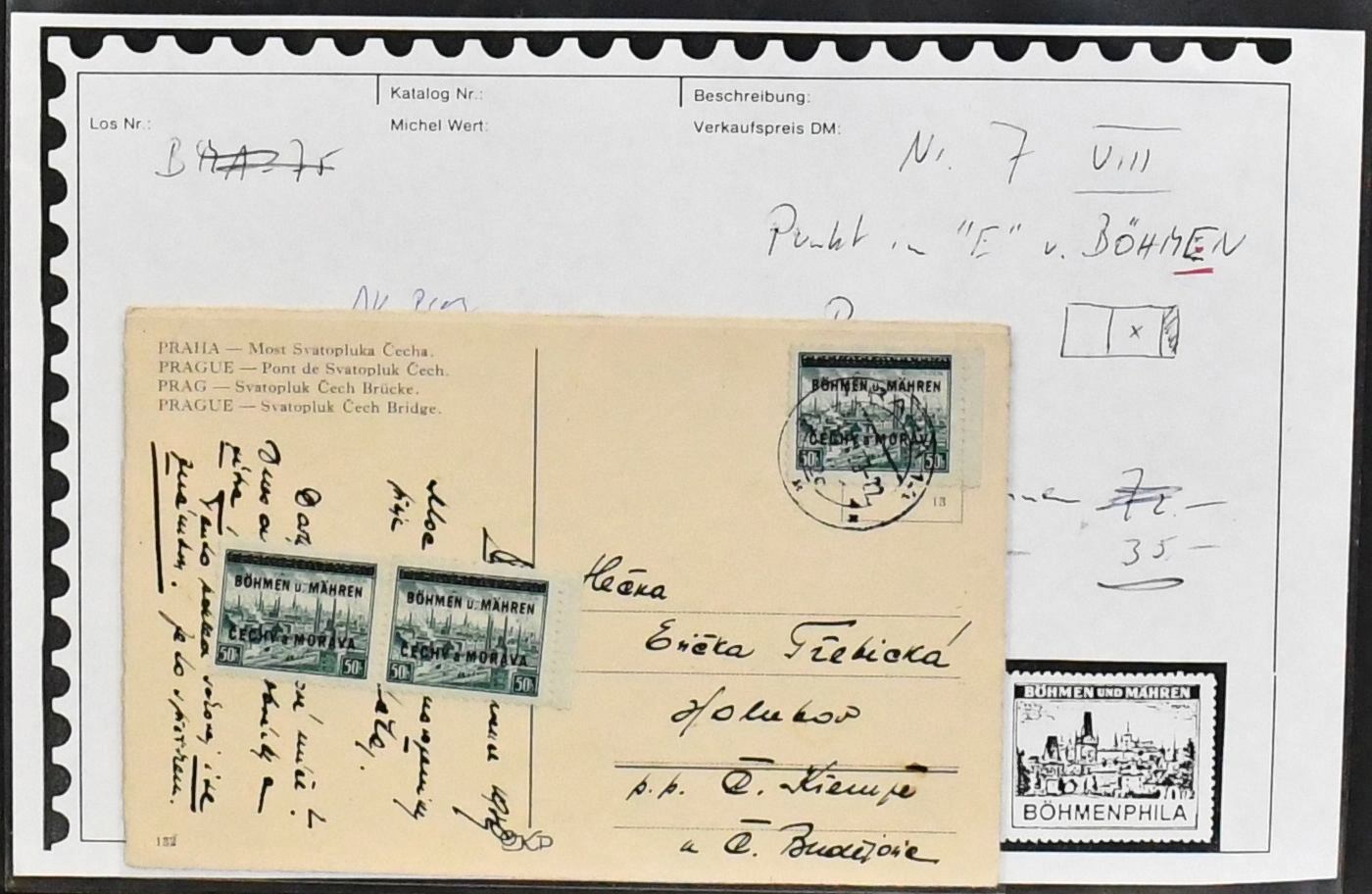 Böhmen und Mähren, Partie Belege und Besonderheiten, dabei Plattenfehler, Sonderstempel, Bildpostkarten usw.