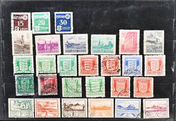 Deutsche Bes. II. Wk., kleine gest. Zusammenstellung mit Böhmen u. Mähren Nr. 1/19, teils mit Eckstempeln, sign. Dub, Estland Nr. 1/9, Guernsey Nr. 1/5, sowie Jersey Nr. 1/8, je kpl.