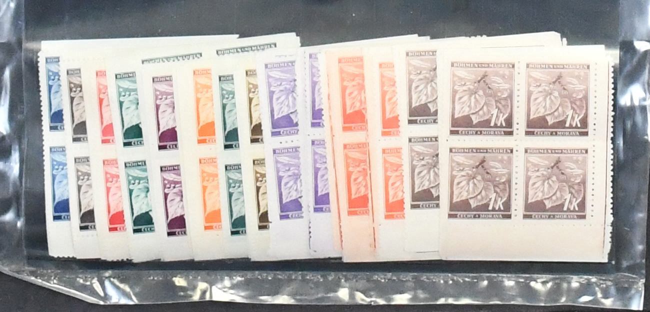 Böhmen und Mähren, postfrische Partie der "Lindenzweig"-Ausgaben in Viererblöcken, fast nur Bogenecken