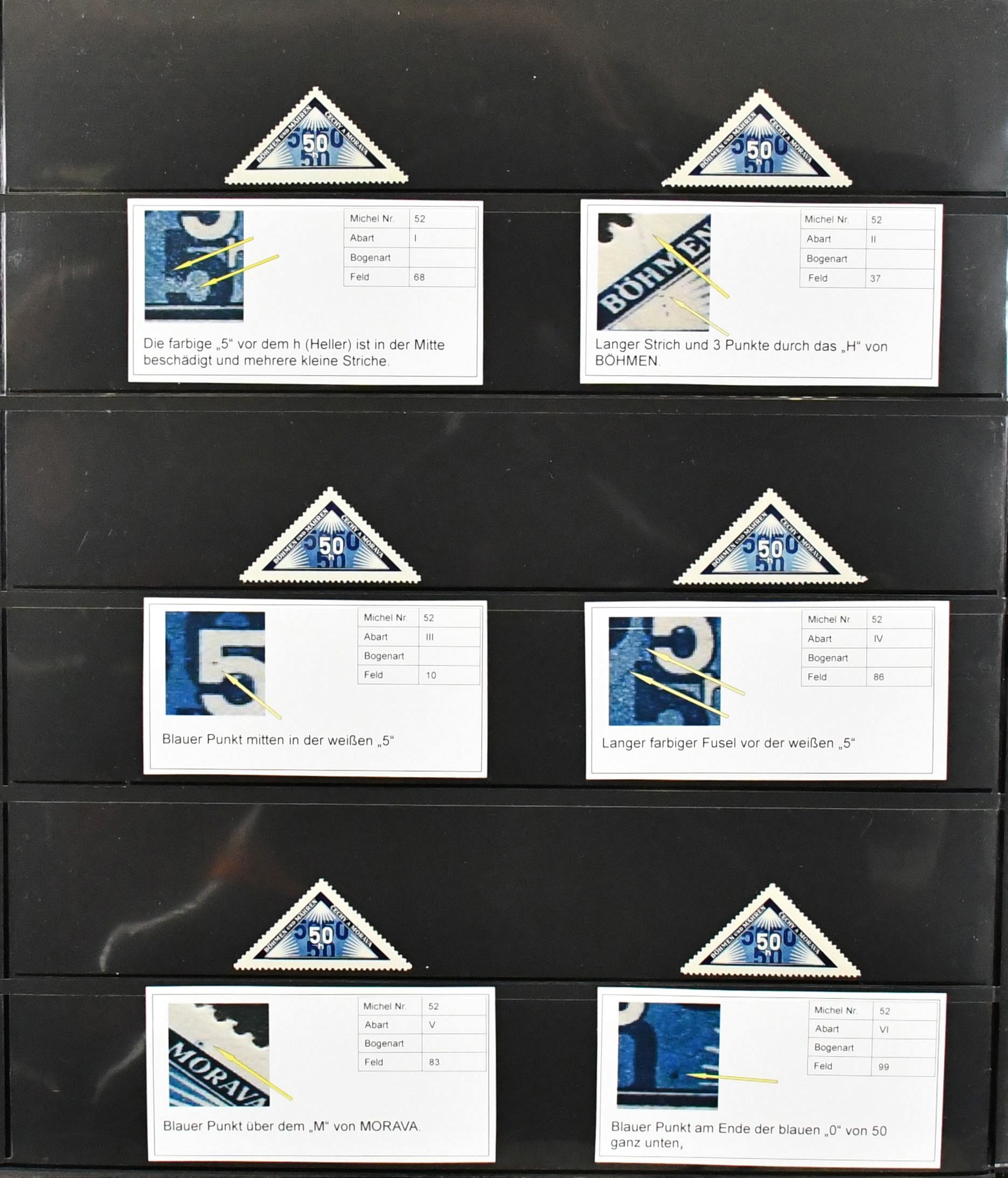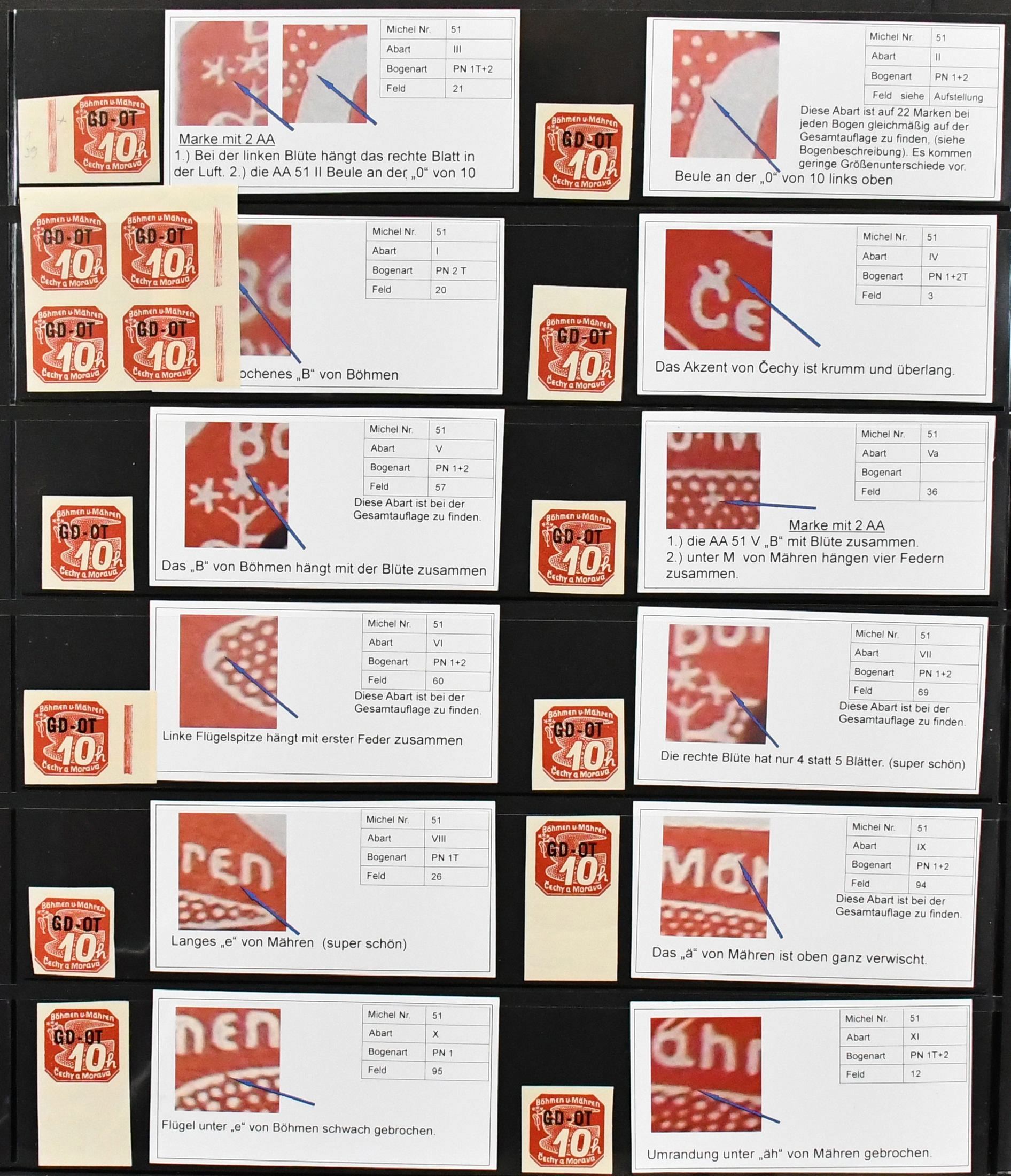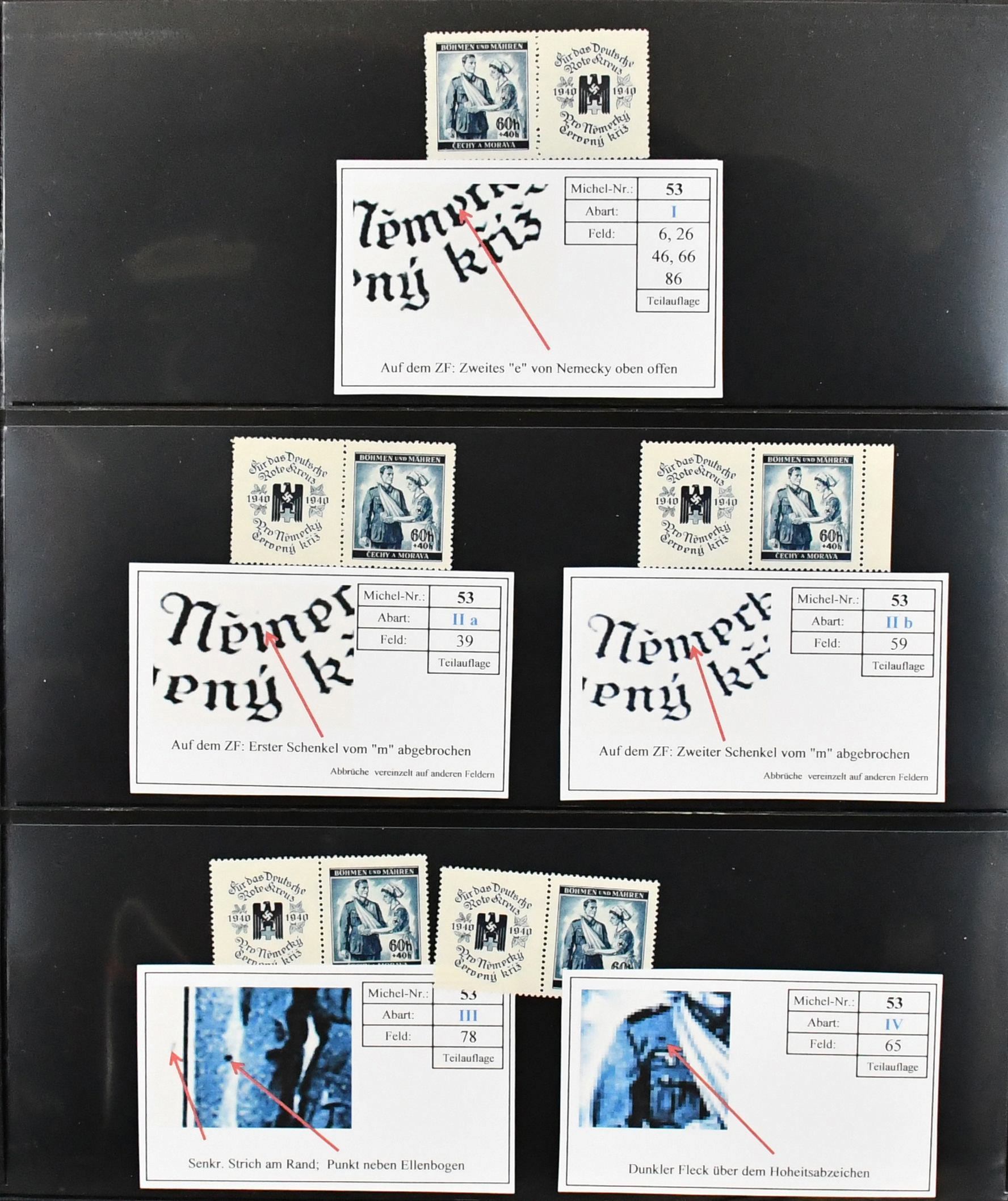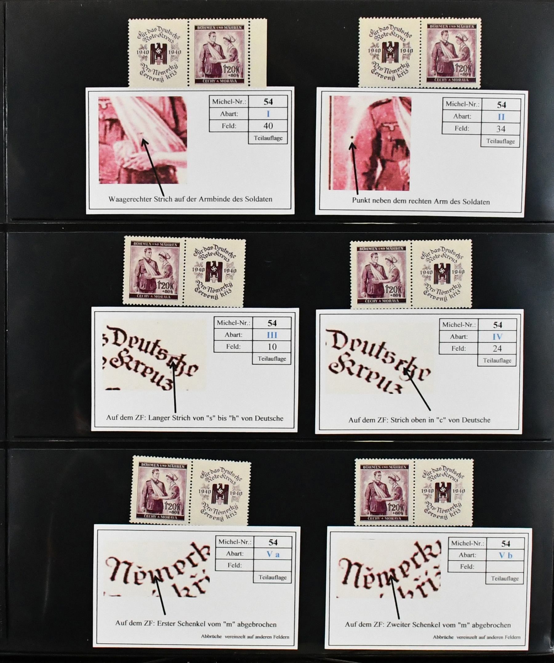 Böhmen und Mähren, postfrische Plattenfehler-Partie der Nr. 51-54 mit genauer Feldbestimmung