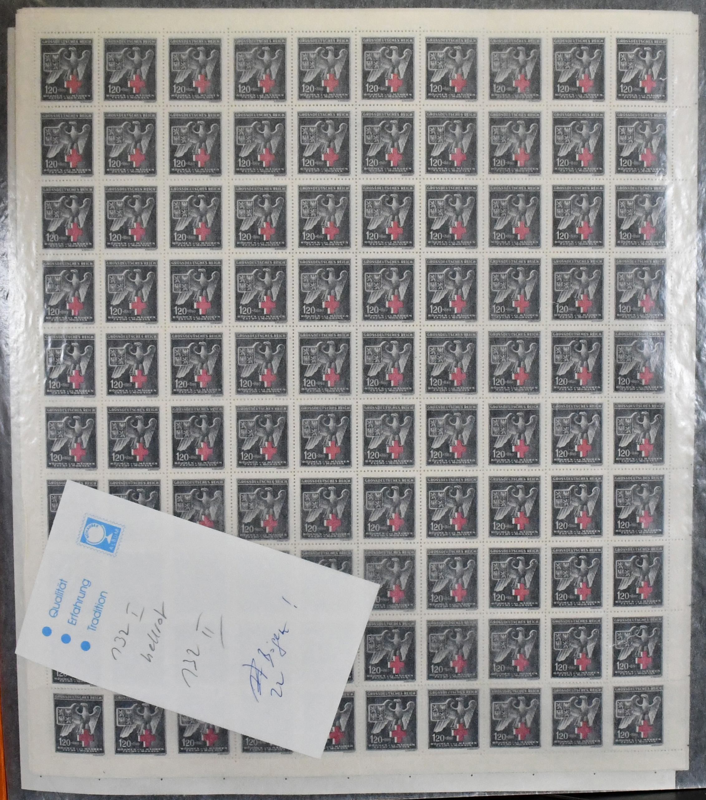 Böhmen und Mähren, Rotes Kreuz 1943, Mi.-Nr. 132, sechs postfrische Bögen, Mi. 600,-