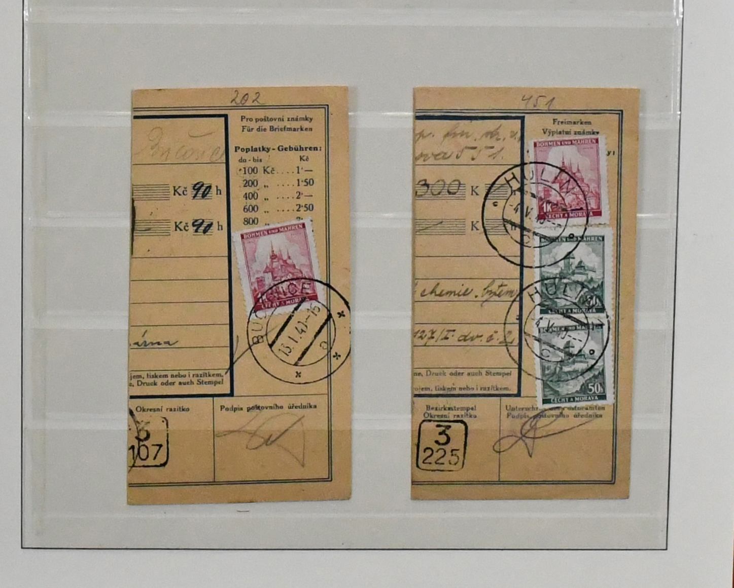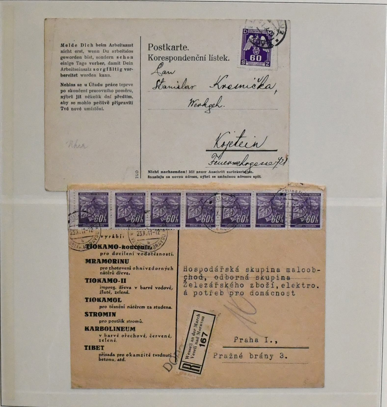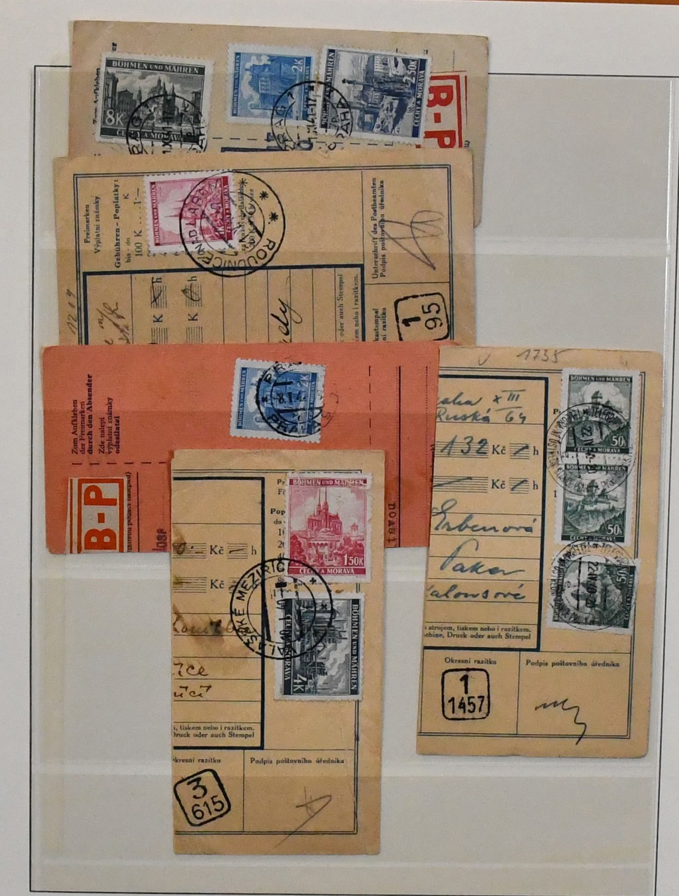 Böhmen und Mähren, Partie von 47 Belegen im Album, dabei Paketkarten und -abschnitte, R- und Dienstbriefe