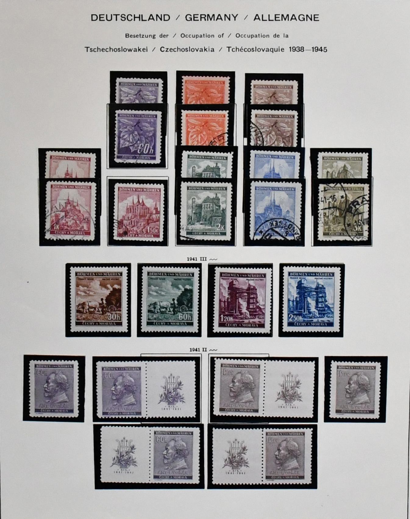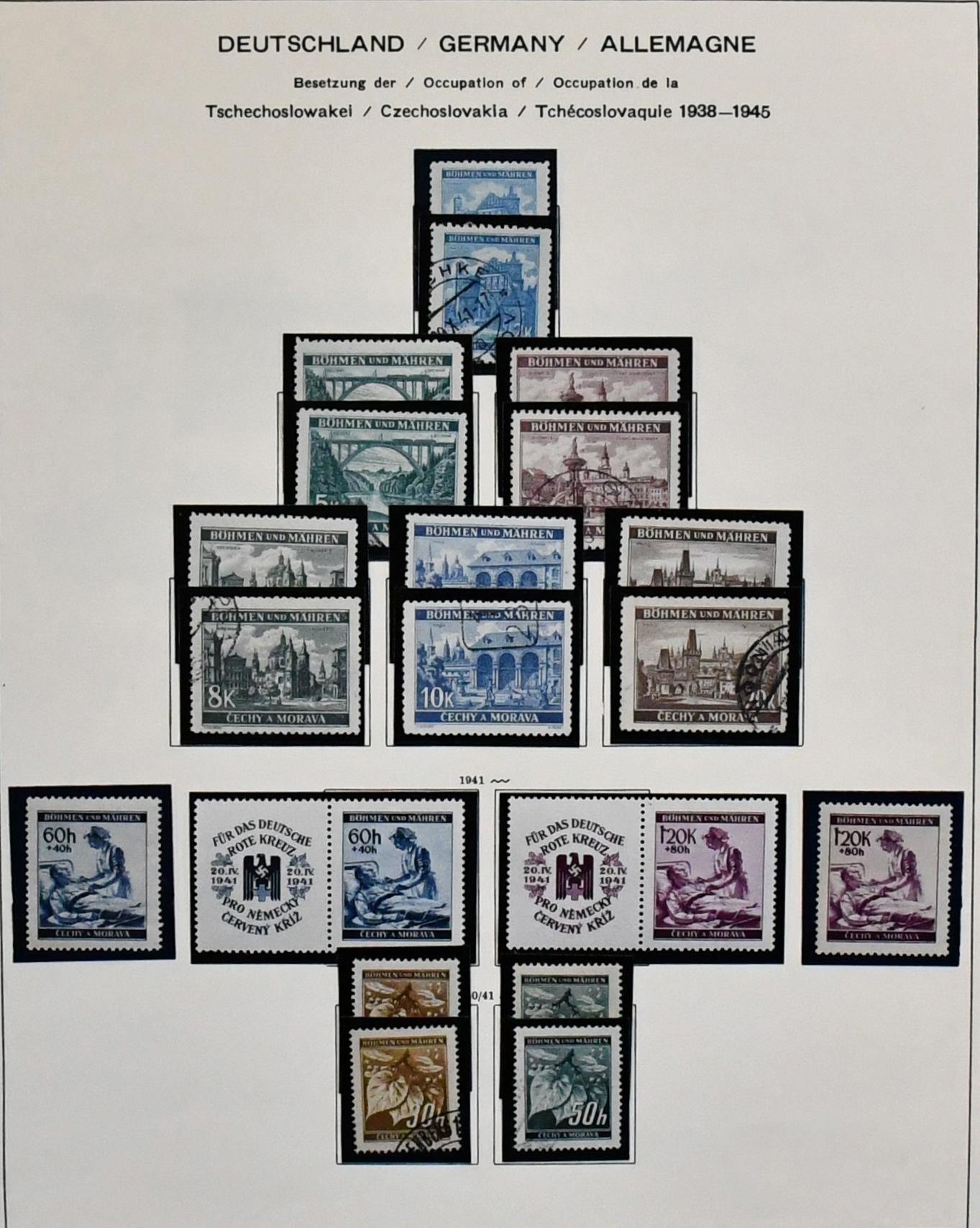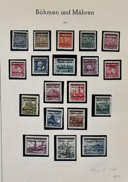 Böhmen und Mähren, gestempelte, in den Hauptnummern kpl. Slg. ab Nr. 1/19, gepr. Gilbert (Mi. 400,-) usw., auf Vordrucken. Dazu viele postfrische Ausgaben