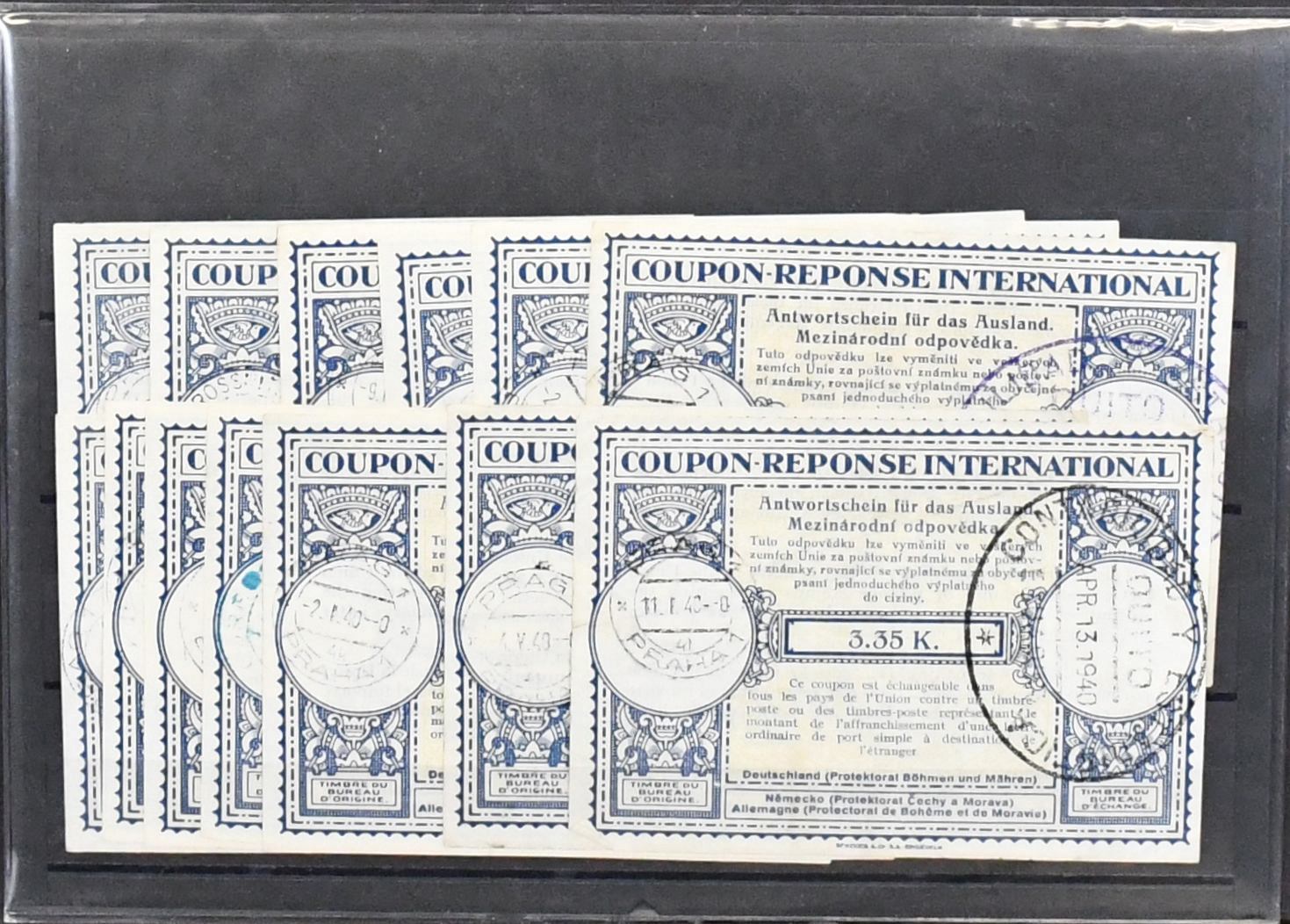 Böhmen und Mähren, 13 internationale Antwortscheine (Prag/Ecuador), selten angeboten!