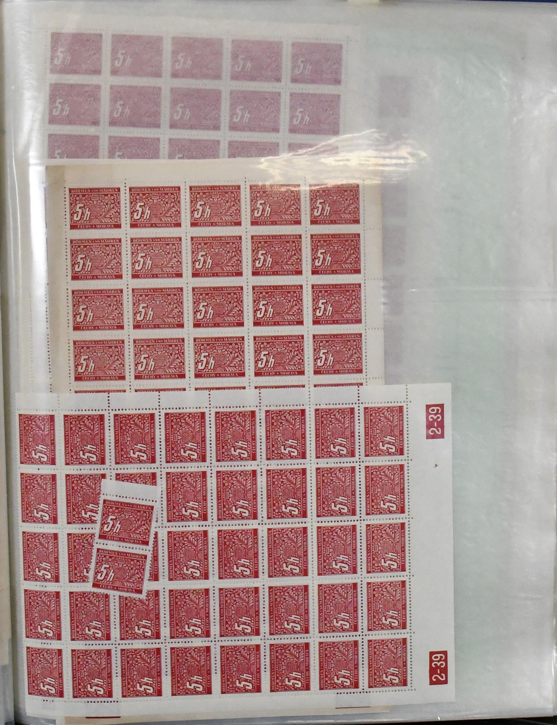 Böhmen und Mähren, postfrischer Händlerbestand ex Nr. 1-19, auch Höchstwerte vielfach, teils in Einheiten, mit Viererblöcken, Ecken usw.