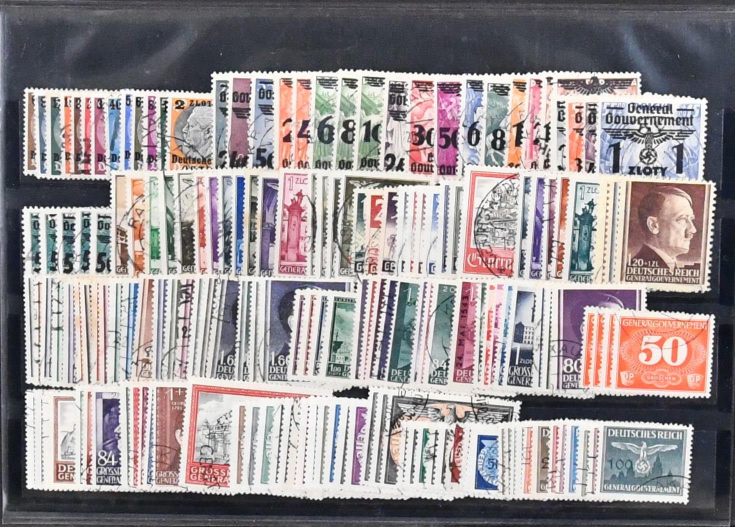 Deutsche Bes. II. Wk., umfangreicher Lagerbestand mit ca. 4000 Werten, dabei Böhmen/Mähren und GG, alles chronologisch und nach Qualitäten sortiert, auch vieles postfrisch, u.a. Böhmen u. Mähren mit Zus.-Druck-Kombinationen, "Sternchen", GG mit reichlich Aufdrucken aus 1. u. 2. Serie, Sondermarken in Mengen, Dienst etc., ideal zum Auflösen