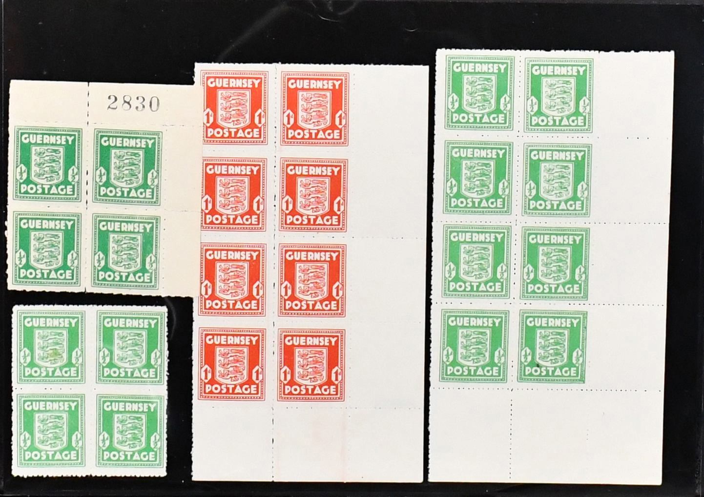 Guernsey (Kanalinseln, Bes. II. Wk.), Nr. 1-3 mindestens 32mal postfrisch, oft in Eckeinheiten, Mi. 1650,-