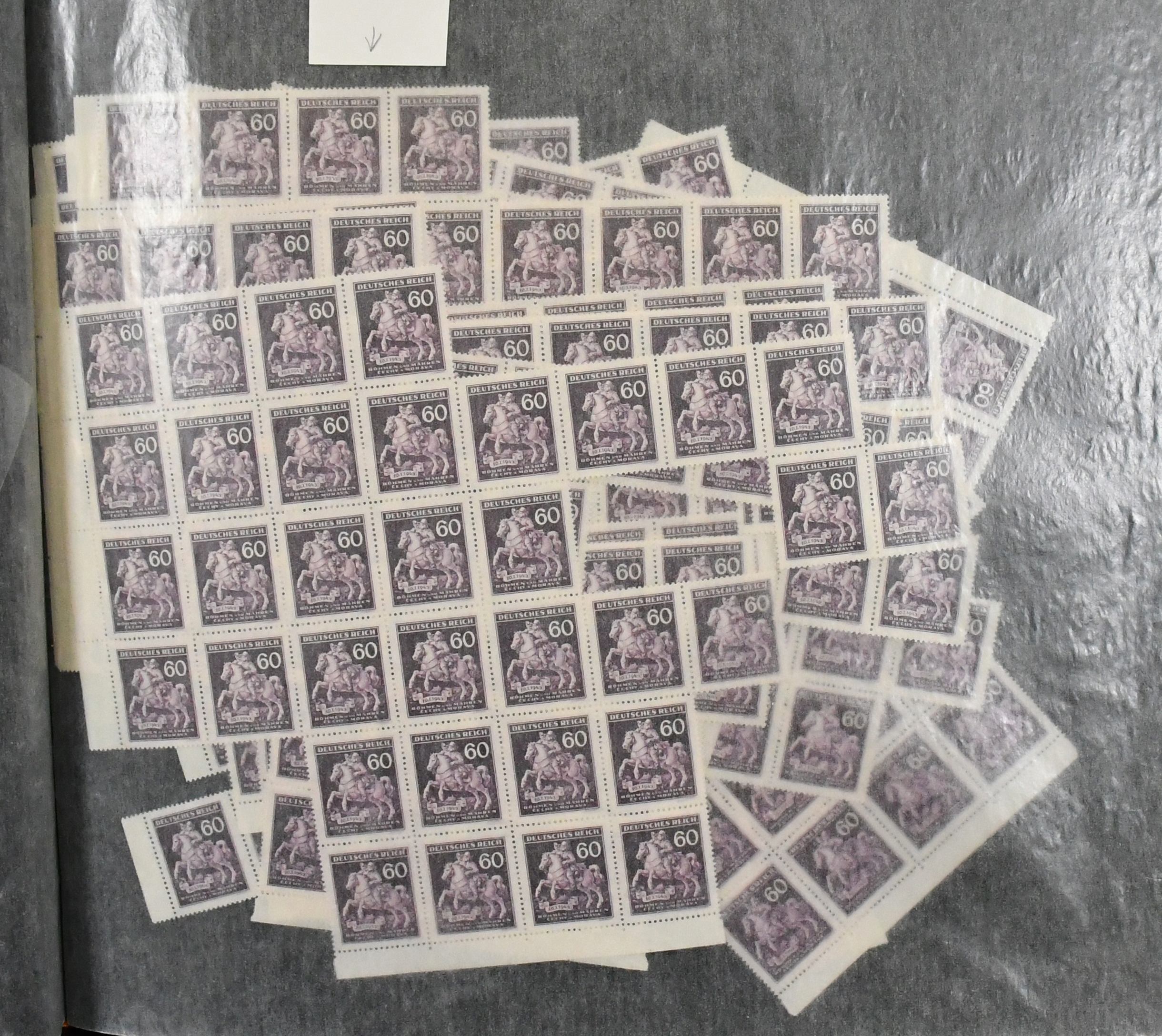 Böhmen und Mähren, Ausgabe "Tag der Briefmarke", Mi.-Nr. 113, tausende von postfrischen Marken in Bogen und Bogenteilen, teils mit Plattenfehlern