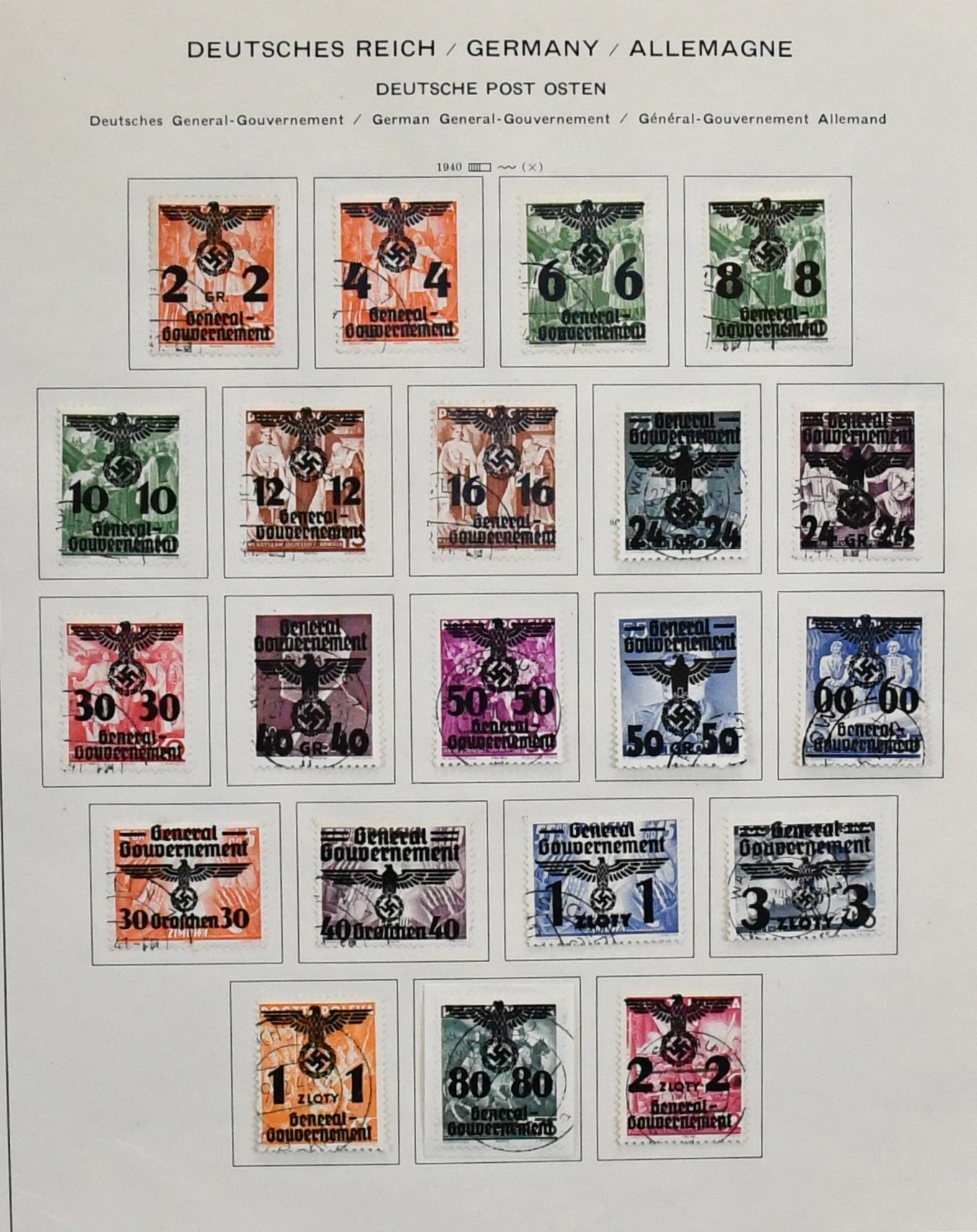 Bes. II. Wk., die Gebiete Böhmen und Mähren (Nr. 1-19 gepr. Gilbert), Generalgouvernement, Elsaß, Lothringen und Luxemburg je gestempelt komplett, zusätzlich die letzten drei Gebiete auch noch postfrisch kpl., als Beigabe Albanien Nr. 1-14 gestempelt, aber leider mit Falschstempel