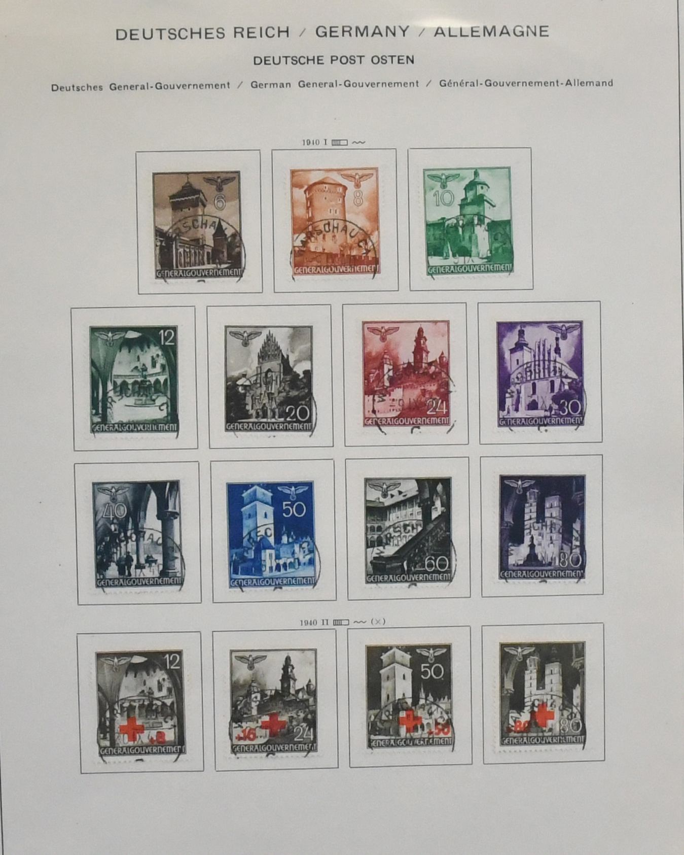 Generalgouvernement, die beiden entscheidenden Serien Nr. 14-39 und Dienst Nr. 1-15 je achtmal kpl. gest. Mi. 1600,-