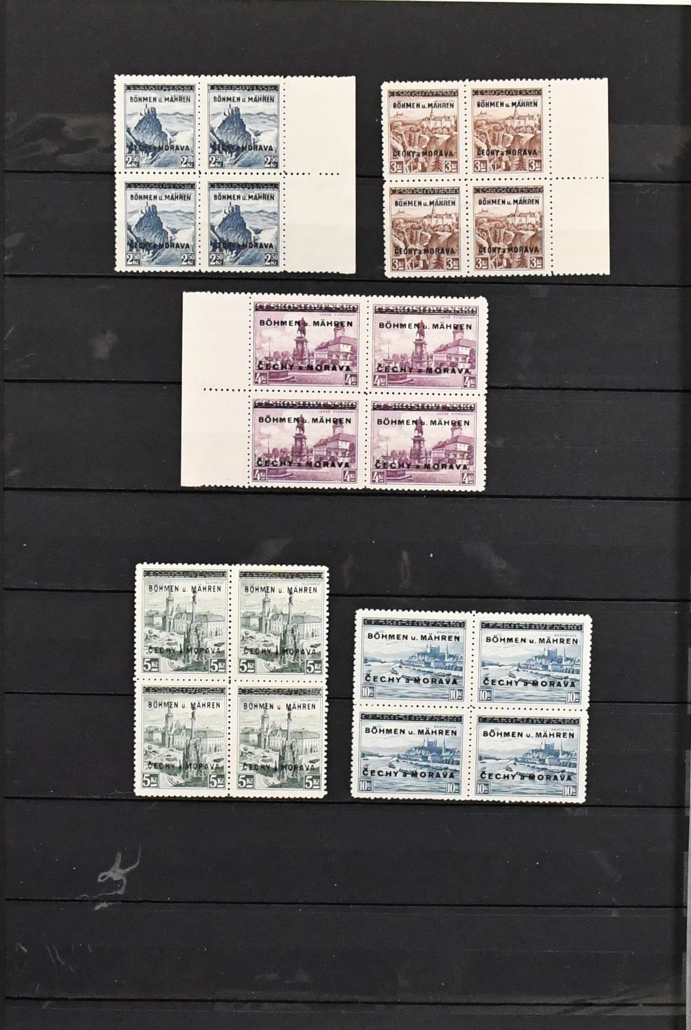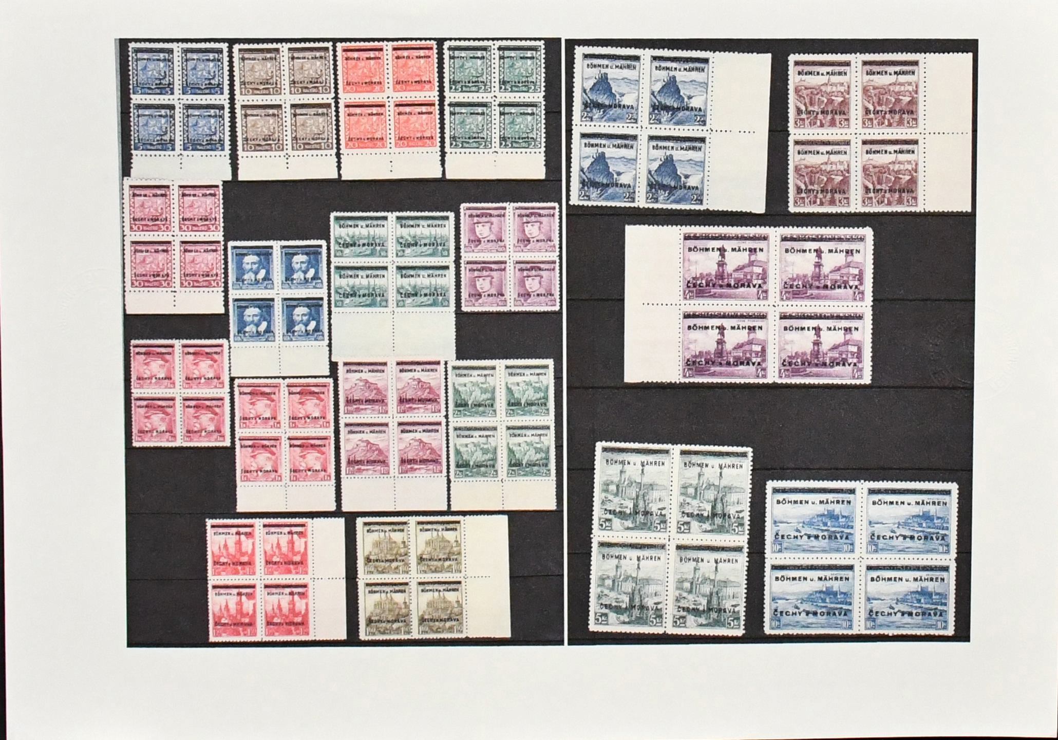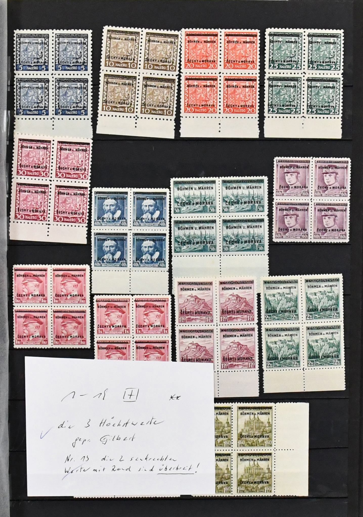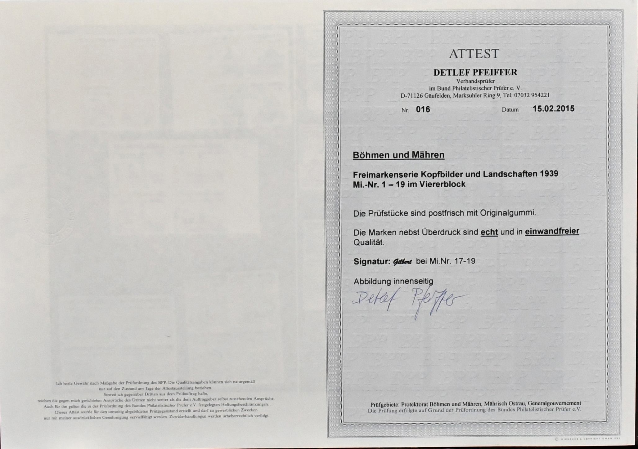 Böhmen und Mähren, Nr. 1-19 in postfrischen Viererblöcken, Attest Pfeiffer. Mi. lose 520,-
