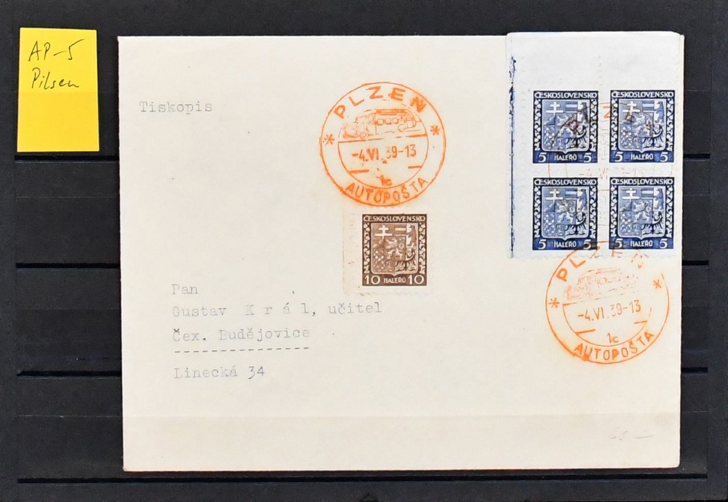 Böhmen und Mähren, Bestand der seltenen "Autoposta"-Sonderstempel auf Briefstücken und Belegen, gut 100 Stück