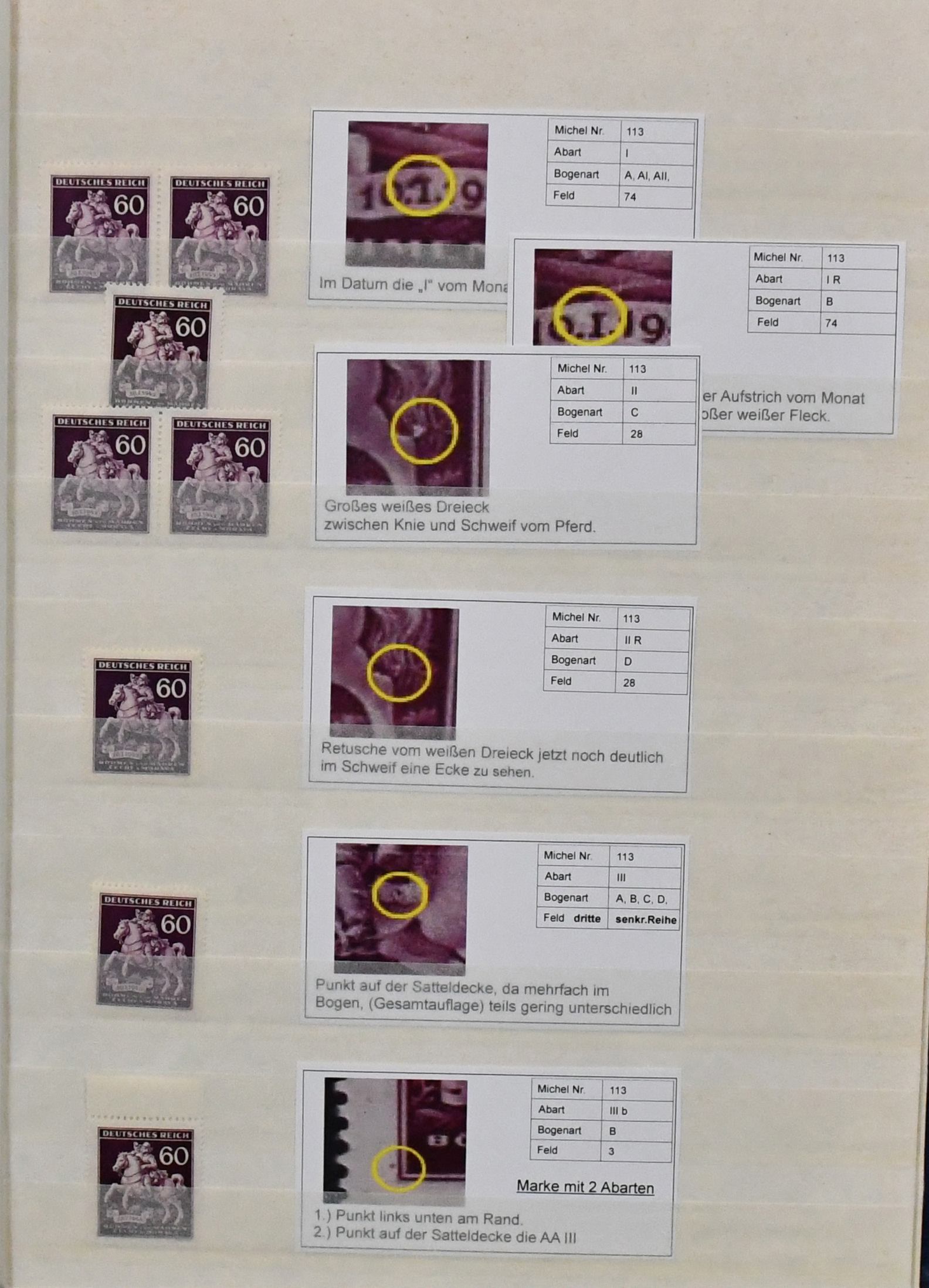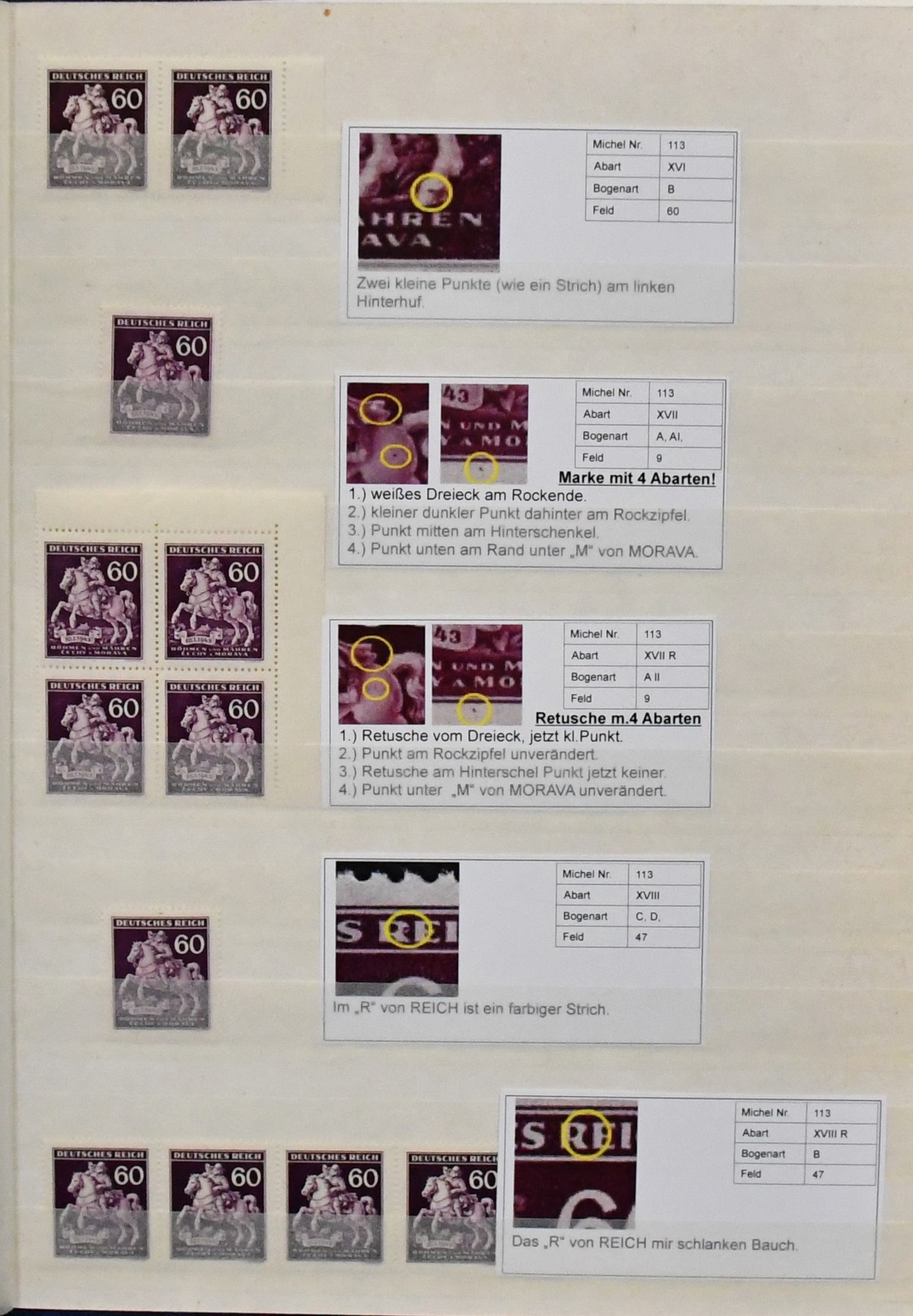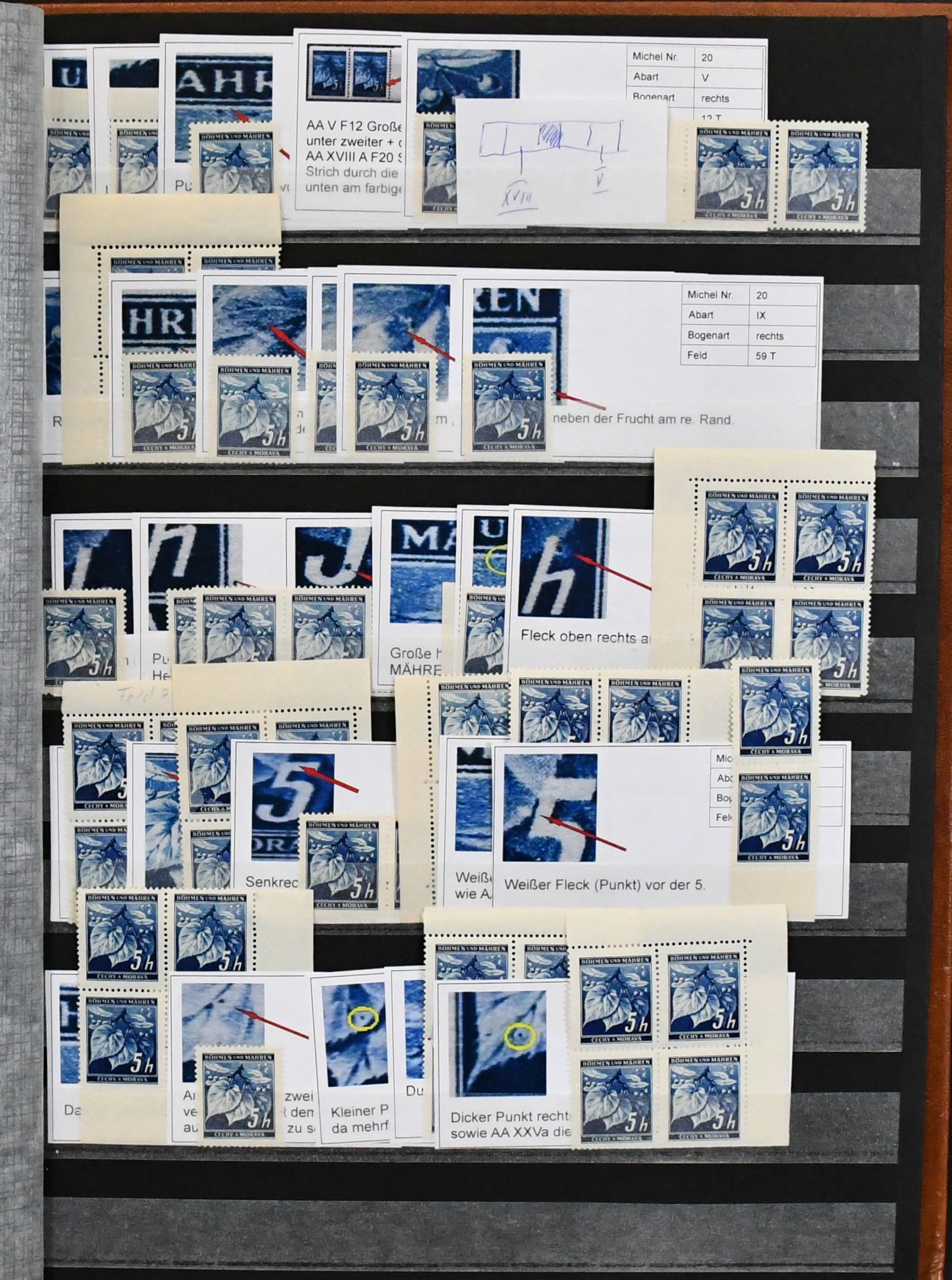 Böhmen und Mähren, Abarten und Plattenfehler, Bestand in zwei Alben und einer Mappe, u.a. Mi.-Nr. 113 vielfach