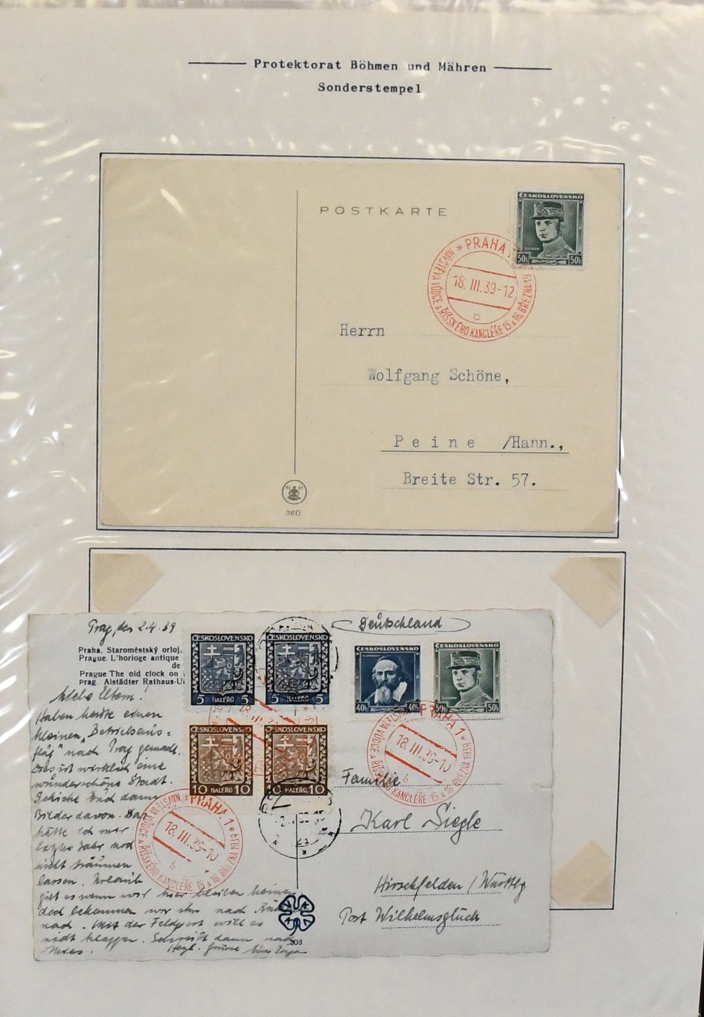 Böhmen und Mähren, Slg. besonderer Stempel im Binder, mit vielen Belegen, Fundgrube!