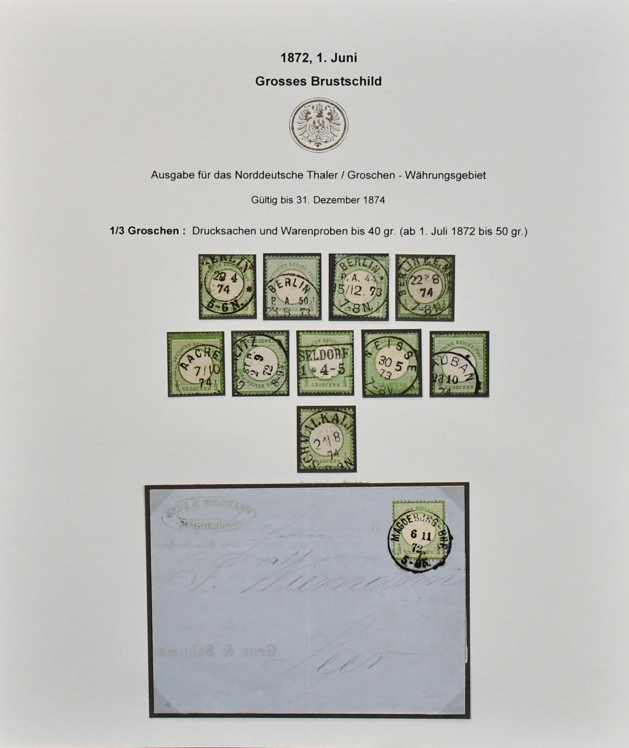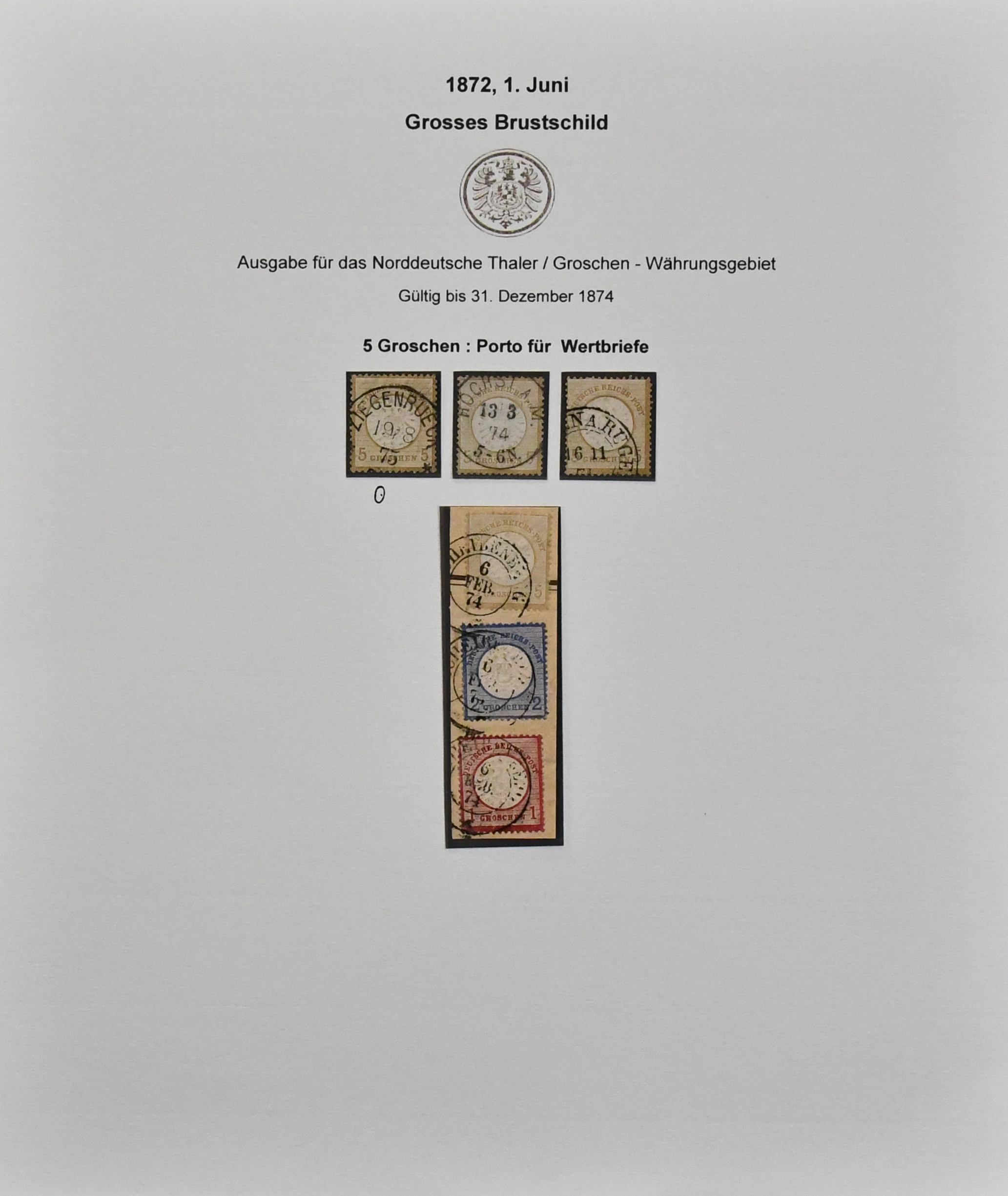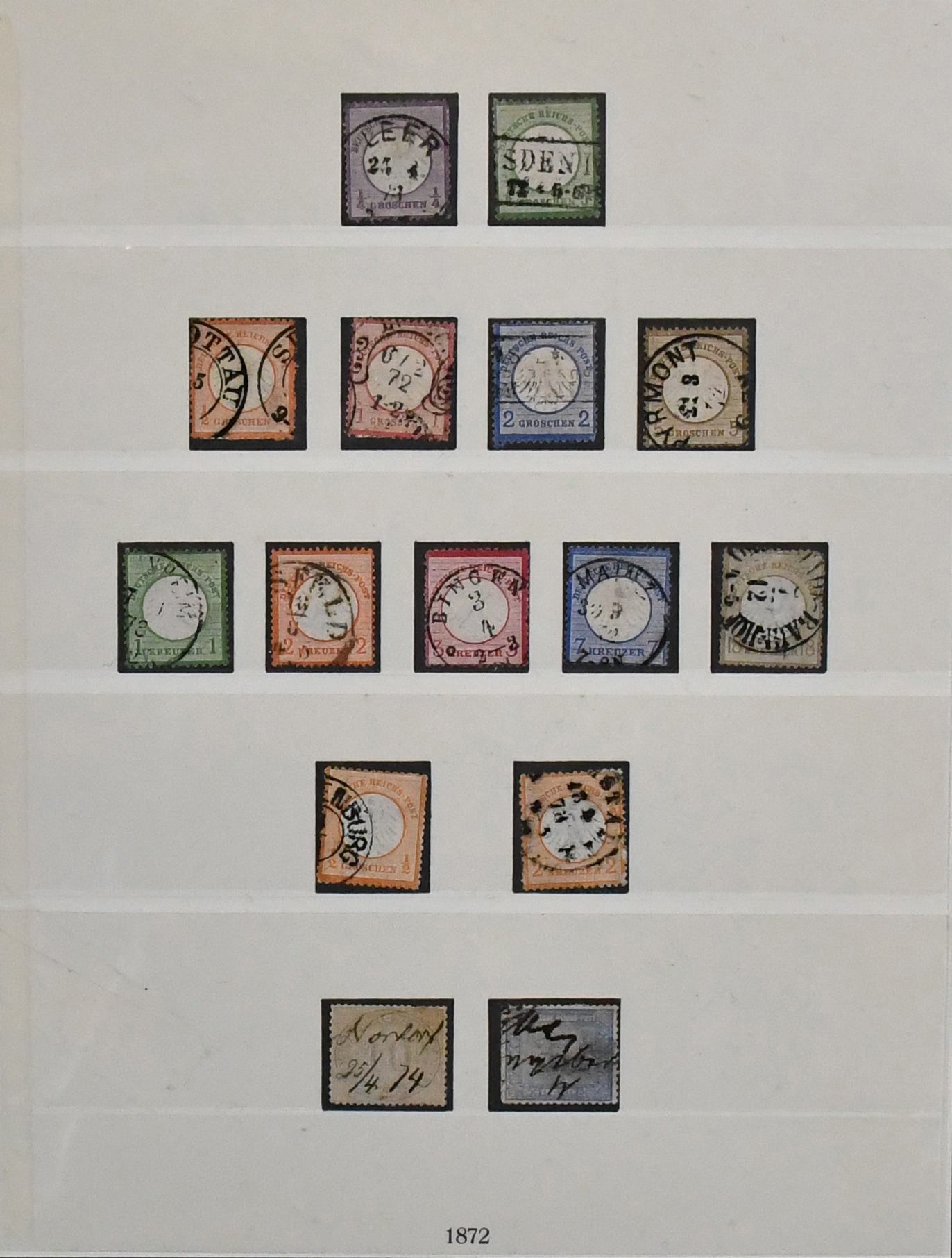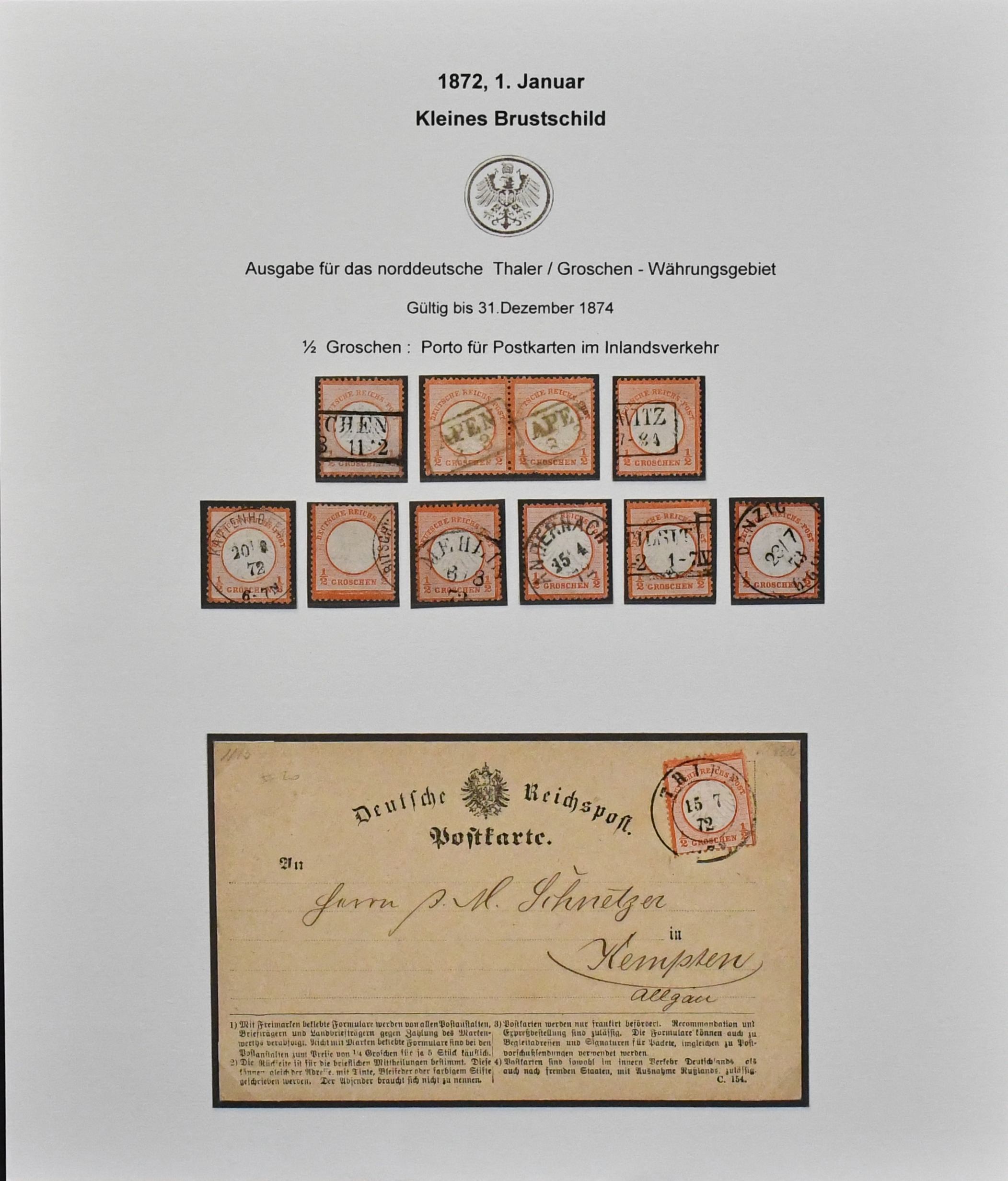 Deutsches Reich, 1872-1874, gestempelte Slg. mit Nr. 1-6, 11, 12/13 mit Federzug, 16-23 usw., auf Vordrucken. Mi. 3000,-