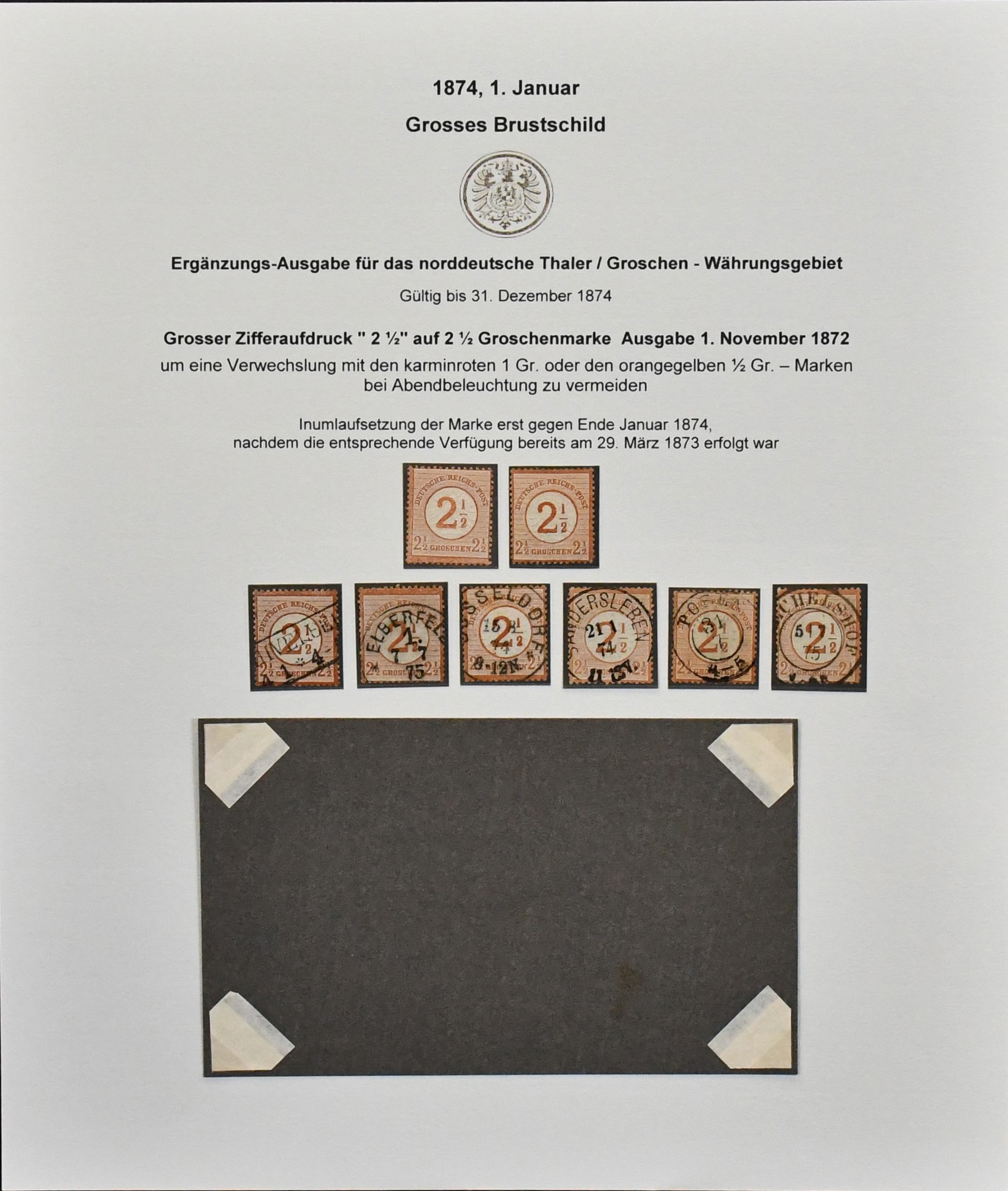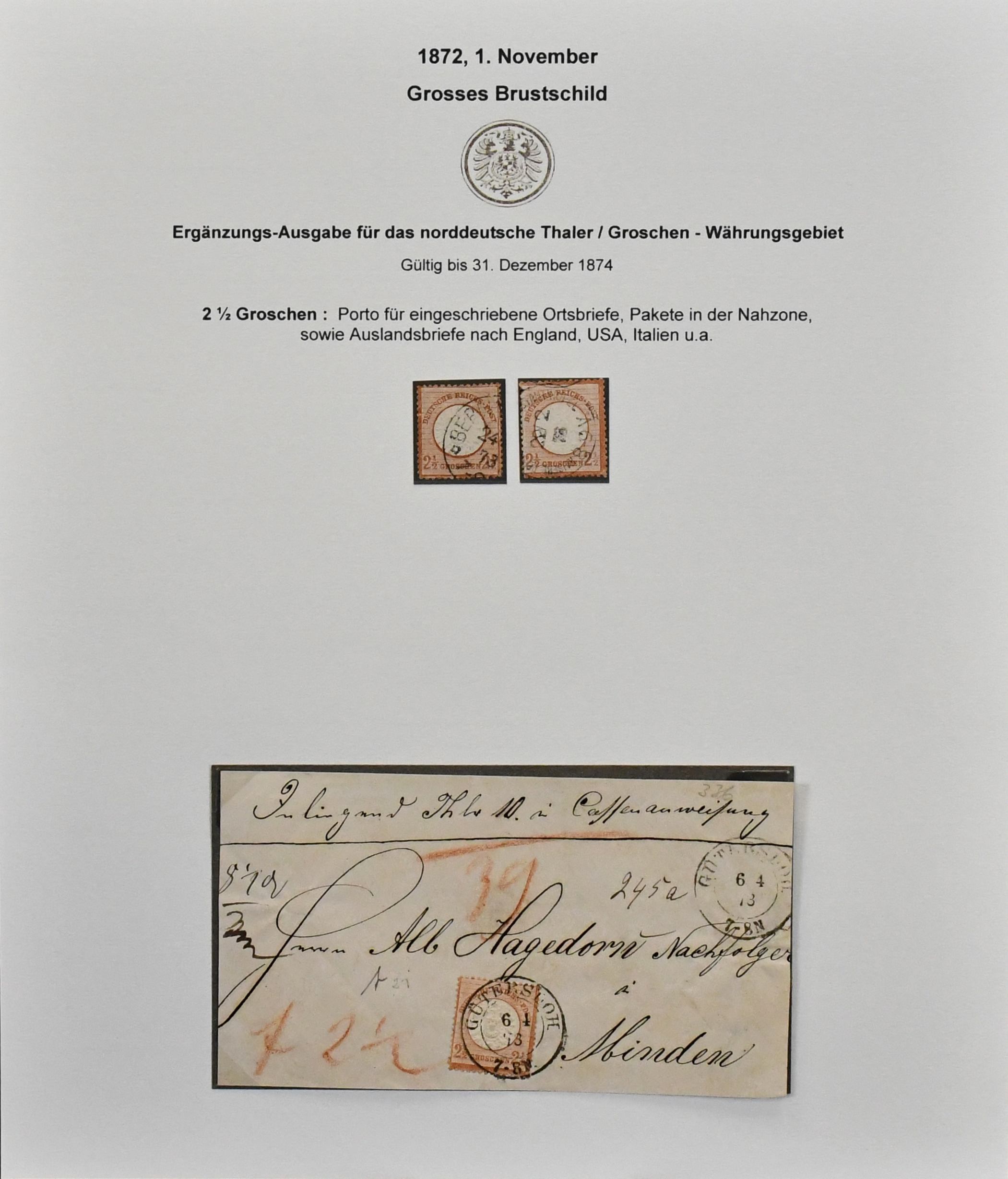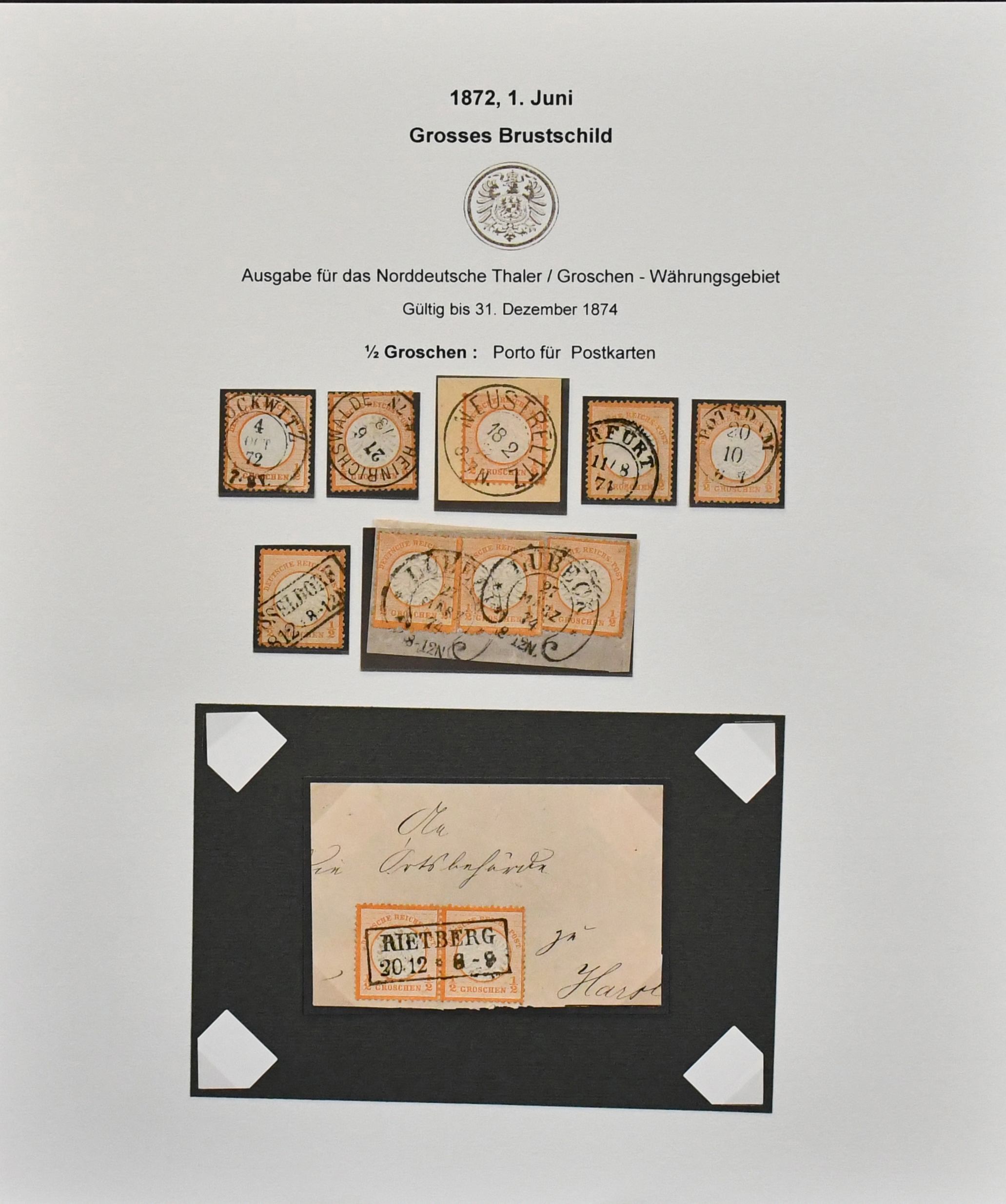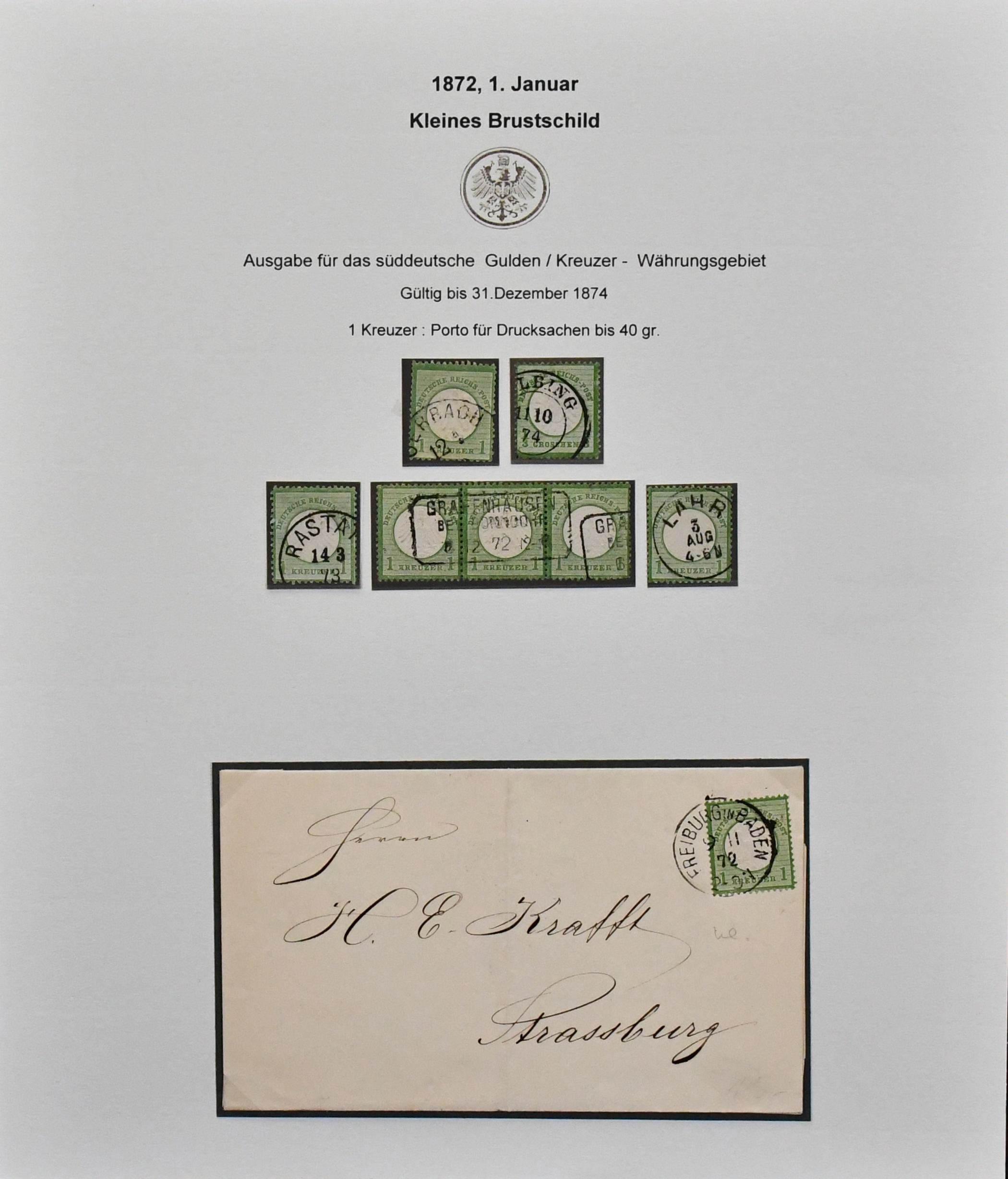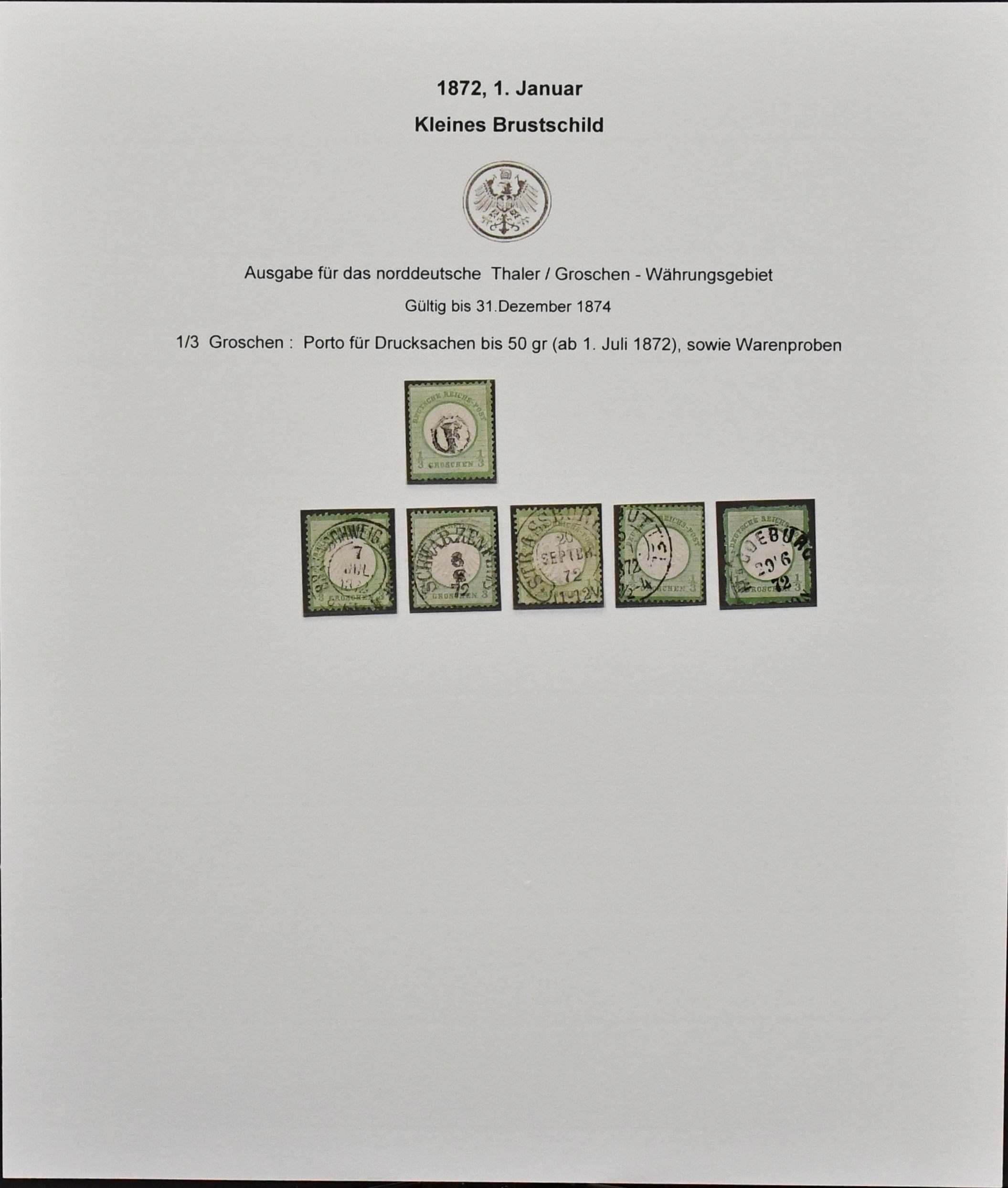 Deutsches Reich, 1872-1874, gestempelte Slg. mit Nr. 1-6, 11, 12/13 mit Federzug, 16-23 usw., auf Vordrucken. Mi. 3000,-