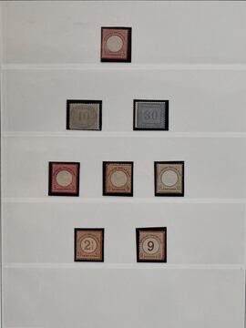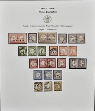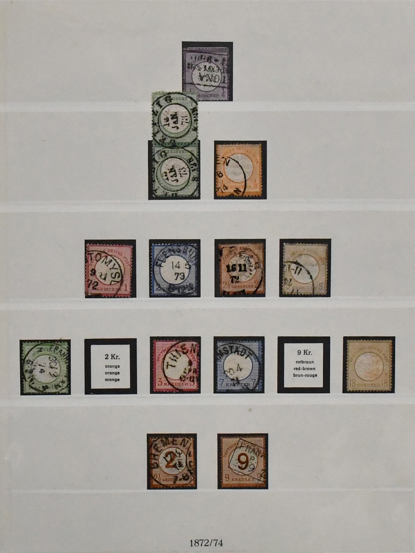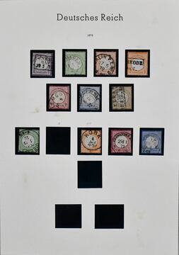 Deutsches Reich, 1872/74, gestempelte Sammlung ab Nr. 1/11, ferner Nr. 12 mit Federzug, Nr. 16/23, inkl. Nr. 17a/b und 21a/b, 27a/b, 28 mit Mängeln, doppelt gepr. Sommer BPP, usw. Dazu NDP Nr. 26. Mi. 7500,-