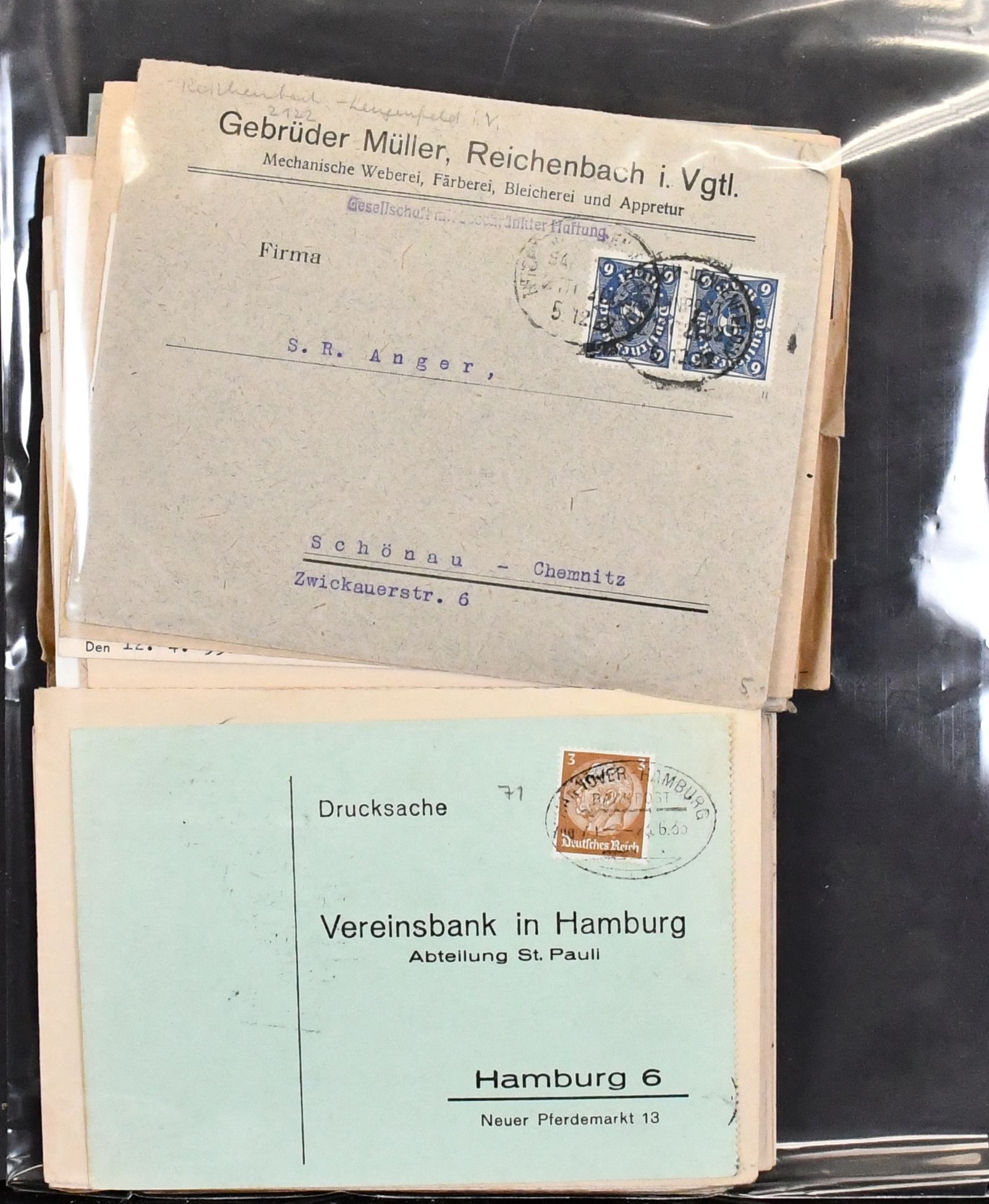 Deutsches Reich, ca. 1920-1932, enorm reichhaltiges Lagerbuch, vor allem Infla postfr./ungebr. u. gest., mit ca. 9-10.000 eng gesteckten Werten, dabei einiges auch an geprüften Werten, Hochinflation reichlich, Randstücke in Mengen, Weimar mit besseren Nothilfe-Werten, alleine aufgrund der Menge schon eine kleine Fundgrube