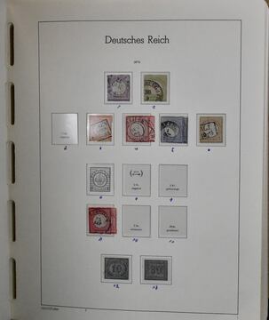 Deutsches Reich, 1872/1923, gestempelte Slg., beginnend mit unterschiedlichem Brustschildteil mit alleine 4000,- Mi., inkl. Nr. 1/6, 11, Nr. 13 mit Federzug, 27b usw., auf SAFE-Vordrucken, ferner Germania mit einigen Querformaten, Infla inkl. Nr. 119/38 etc. Dazu unbewertet eine gest. Nr. 28 (Mi. 2800,-) mit Eckfehler