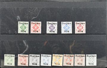 Deutsches Reich, 1875/1923, von Nr. 31-337, nur ohne Nr. 66 und 79, nahezu komplette Slg., meist gestempelt, inkl. allen Infla-Ausgaben (!!), jedoch alles ungeprüft. Dazu Dienst Nr. 1/98 ebenso kpl., auf älteren KABE-Vordrucken