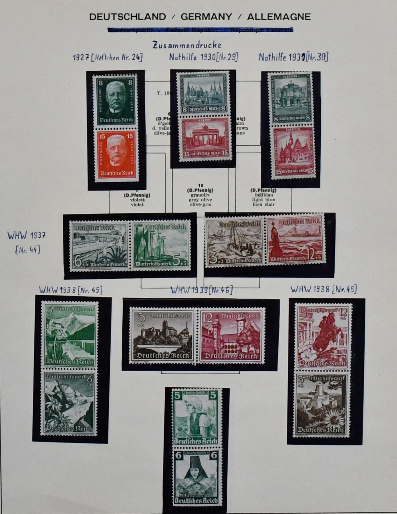 Deutsches Reich, Sammlung von über 200 Zusammendrucken ab Germania, dabei u.a. W5 und S3 postfr., W12, W21/22 gest. (Mi. 150,-), S56 ungebr. ohne Gummi (Mi. 800,- für Falz), S73 gest. (400,-), viel III. Reich inkl. KZ17/18, W53 etc. Mi. 2300,-