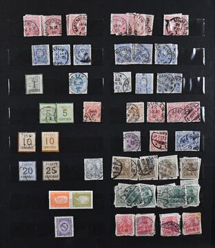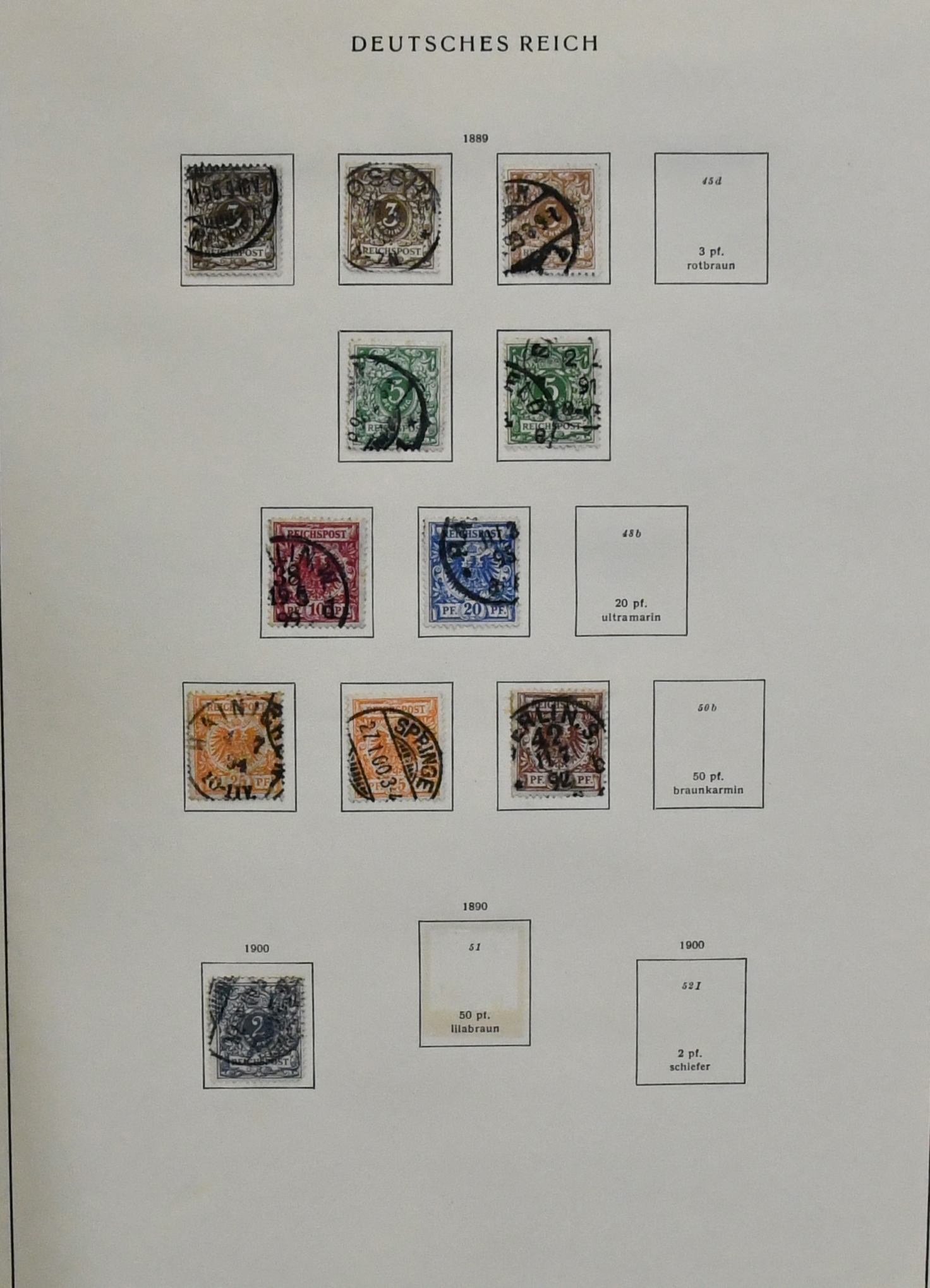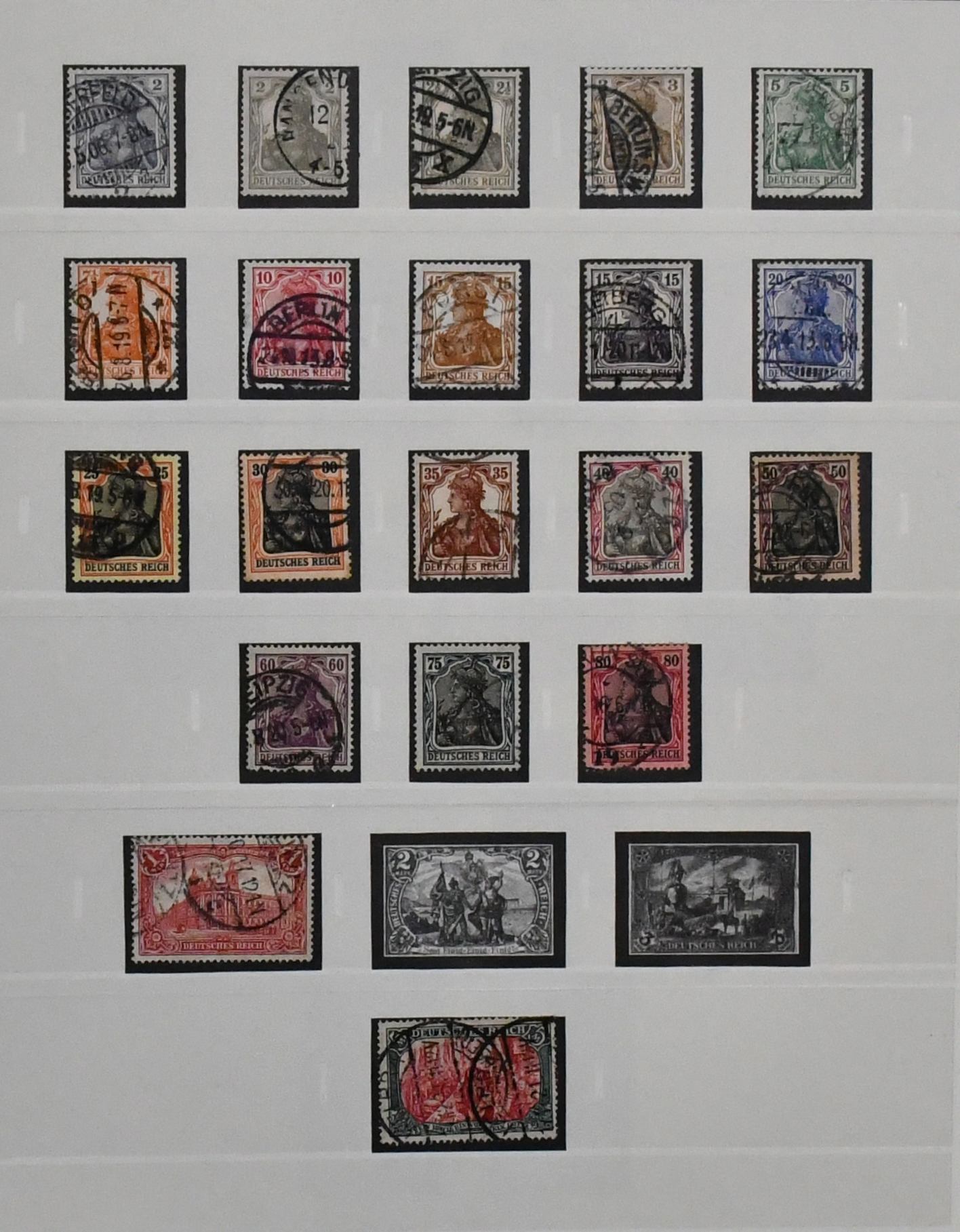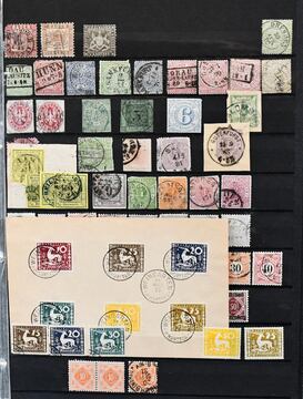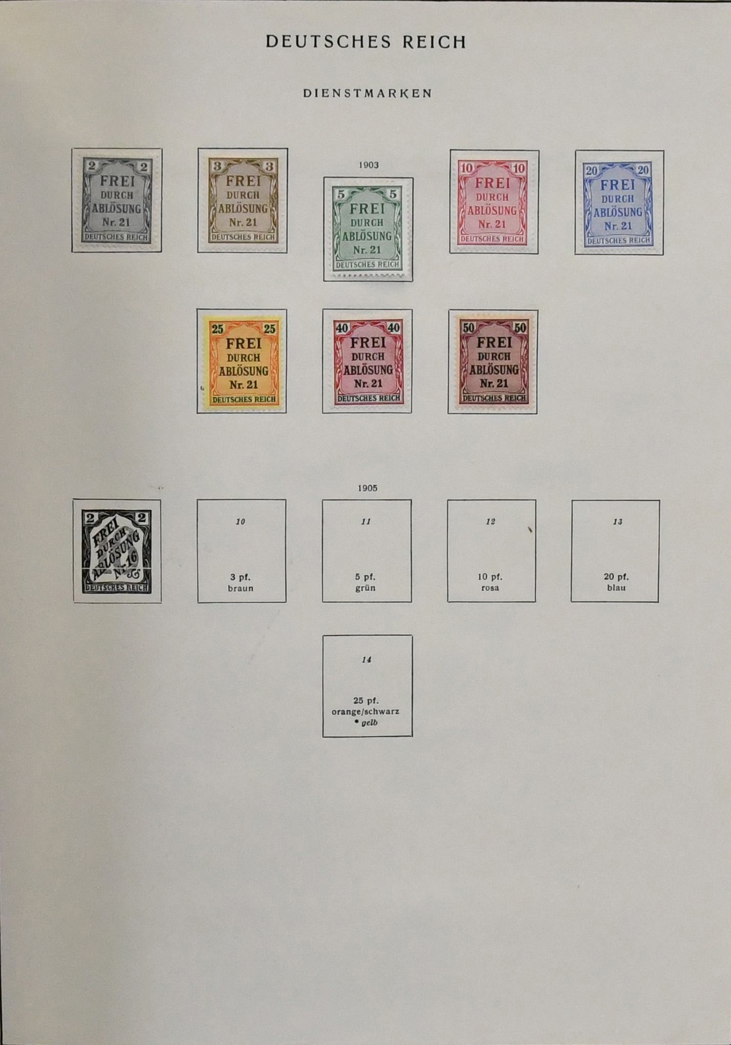 Deutsches Reich, 1872/1923, gestempelte Sammlung, beginnend mit einigen Brustschilden ab Nr. 2/3, mit Nr. 7, 10, 12 mit Federzug, 16/21, 37 in versch. Farben, 65, Infla in der "Breite" reichhaltig, ohne ungeprüfte teure Werte, sowie Dienst ab Nr. 1/8, im alten Borek-Vordruckalbum. Mi. 3400,-