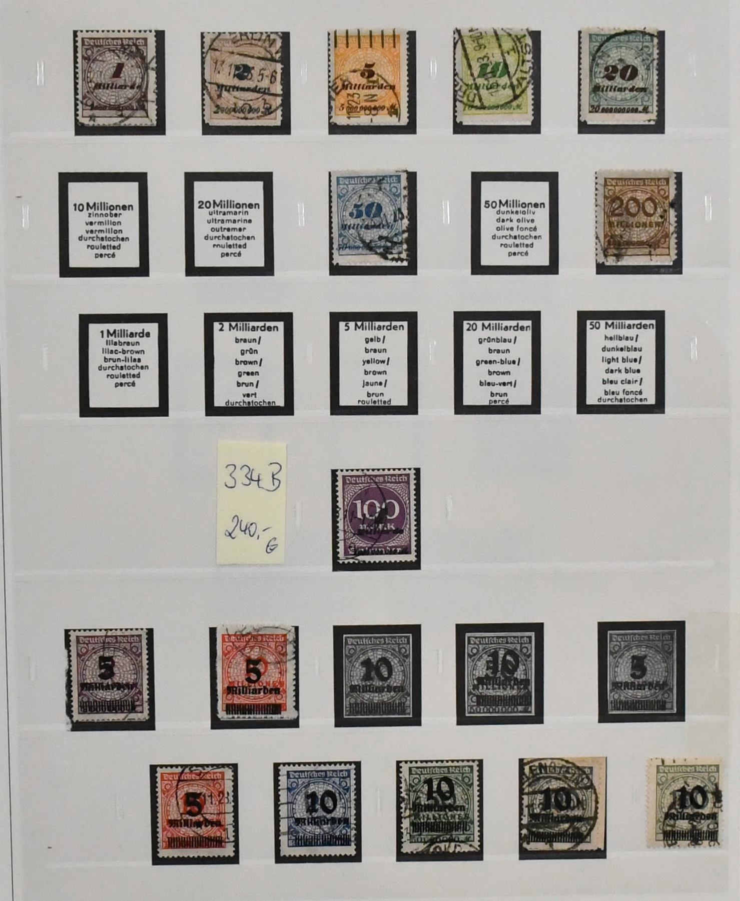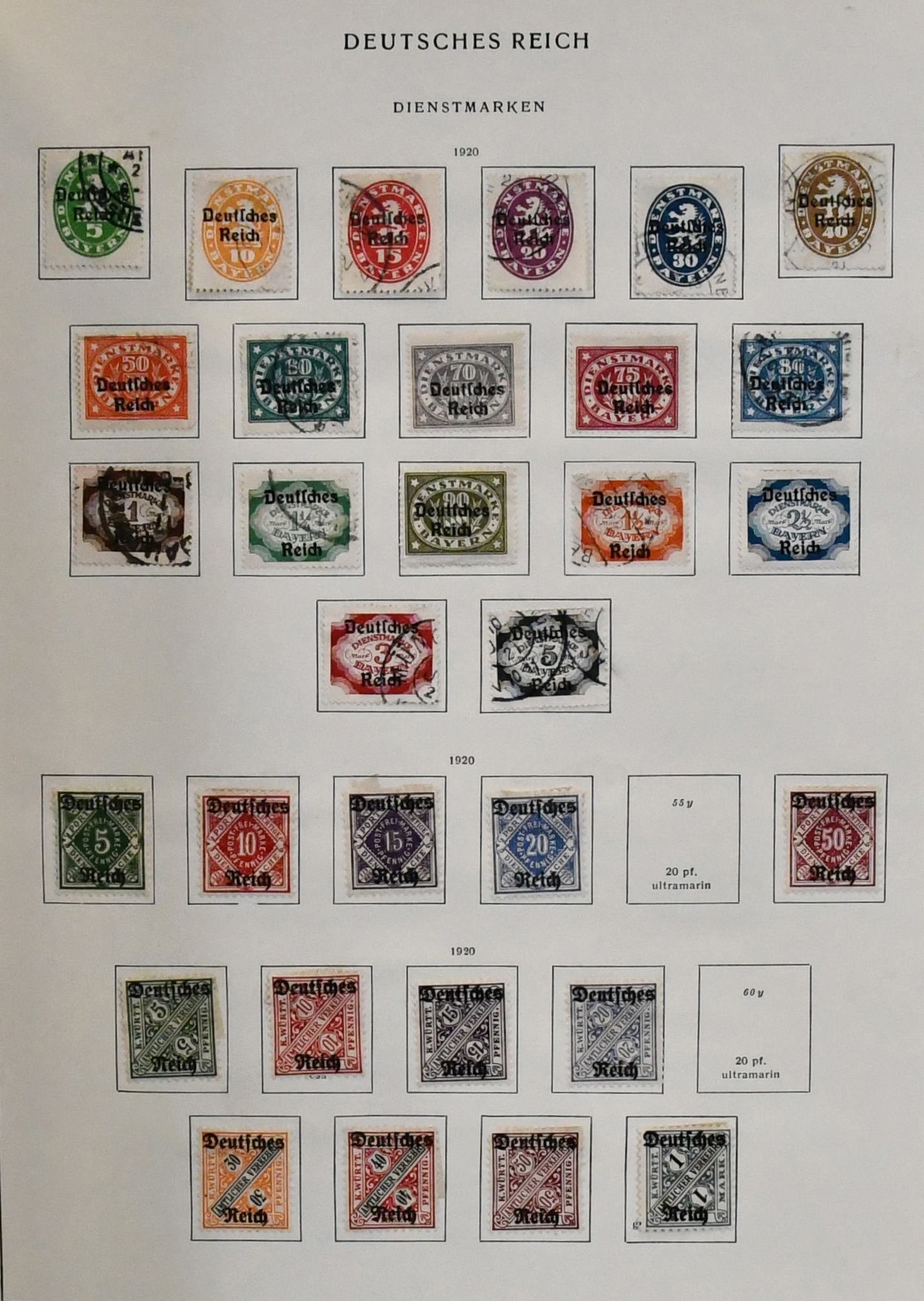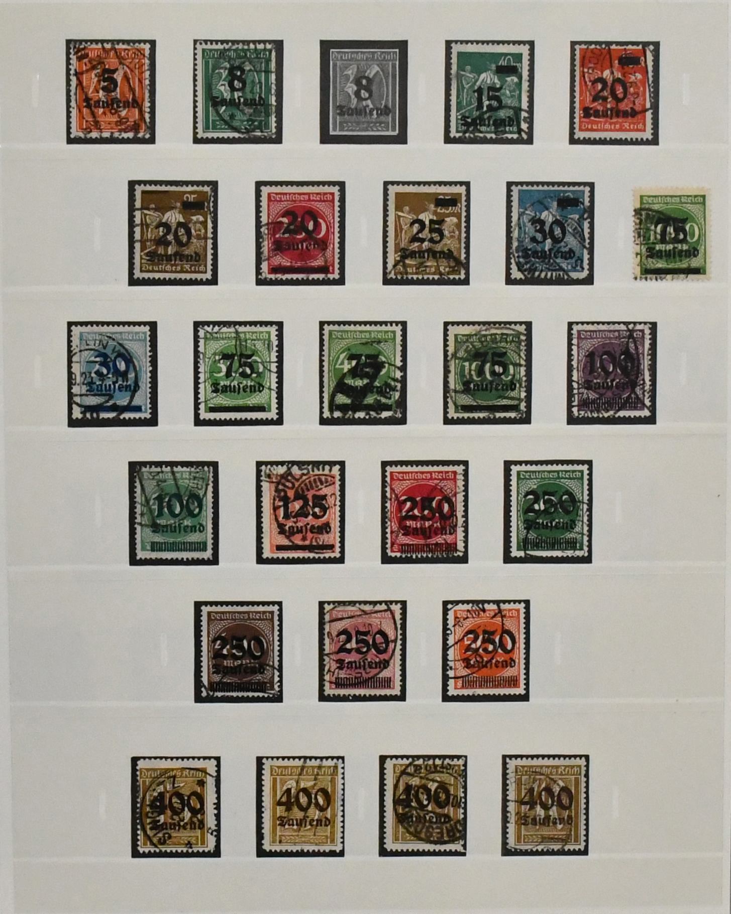 Deutsches Reich, 1918-1932, umfangreicher Sammlungsbestand im Vordruckalbum, hauptsächlich gestempelt, oft zusätzlich ungebraucht, dabei Infla weitgehend kpl. gestempelt und oft mit Farben gesammelt (chancenreich!), Weimar mit besseren wie Nothilfen, Nr. 351/54, 398/401, 407/409, 425/29, 430/34, 450/53, 459/62, Dienst kpl. usw.