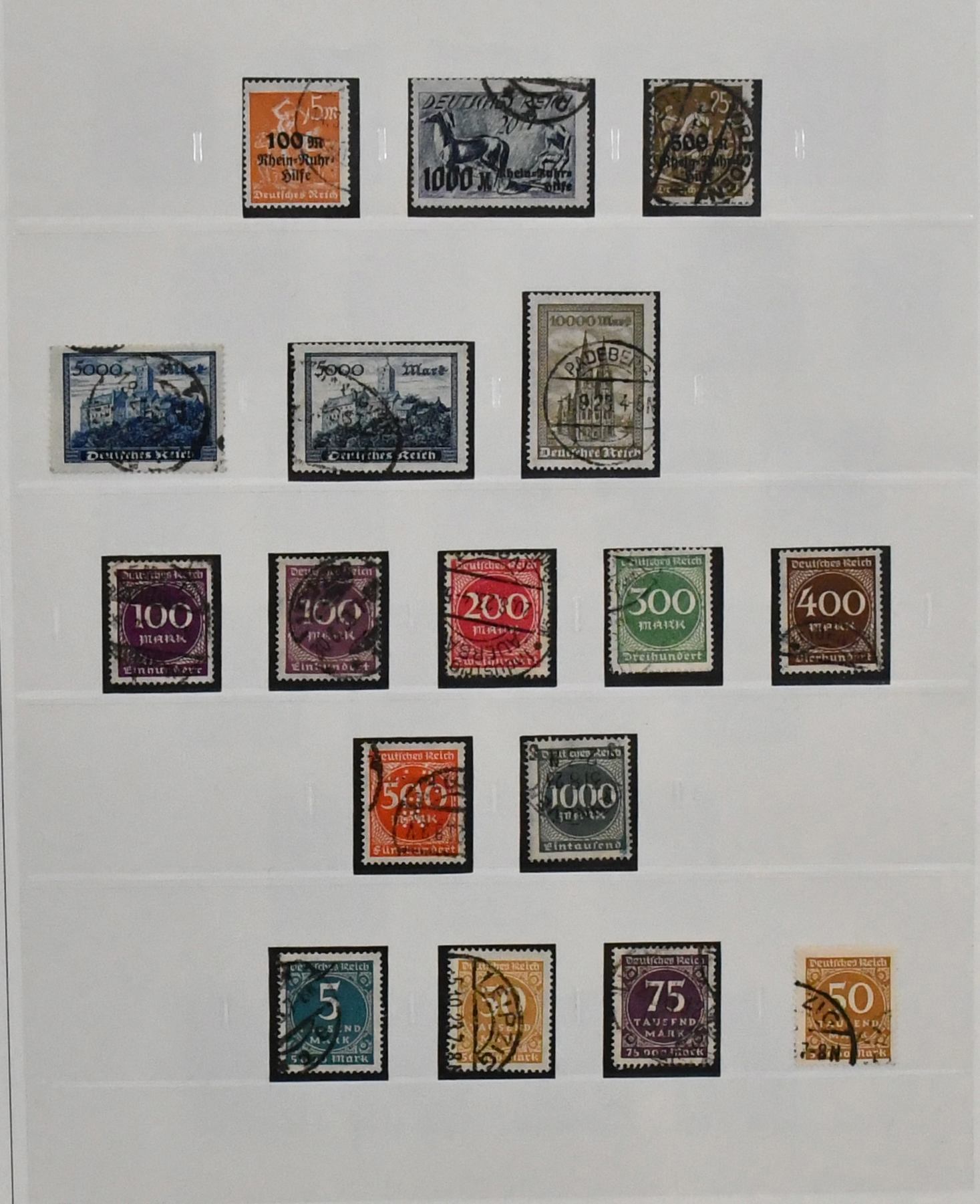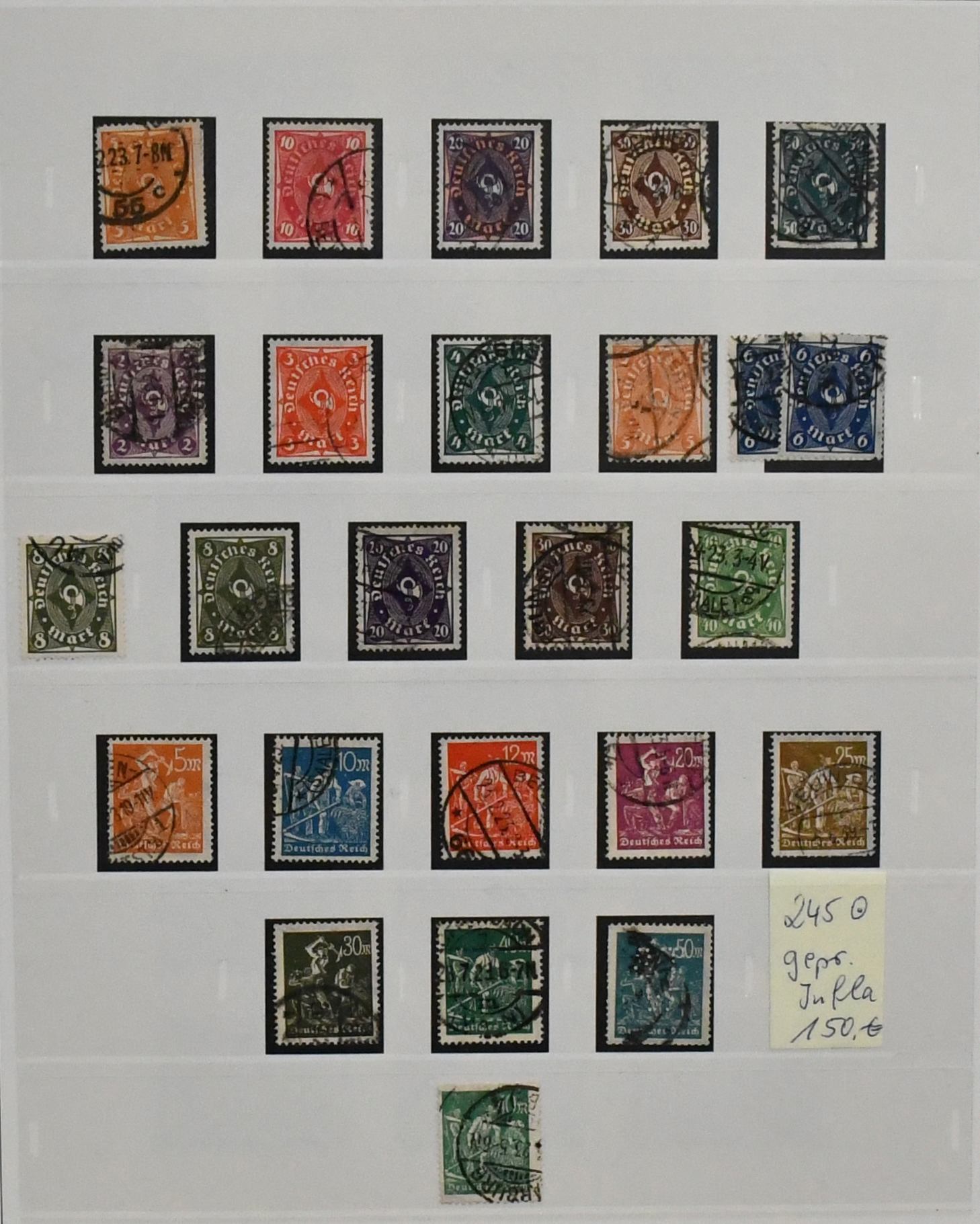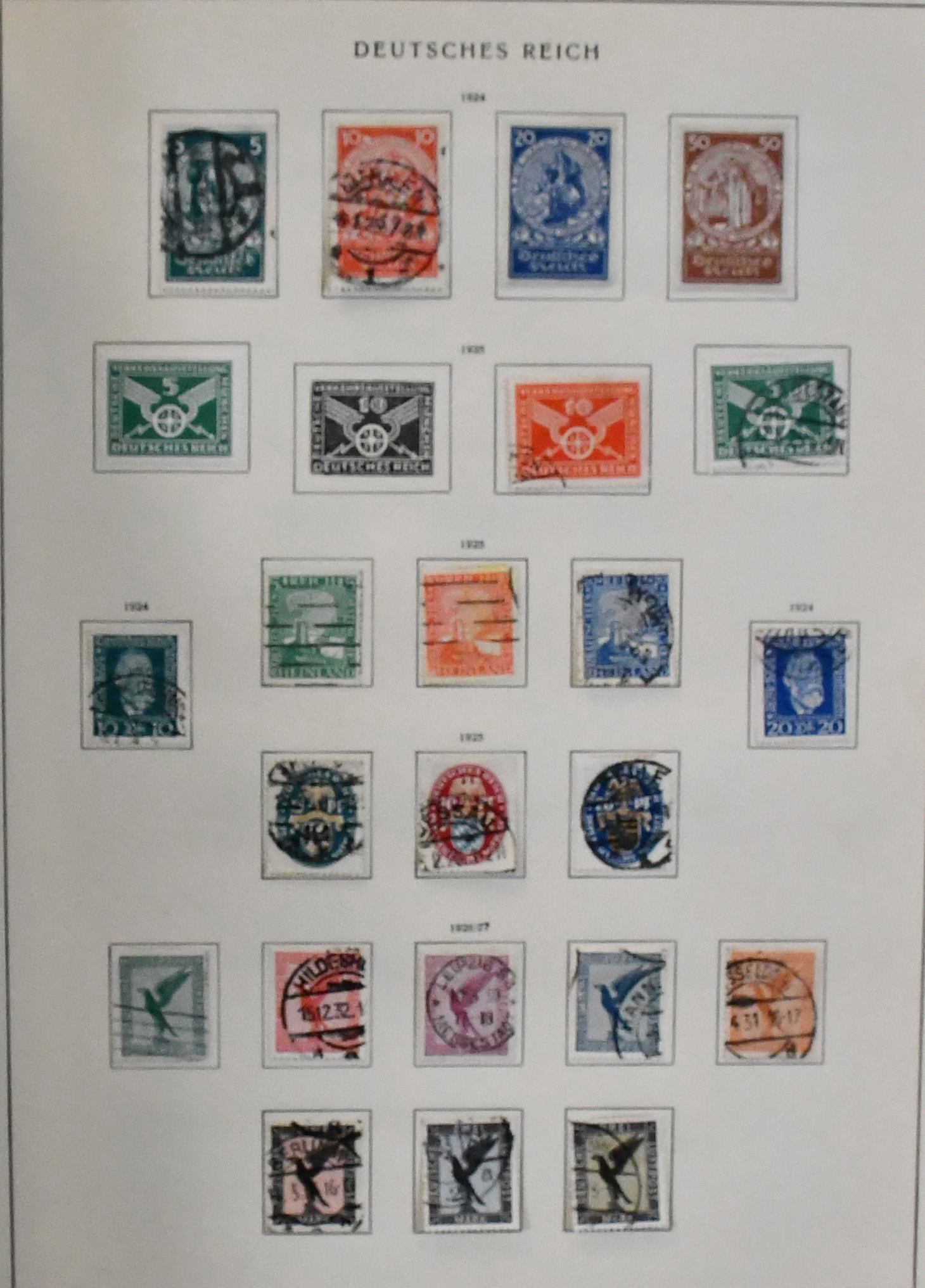 Deutsches Reich, 1918-1932, umfangreicher Sammlungsbestand im Vordruckalbum, hauptsächlich gestempelt, oft zusätzlich ungebraucht, dabei Infla weitgehend kpl. gestempelt und oft mit Farben gesammelt (chancenreich!), Weimar mit besseren wie Nothilfen, Nr. 351/54, 398/401, 407/409, 425/29, 430/34, 450/53, 459/62, Dienst kpl. usw.