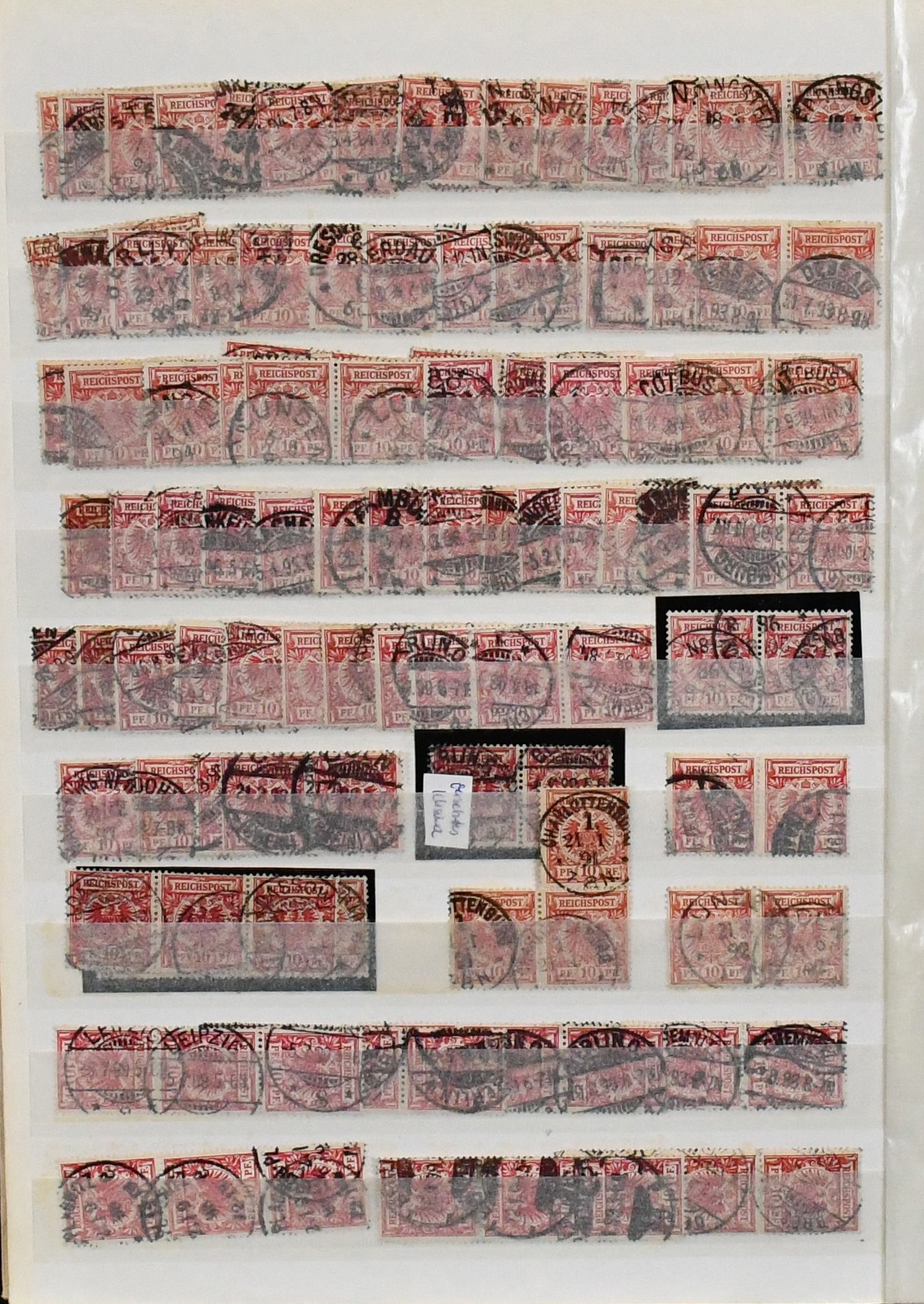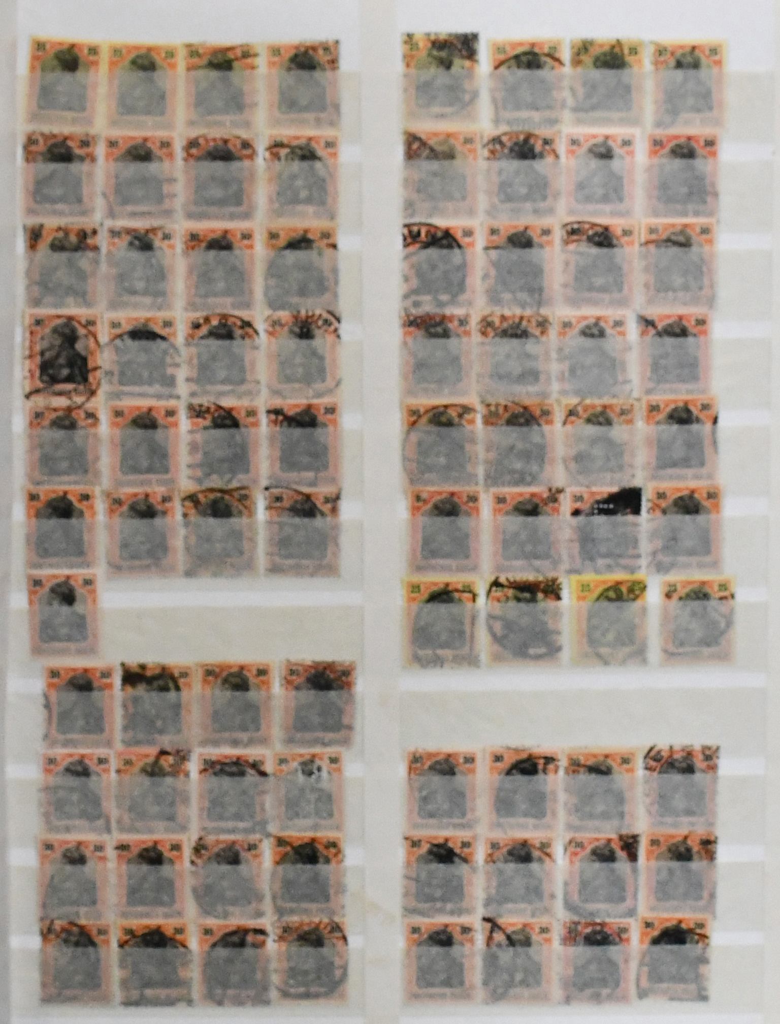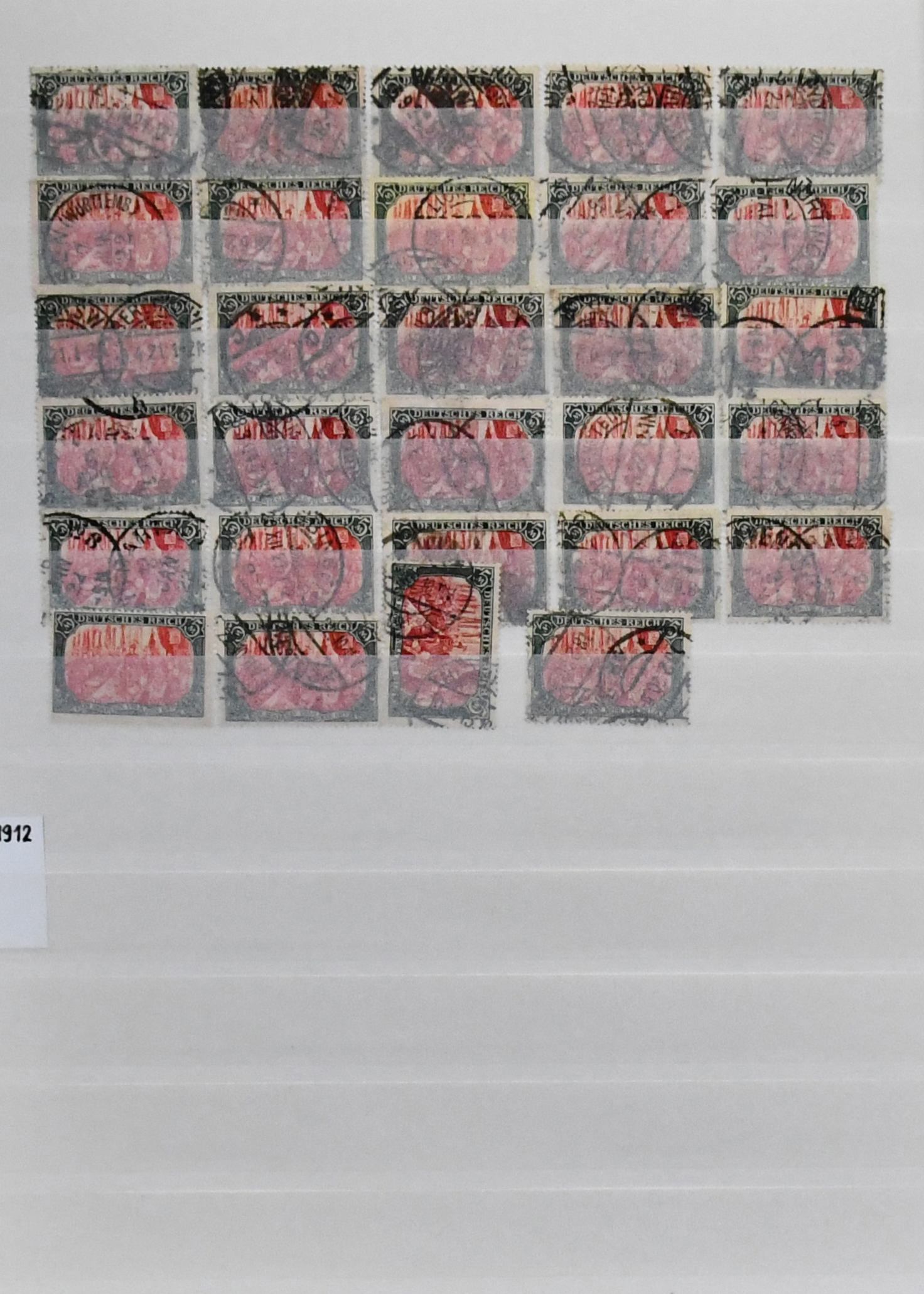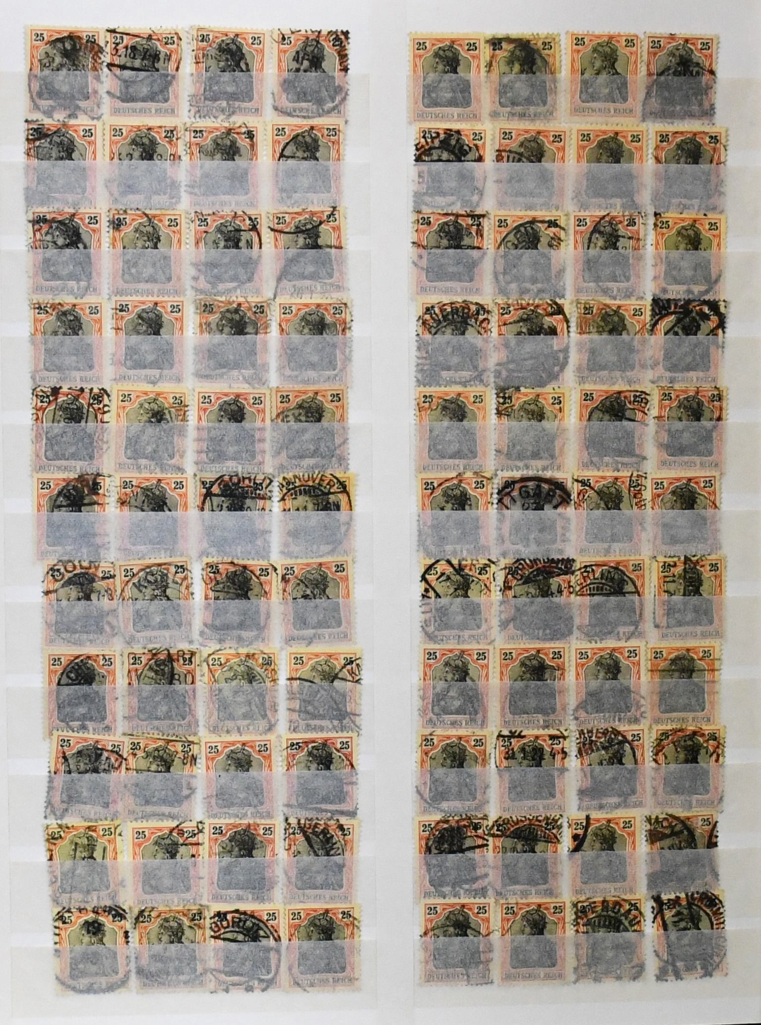 Germania, Ausgabe Nr. 82/97, Partie von etwa 4000 fast durchweg gestempelten Werten, sehr sortenreich, jede Wertstufe mehrfach, inkl. 290 Mark-Werten. Der Michelwert, billigst, beträgt bereits 9000,-. Aufgrund versch. Typen und vieler Farben dieser Ausgabe, enorme Fundgrube