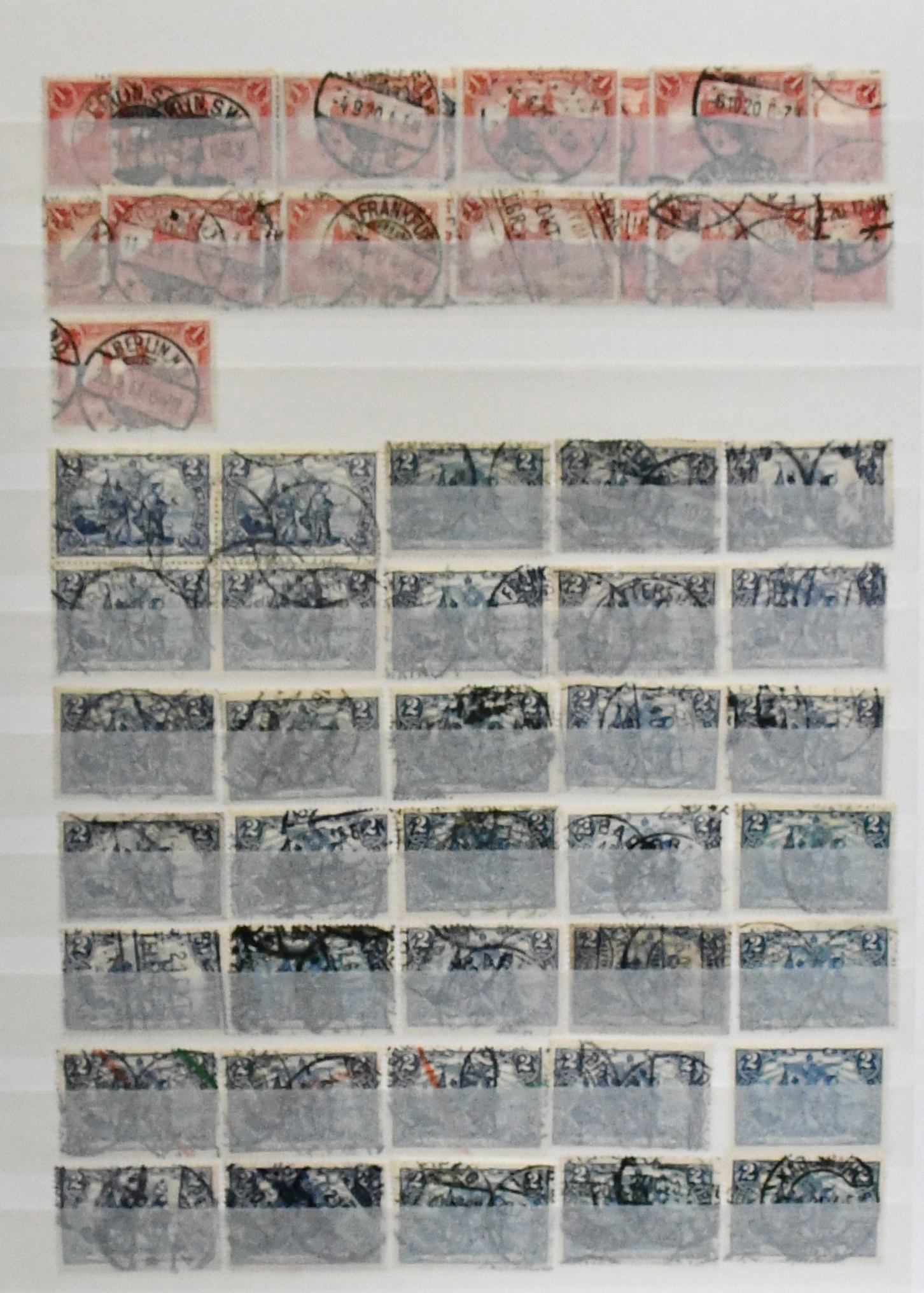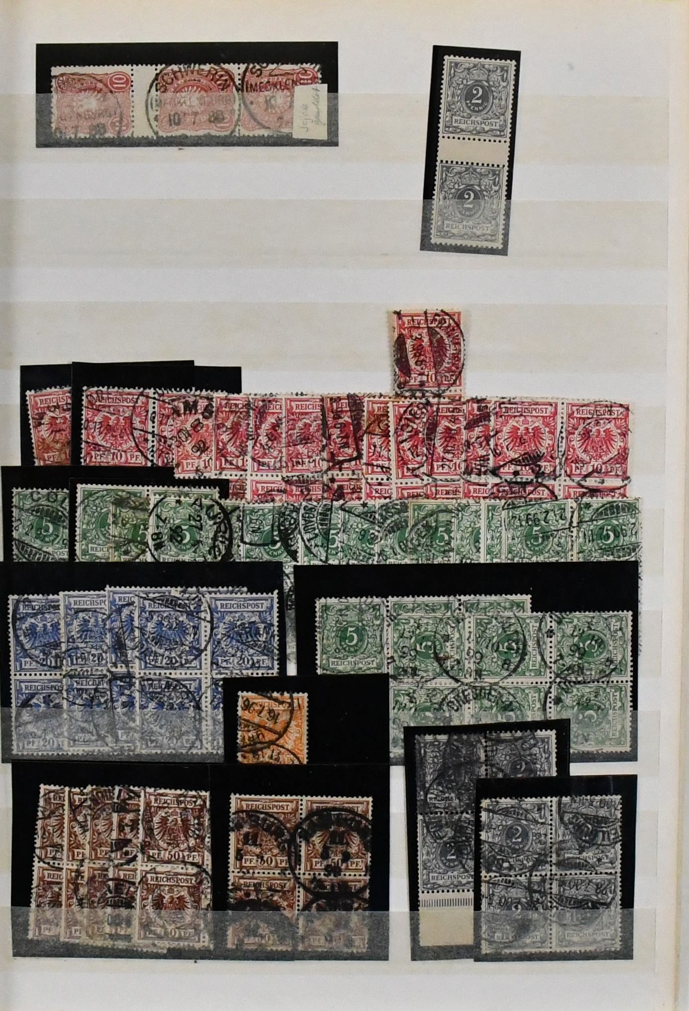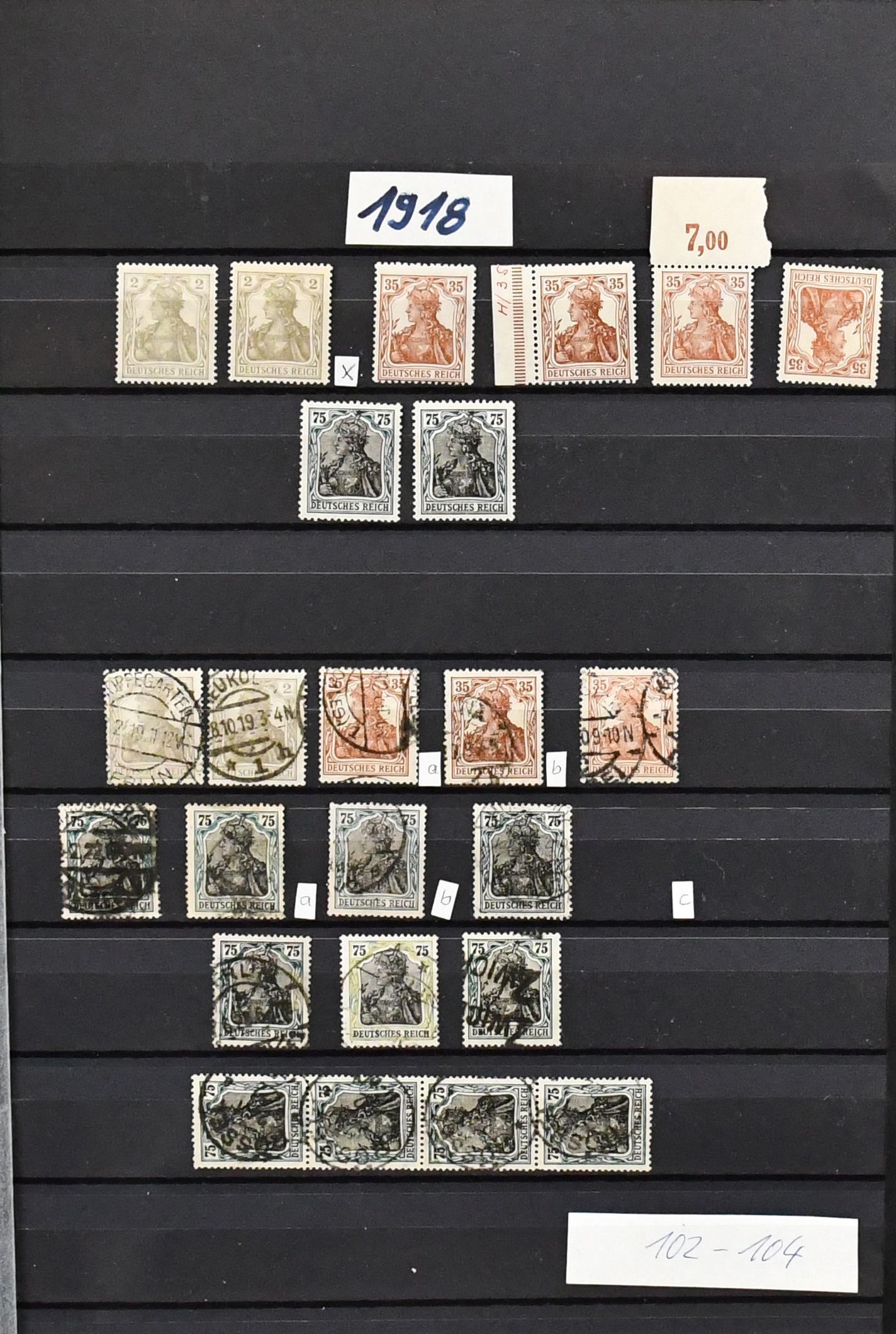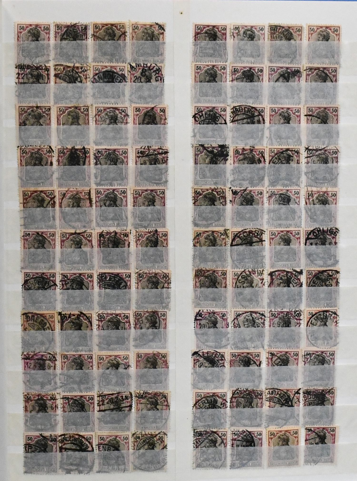 Germania, Ausgabe Nr. 82/97, Partie von etwa 4000 fast durchweg gestempelten Werten, sehr sortenreich, jede Wertstufe mehrfach, inkl. 290 Mark-Werten. Der Michelwert, billigst, beträgt bereits 9000,-. Aufgrund versch. Typen und vieler Farben dieser Ausgabe, enorme Fundgrube