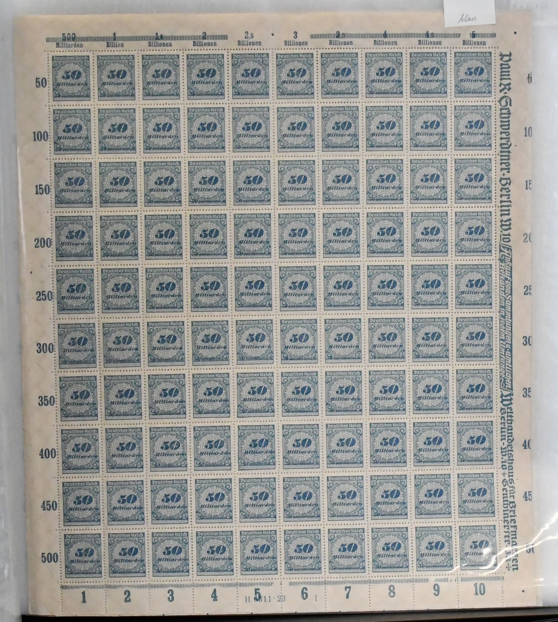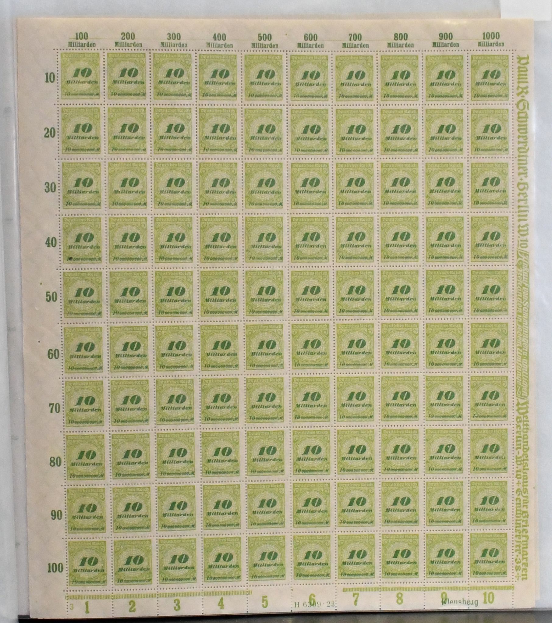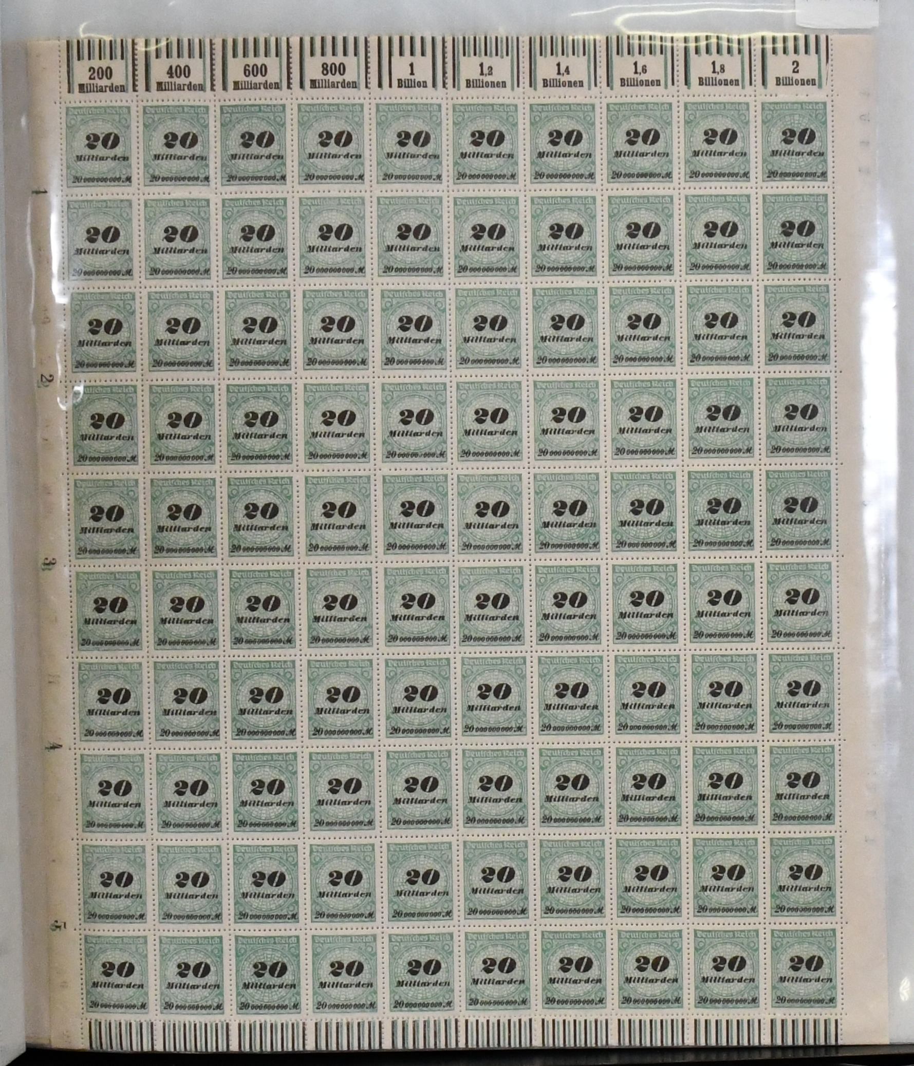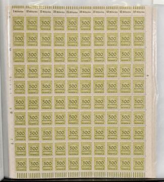 Deutsches Reich, Hochinflation, Partie von 40 kpl. postfrischen Bögen ex Nr. 297/300, inkl. mehrerer kompletter Sätze. Der Marken-Wert billigst, ohne Oberränder und sonstiger Besonderheiten, beträgt bereits 2000,- Mi.