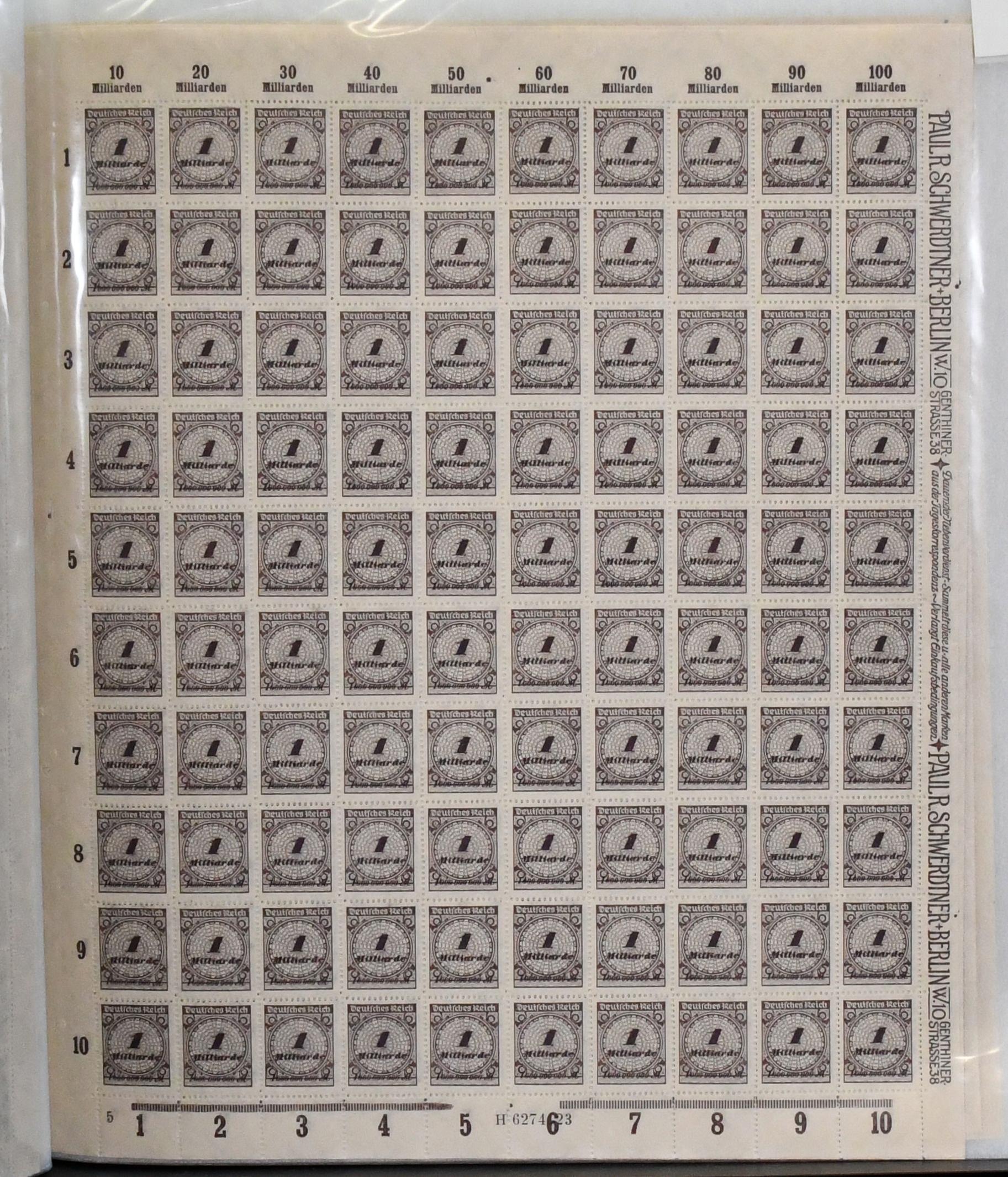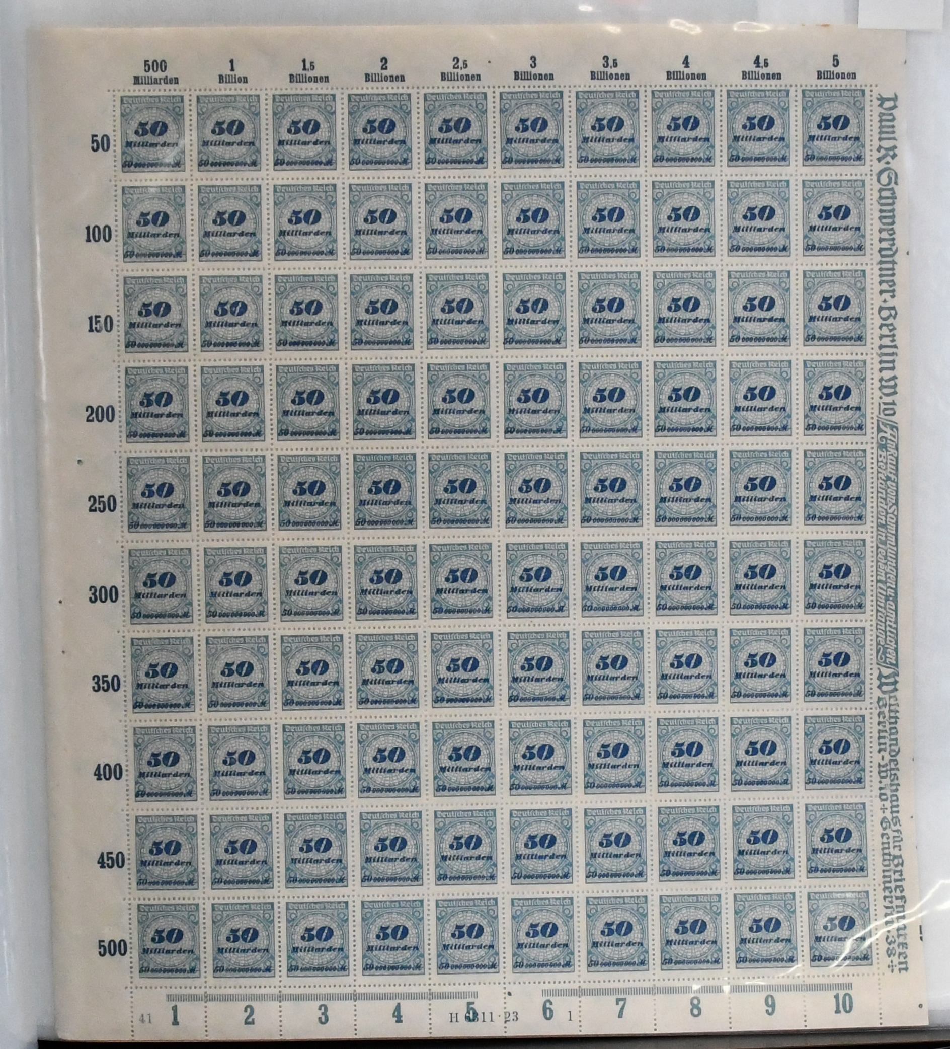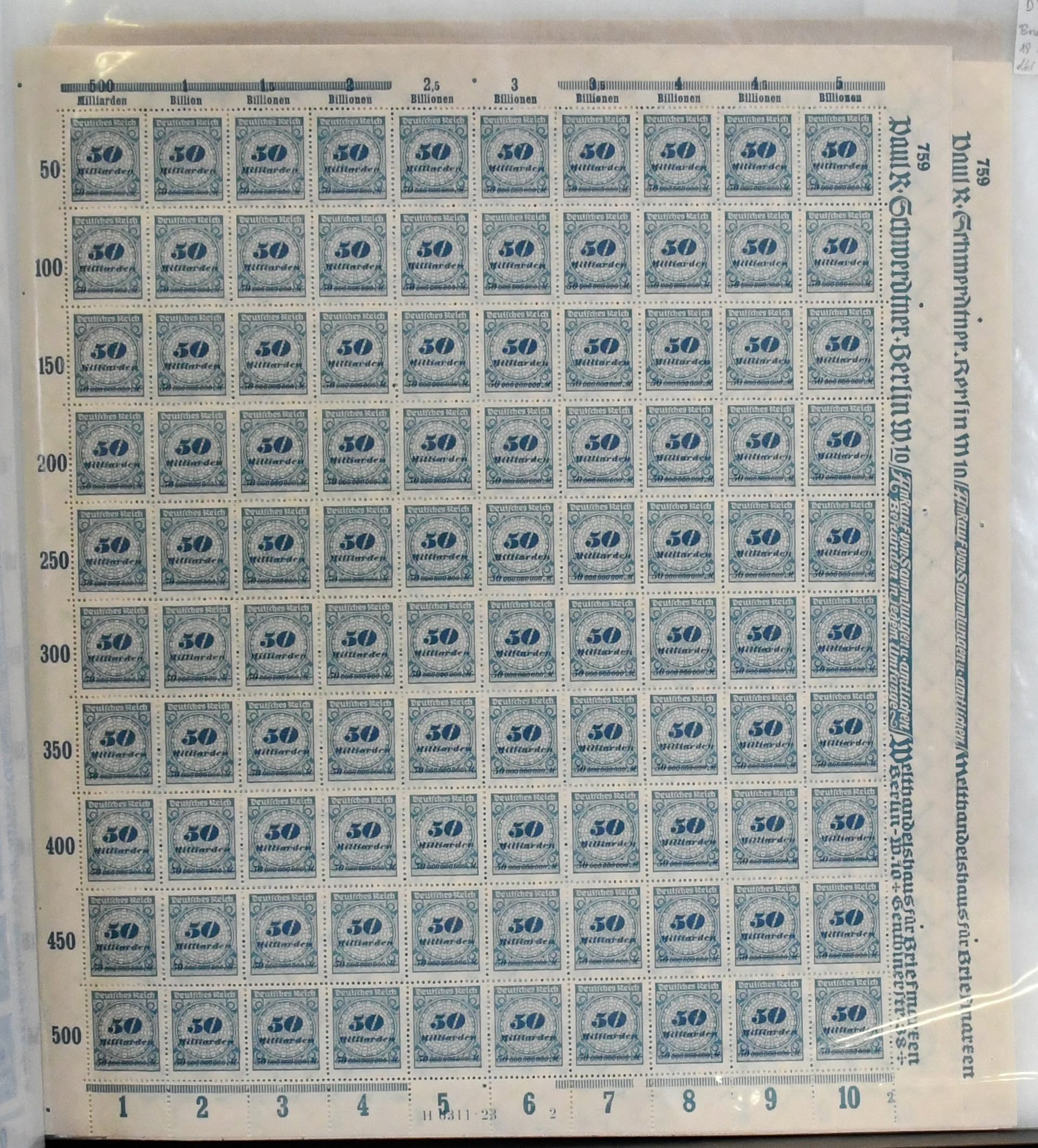 Deutsches Reich, Hochinflation, Partie von 40 kpl. postfrischen Bögen ex Nr. 297/300, inkl. mehrerer kompletter Sätze. Der Marken-Wert billigst, ohne Oberränder und sonstiger Besonderheiten, beträgt bereits 2000,- Mi.