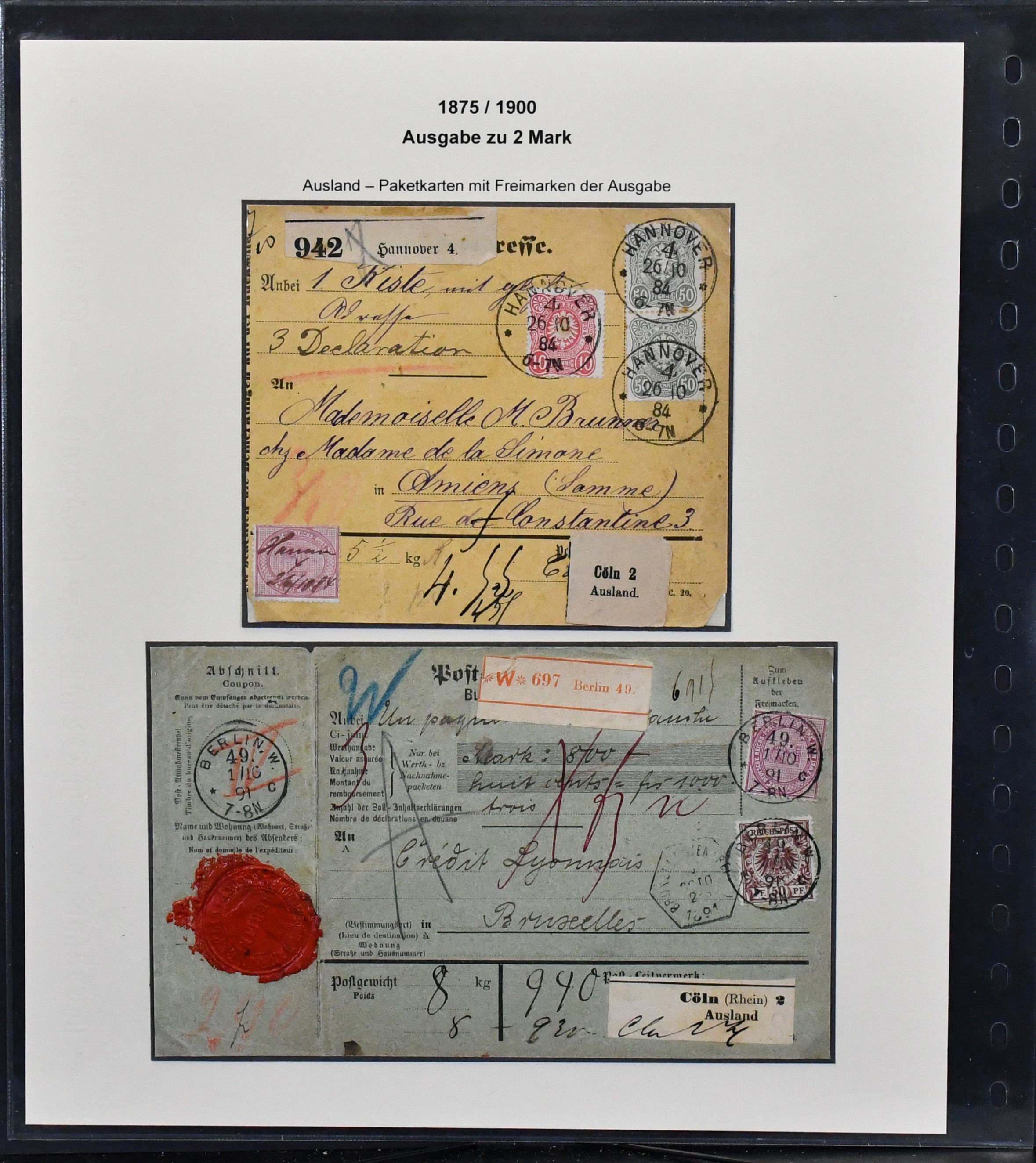 Pfennige-Ausgabe 1875, interessanter Teil aus einer guten Spezialslg., dabei alleine 17 Einschreiben In- und Ausland, auch mit erstem R-Zettel, Auslandskarten, ein entzückender Mini-Silvester-Brief mit der Nr. 34 in die Schweiz, Stempel, Nr. 33 auf Postzustellurkunde, Nr. 37c und e je in MiF auf Auslands-Paketkarten etc.