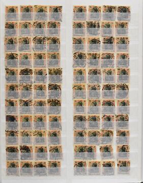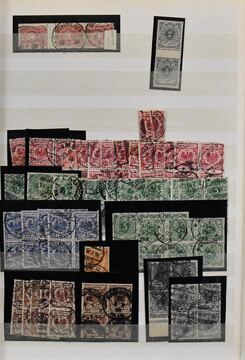 Krone-Adler, Einheiten-Partie von fast 2000 gestempelten Werten, von Paaren bis zu Viererblöcken, dabei 25 Pfg., sehr viele 50 Pfg.-Werte, teils auf den ersten Blick erkennbar in versch. Farben, etc. Hoher KW!