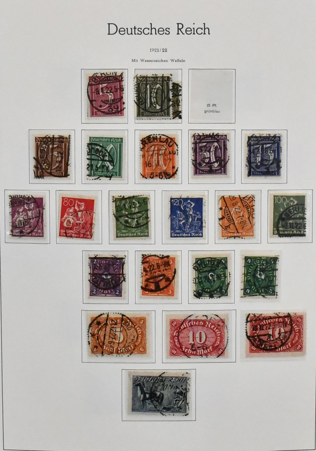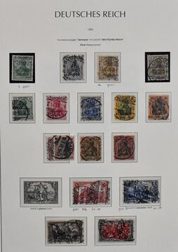 Deutsches Reich, Germania und meist Infla, gest. Slg. mit Nr. 83/93I/II, 119/38, 144/46I gest., 158/76, 177/96 fast kpl., 233/34, 245 gepr., 277/96 usw., auf Leuchtturm-Vordrucken. Mi., sehr zurückhaltend gerechnet, bereits 1500,-