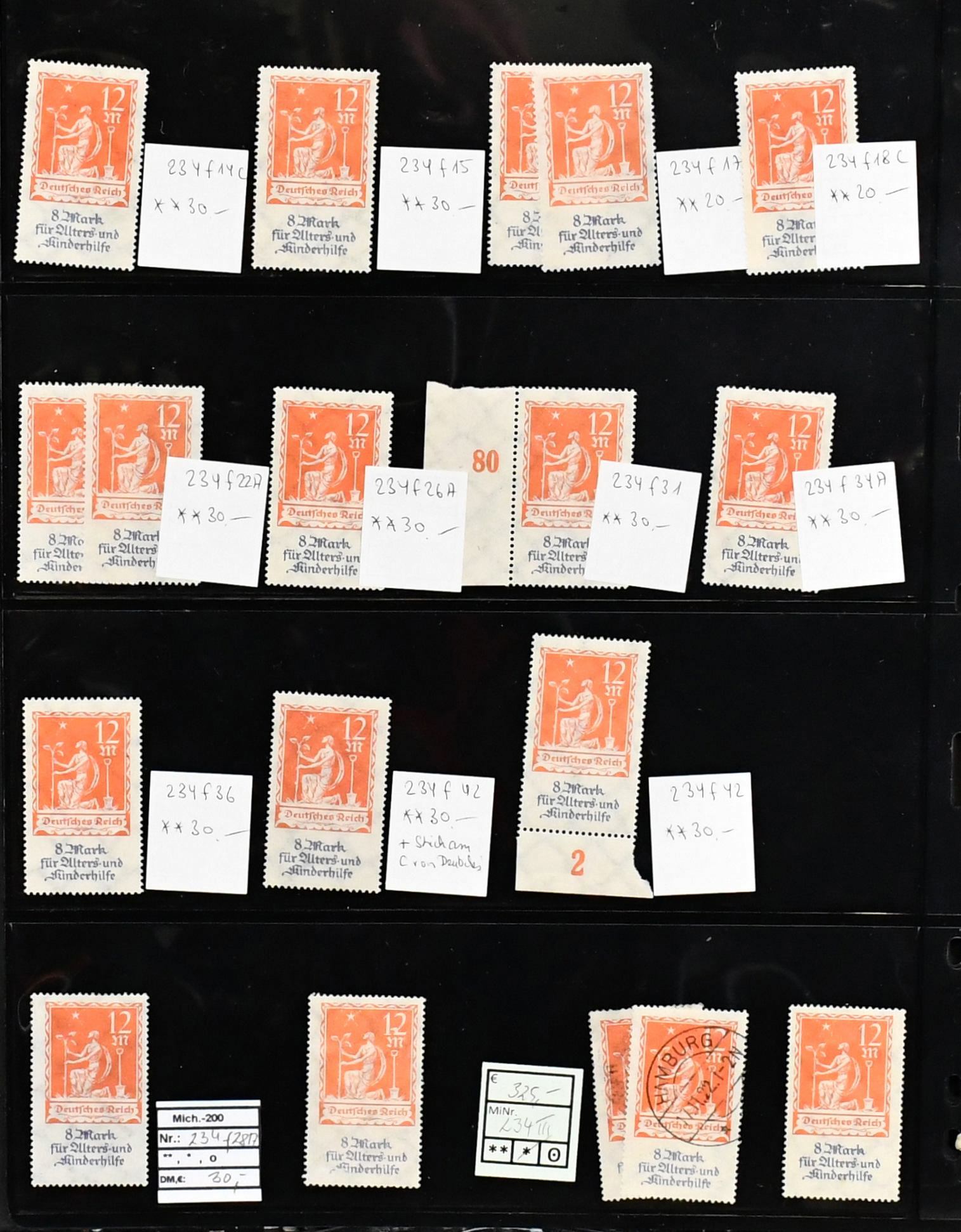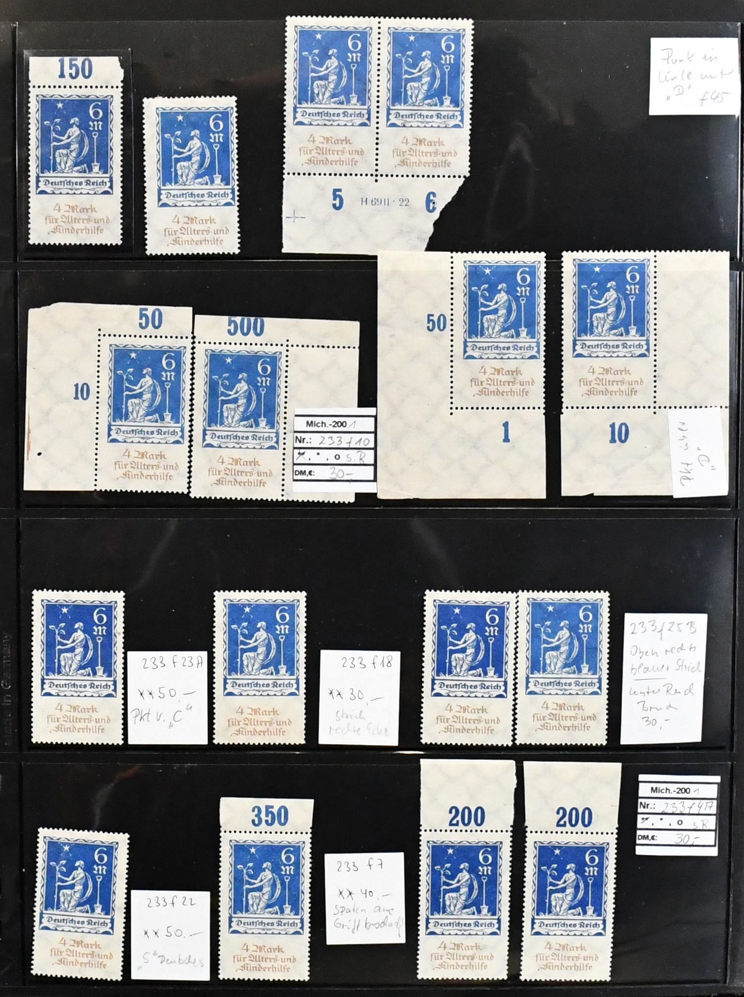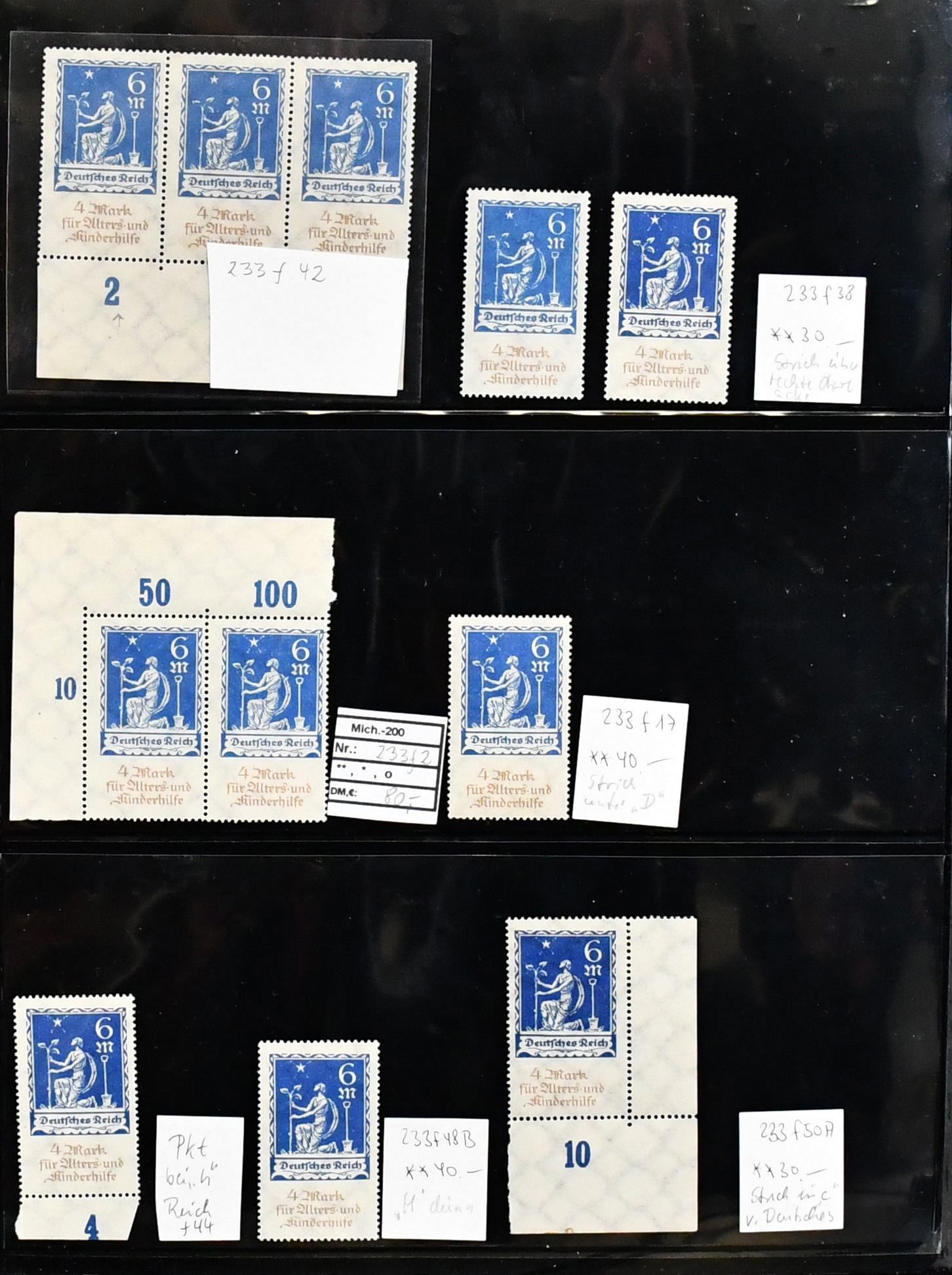 Infla, Spezialsammlung nur der Nr. 233/34, über 60 Werte mit Plattenfehlern inkl. besseren, u.a. Nr. 234 PF III und IV