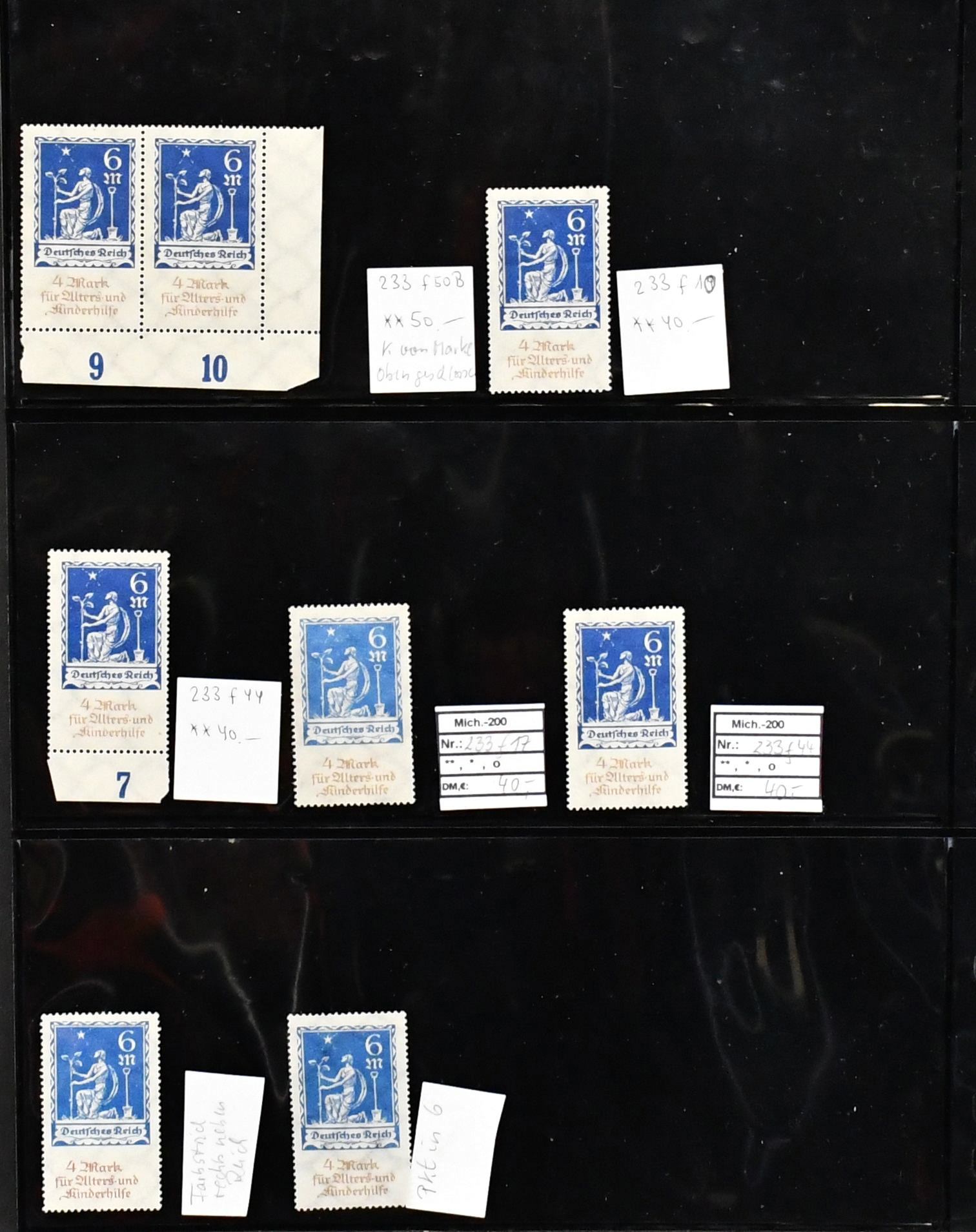 Infla, postfr. Zusammenstellung ex Nr. 224/31, mit Nr. 224aa vielfach in Viererblöcken, alle gepr., fünfmal Nr. 224b, je gepr., usw. Mi. 1300,-