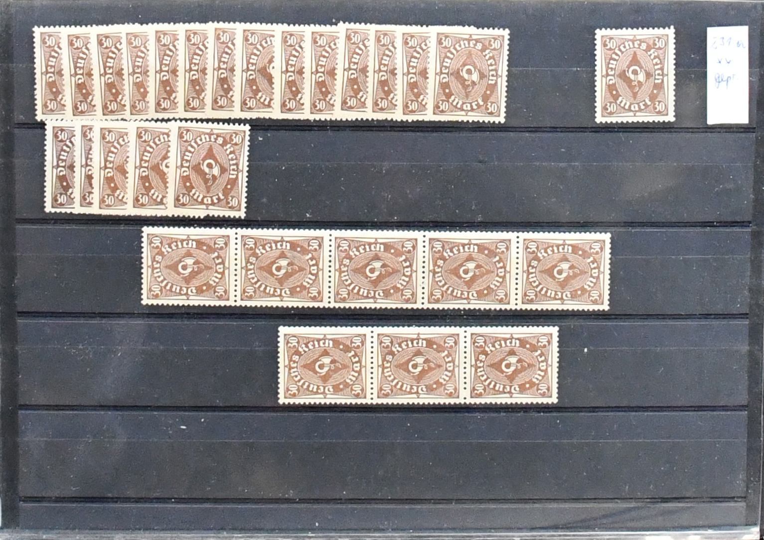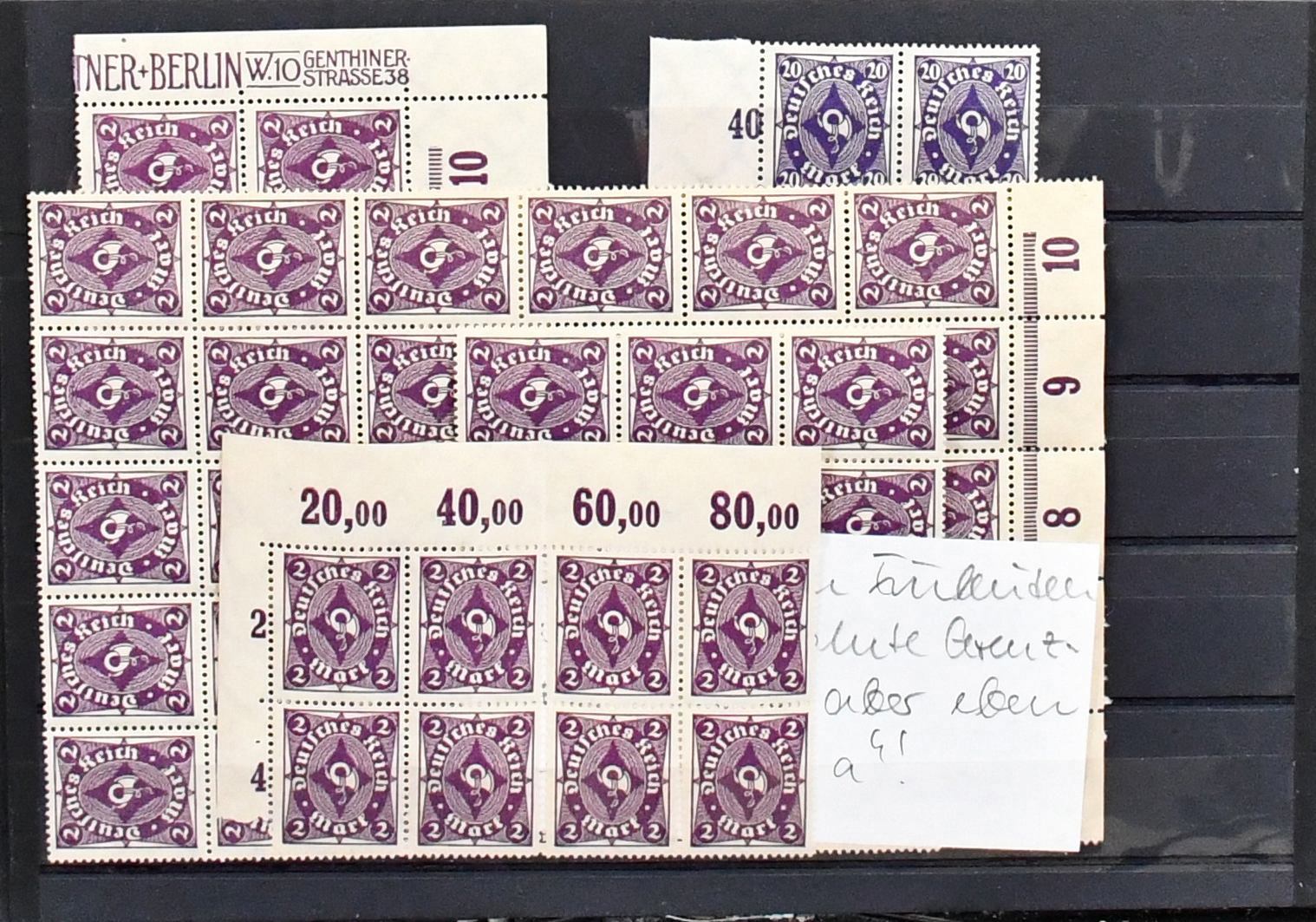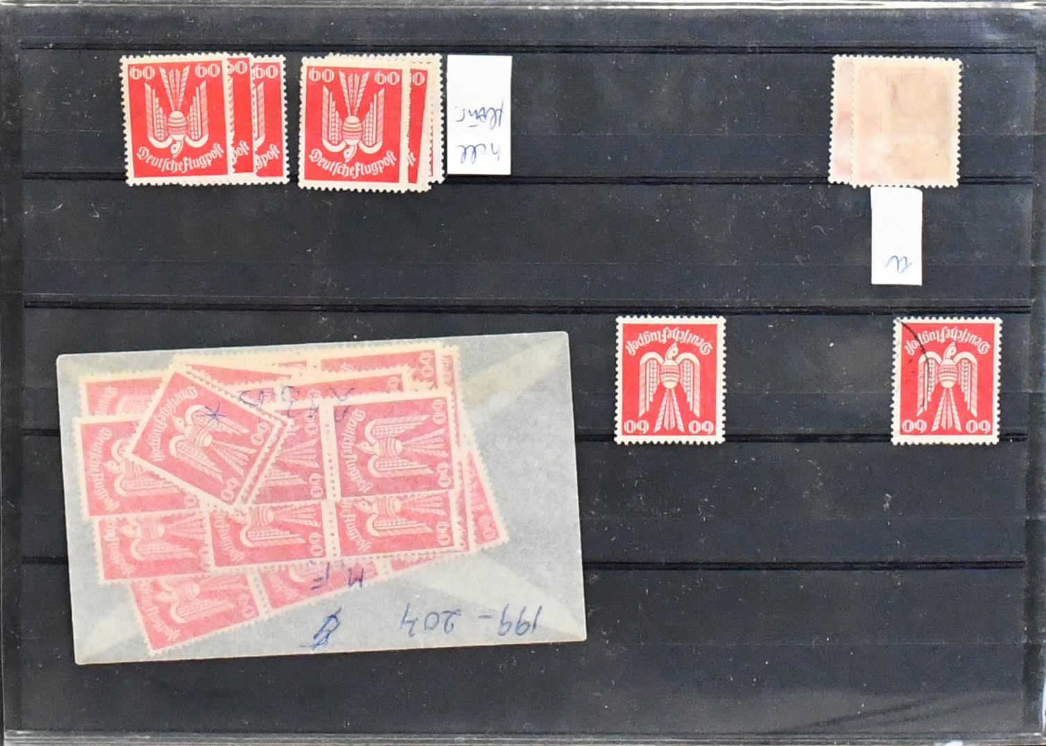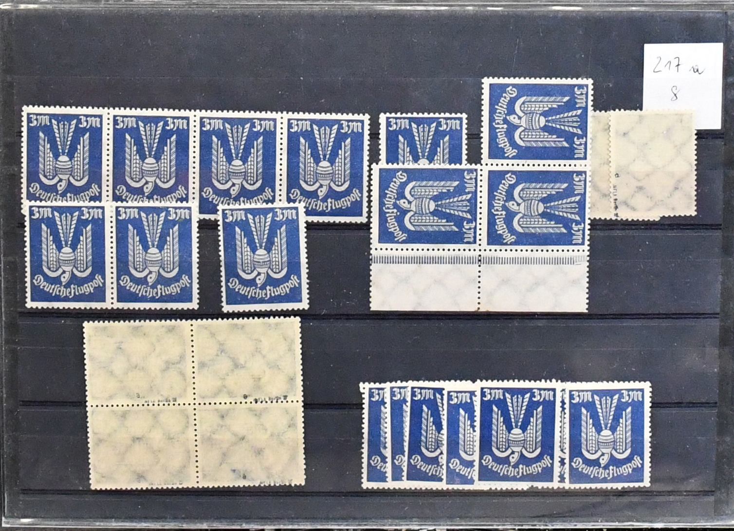 Deutsches Reich, Partie mit u.a. Flugtauben Nr. 212 postfr. per 95 inkl. zehn Oberrändern (Mi. 202,-), Nr. 217a postfr. per 17, je gepr. (Mi. 204,-), Nr. 237 zehnmal auf großem Briefstück, gepr., usw.