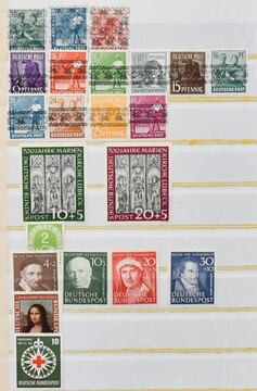 Deutschland nach 1945, Sammlungsbestand in drei Vordruckalben, dabei Bund gestempelt 1949-1989, teils doppelt, mit Anfängen wie Nr. 113/15, 139/40, 141/42, 143/46, 156/59, 173/76 etc., ferner postfr. Teile ab 1960 mit Heuss lieg. Wz. und Lumo etc.