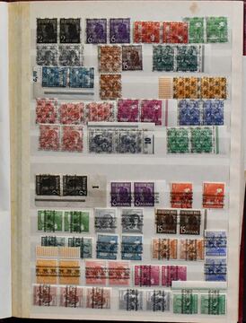 Alliierte Besetzung, 1945/49, Posten in fünf Alben, dabei u.a. SBZ-Slg. mit Nr. 20-22 gest. (Mi. 240,-), 26-28 gest. (180,-), Bl. 3A per drei, Bl. 3B, "Kempe"-Brief mit Nr. 42-50D, viele AM-Post-Dubletten usw.