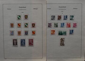 Westzonen, reichhaltige, untersch. erhaltene Slg. auf Vordrucken, dabei Frz. Zone mit Sondermarken, Bizone mit u.a. Bauten wg ungebr., Serie eg postfr., Bl. 1 postfr., Kontrollrat etc.