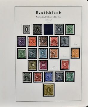 Westzonen, Slg. mit Gemeinschaftsausgabe Nr. 911/37 u. 943/62 je gest., Rheinl.-Pfalz mit u.a. Nr. 32/41 gest. (Mi. 550,-), Bizone ab Nr. 1/35, sowie mit diversen Briefen bei allen Gebieten. Dazu SBZ Bl. 6