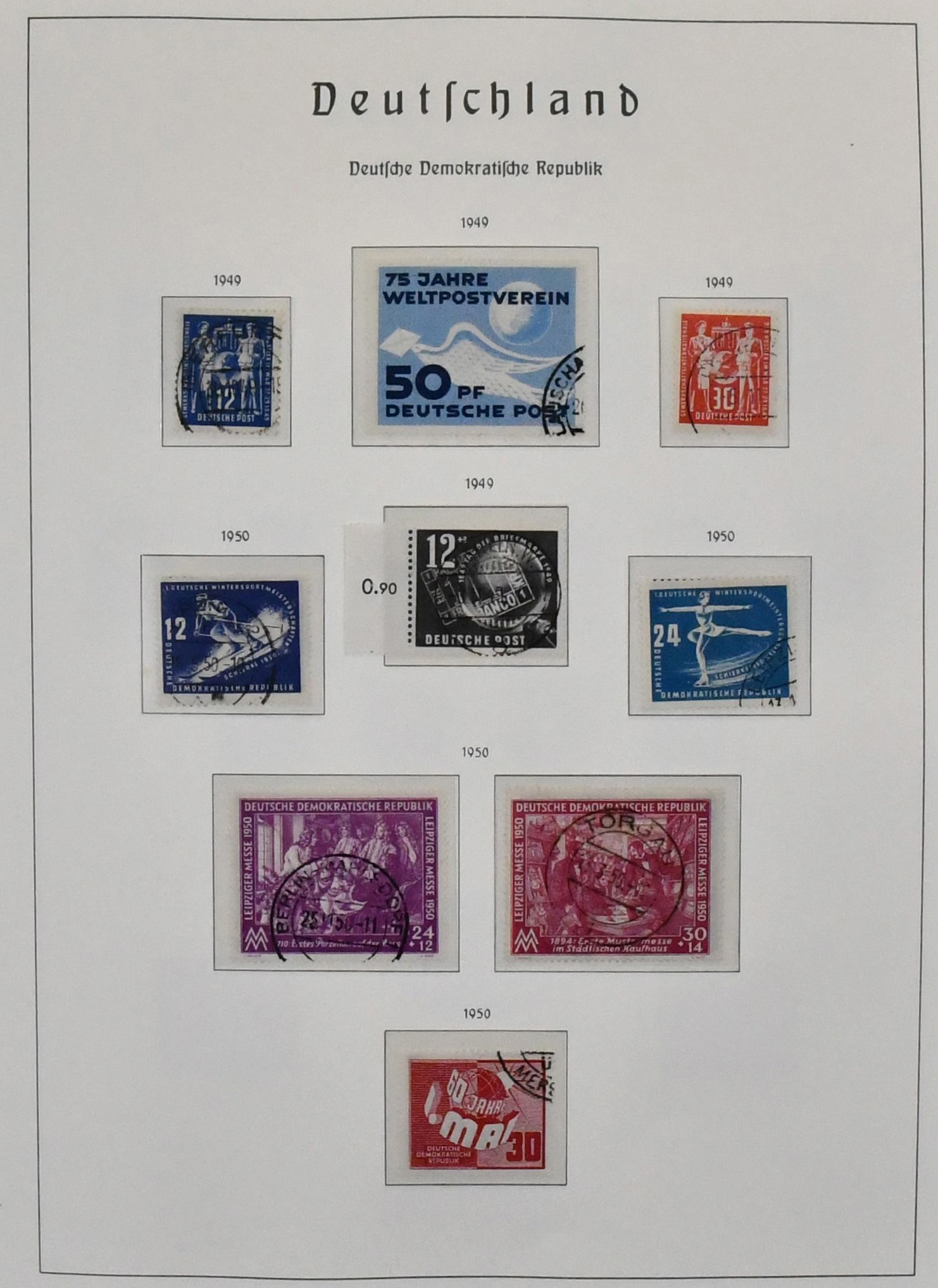 DDR, 1949/90, gest. kpl. Sammlung in zwei älteren Leuchtturm-Vordruckalben. Dabei alle besseren Ausgaben wie u.a. Bl. 7/19, inkl. Bl. 8/9A/B, Nr. 261/70, 286/88, 327/41, inkl. 80 Pfg. Lackpapier usw. Mi., alles als Gefälligkeitsentwertung gerechnet, bereits 5000,-