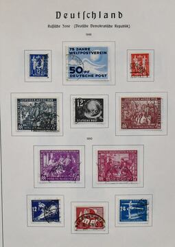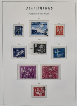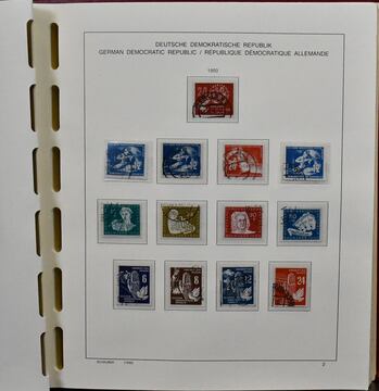 DDR, 1949/1983, gestempelte, bis auf Nr. 327/41, drei Marx-Blöcke und einige einfache Werte der letzten Jahre, komplette Slg. ab Nr. 242, bis 1968, im Leuchtturm-Vordruckalbum und später auf Lindner-T-Vordrucken. Dabei Nr. 261/70, 286/88, Bl. 10/12 usw. Dazu Bl. 7 u. 13 postfr. Mi. rund 3500,-