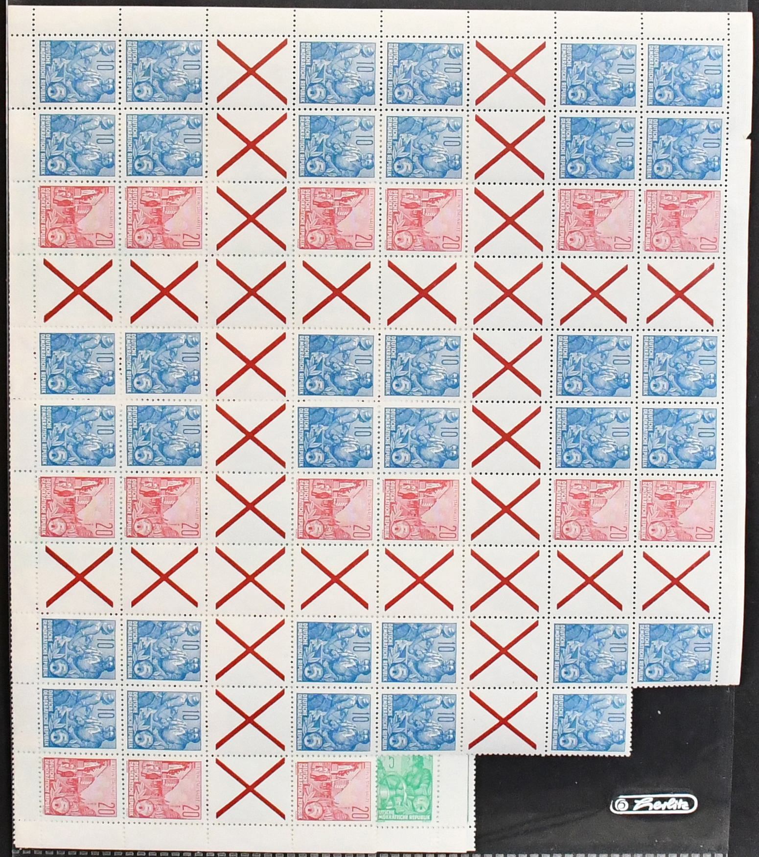 DDR, Laufkontrollzettel Nr. 1/15 postfrisch in 10er-Bogenteilen, Mi. 400,-