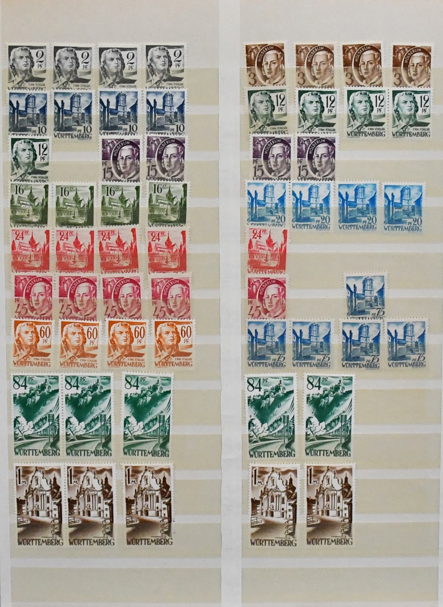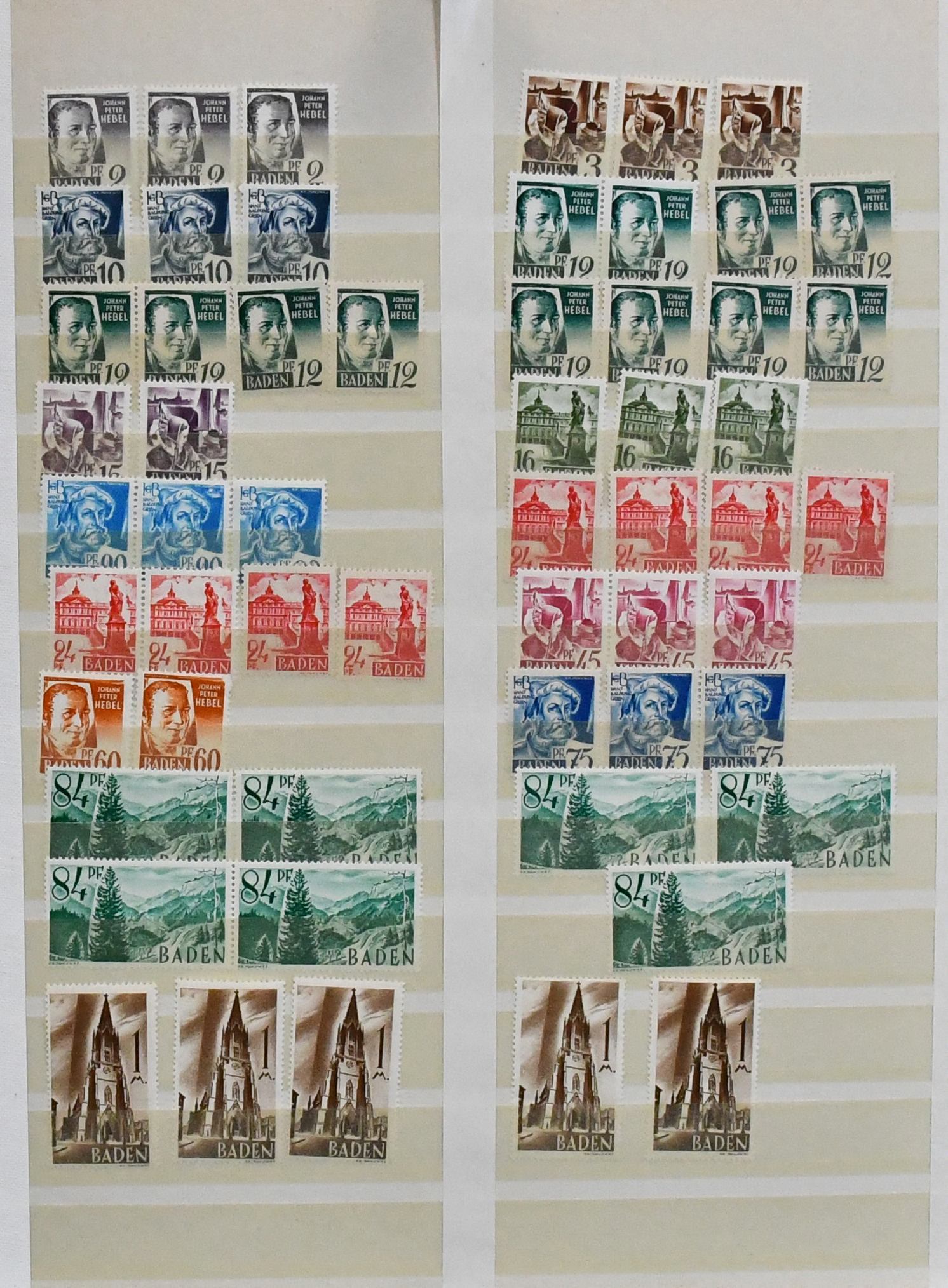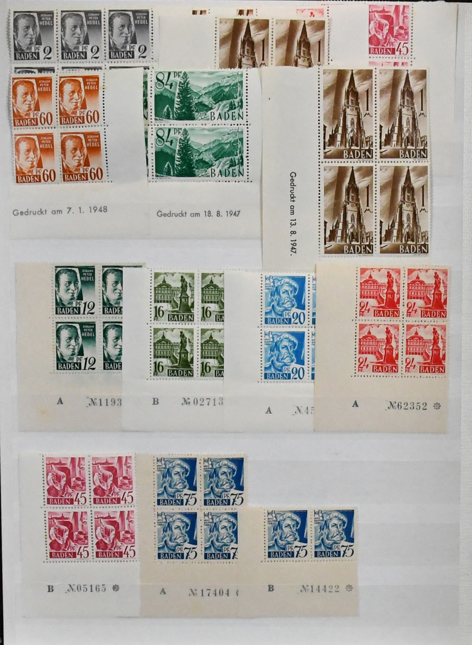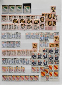 Französische Zone, 1945/49, bis auf Württemberg Bl. 1, komplette Sammlung inkl. allen III. Freimarken-Sätzen, die besseren Werte teils per zwei, mit allen Rotkreuz-Sätzen, Baden Bl. 1A und 2, Rheinland-Pfalz Bl. 1 usw.