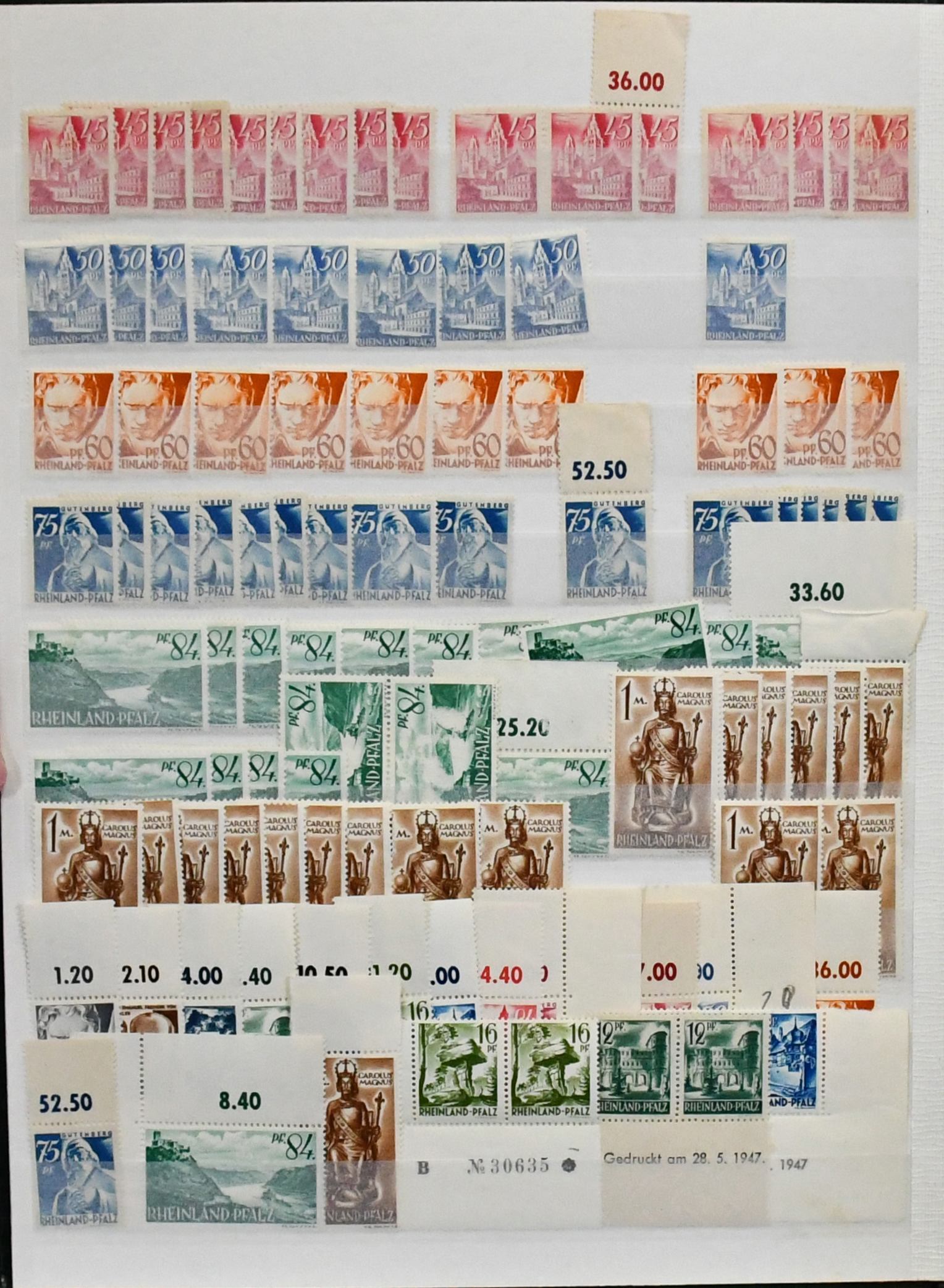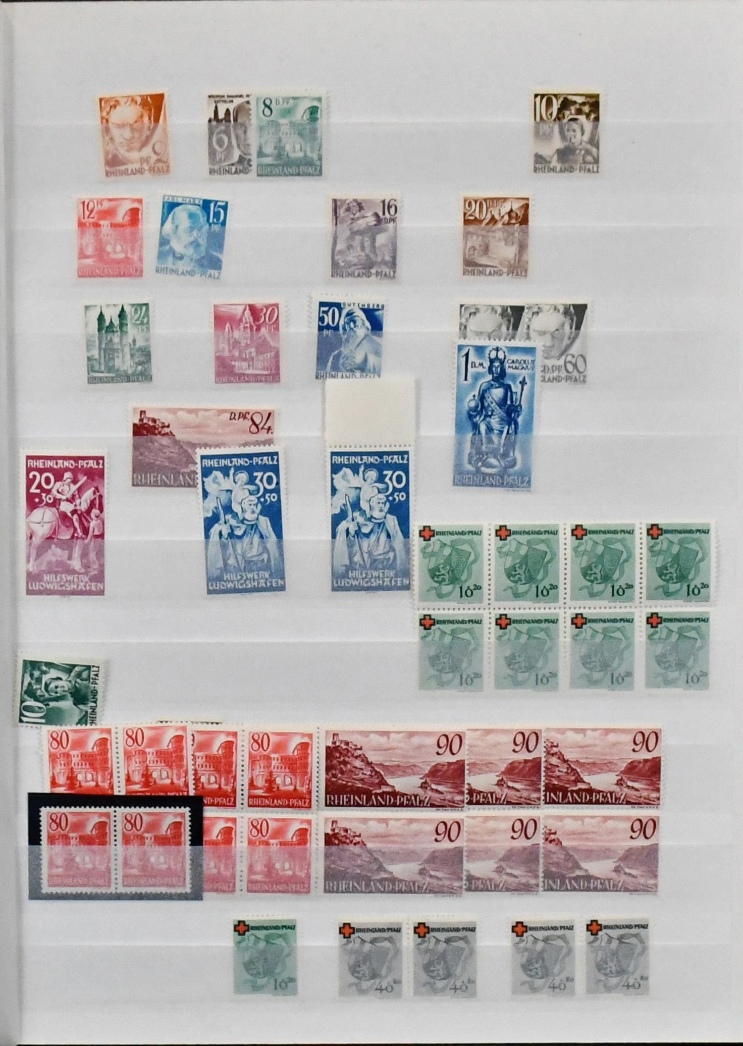 Rheinland-Pfalz, postfrische Slg. mit Nr. 1-29, 32-52, Bl. 1, ferner Nr. 30-31 gest., sowie Württemberg mit Nr. 29-37 postfr., 38-39 gest. etc.