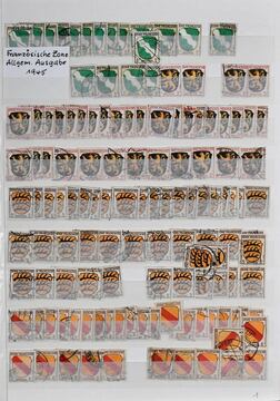 Französische Zone, 1945/49, gest. Slg. mit etwas Baden, Rheinland-Pfalz Nr. 1/45A (Mi. 1179,-), sowie Württemberg Nr. 1/36 (Mi. 140,-), dazu ein nachgestempelter Block 1 unberechnet