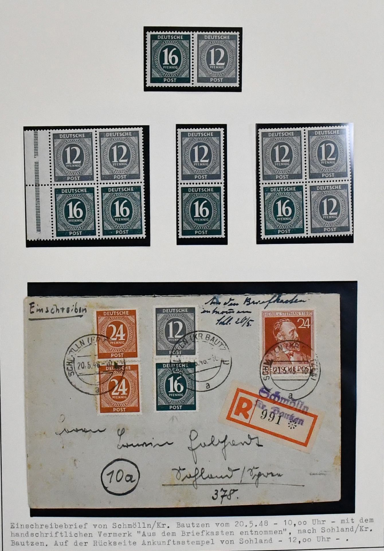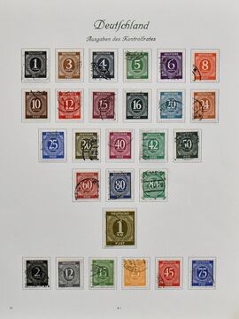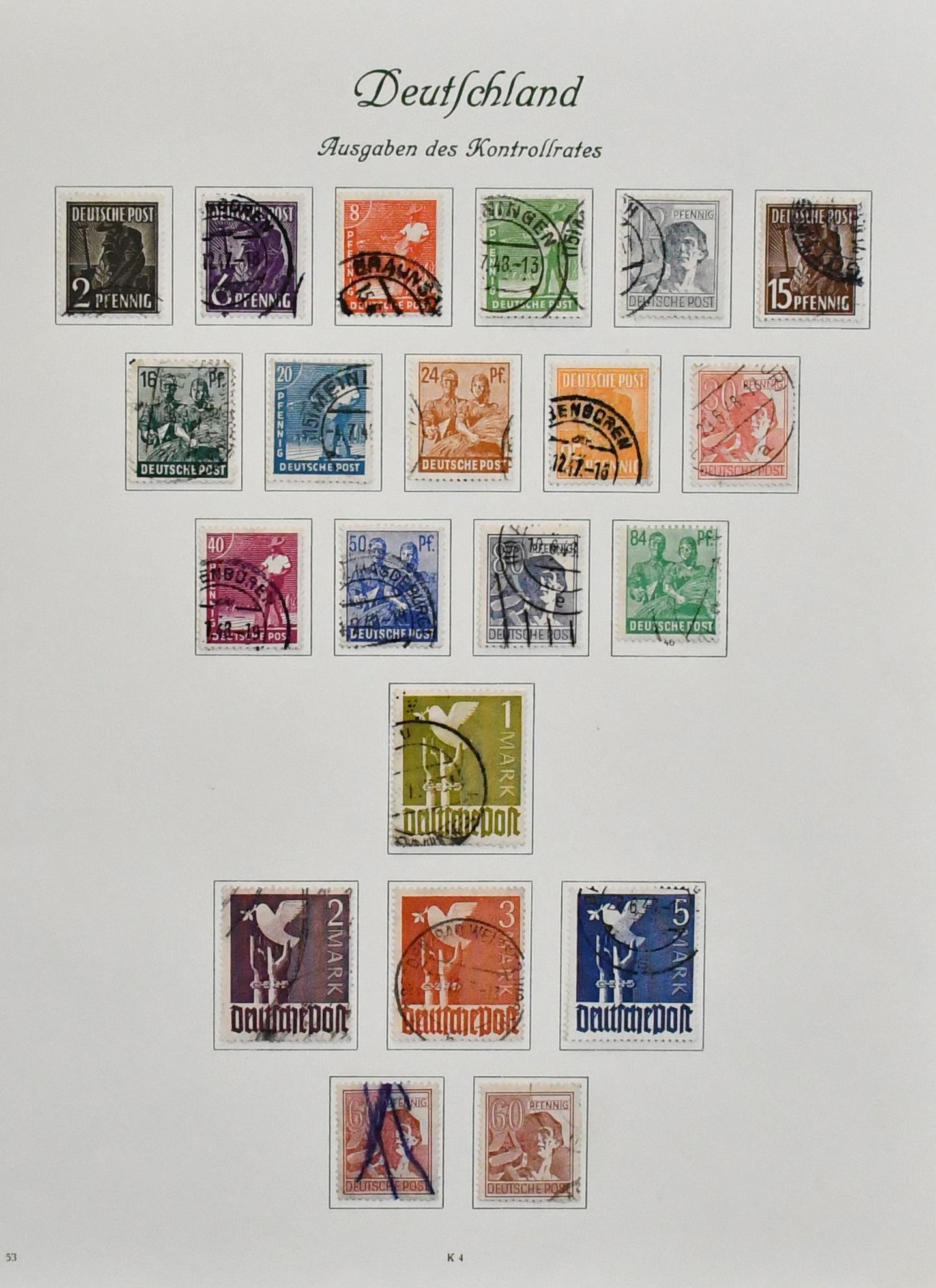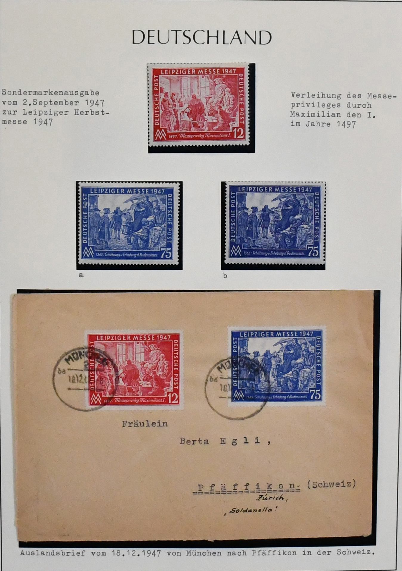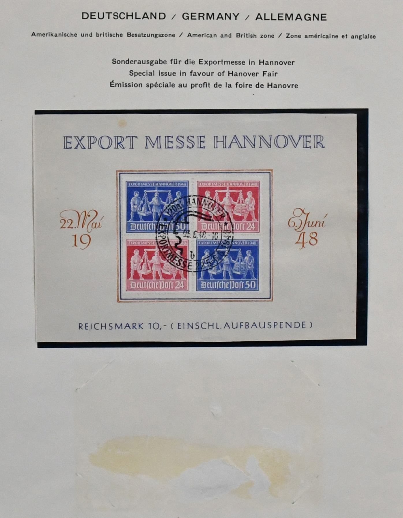 Gemeinschaftsausgabe, 1945/49, gest. kpl. Slg. inkl. Bl. 12A/B mit SST (Mi. 420,-), VZd1 auf Gedenkblatt usw., auf Vordrucken