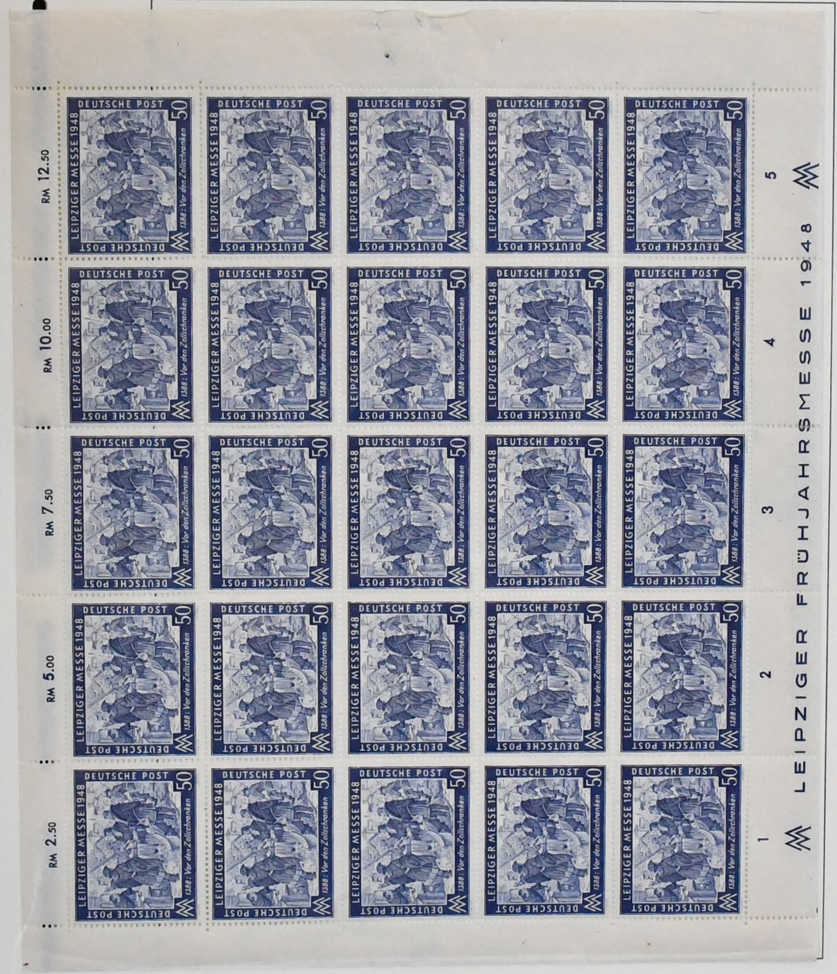 Gemeinschaftsausgabe, Partie von 22 postfrischen Bogen, dabei zweimal Nr. 961, sonst fast nur Leipziger Messe, u.a. drei Bogen Nr. 967 mit Druckerzeichen (Mi. 210,-) usw.